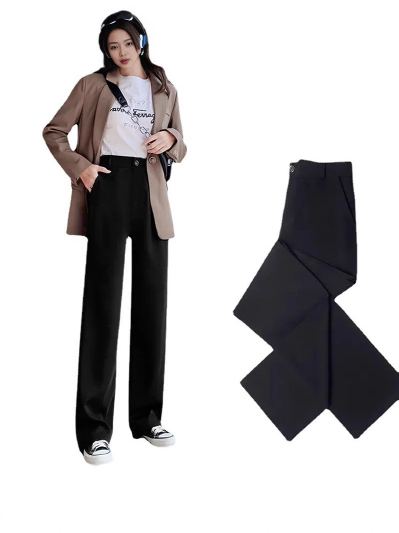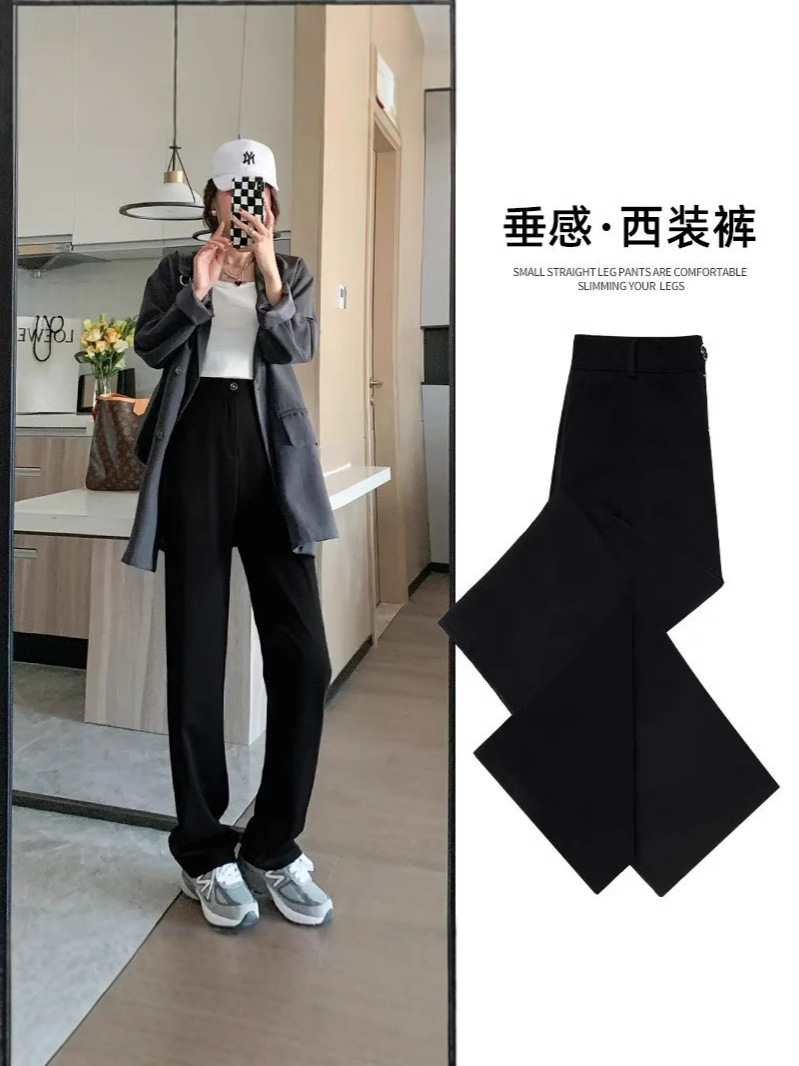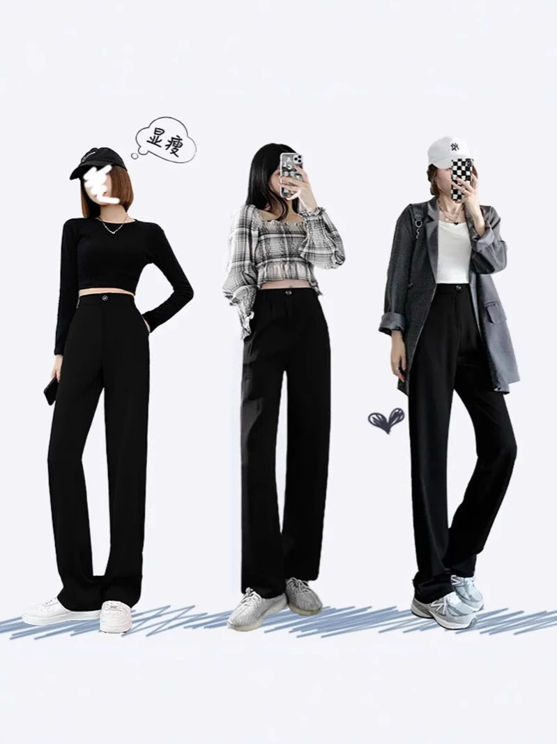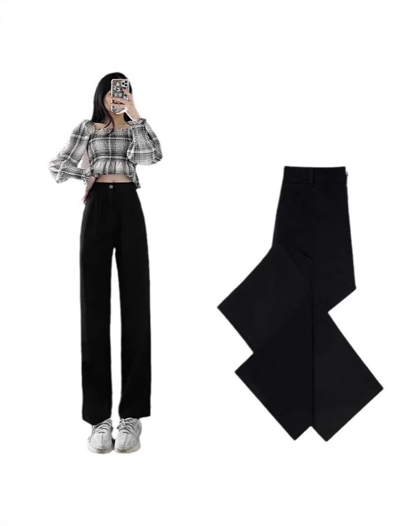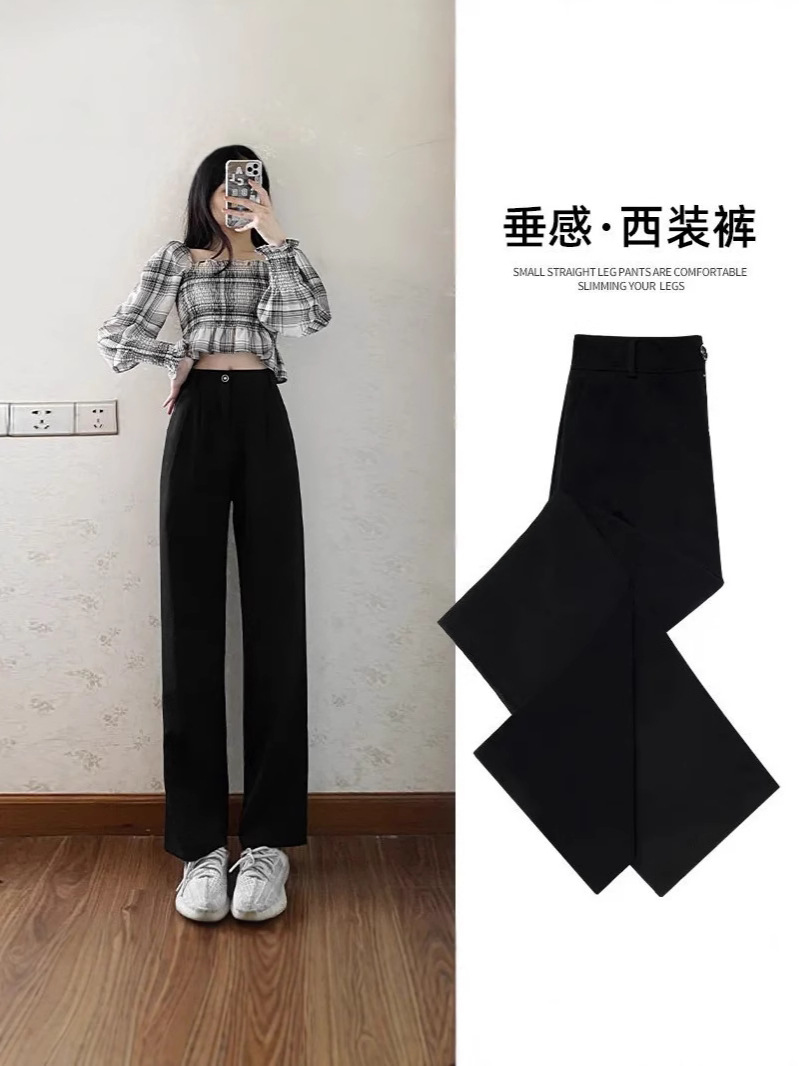 패션 넓은 다리 바지 여성 바지 여름 얇은 dape 스트레이트 바지 작은 여름 바지 검은 세트 바지