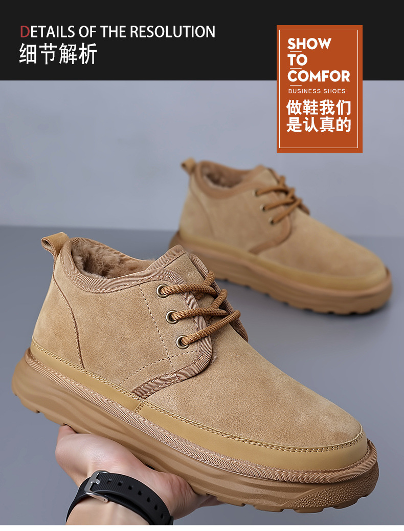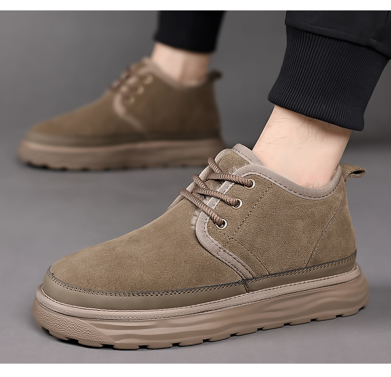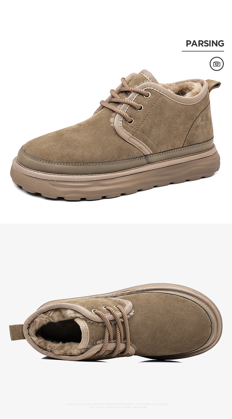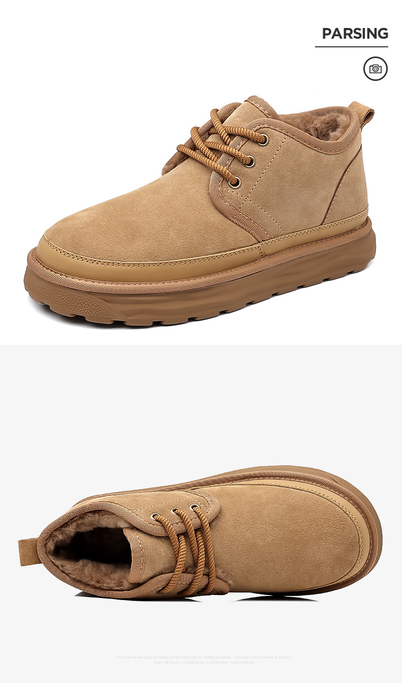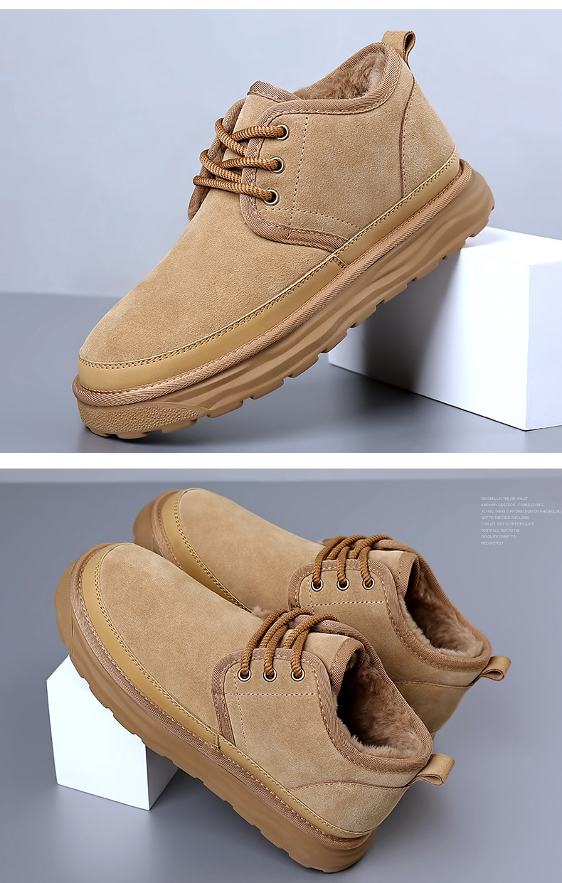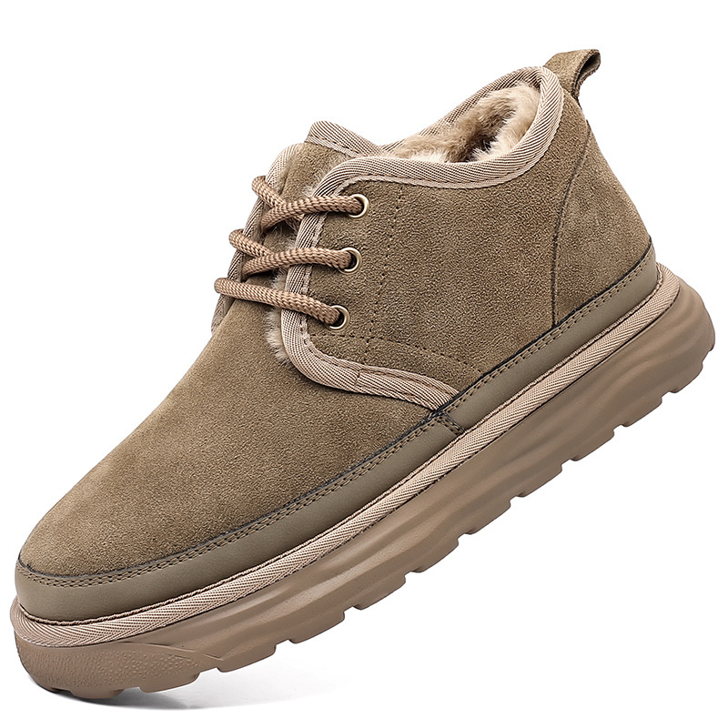 스노우 부츠 남자 겨울 새로운 진짜 모피 원피스 기모 따뜻한 두꺼운 단독 미끄럼 방지 하이 탑 남성용 대형 코튼 울 신발