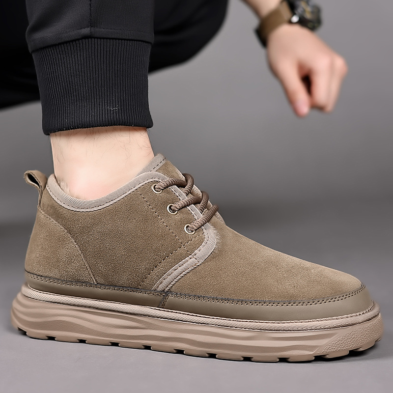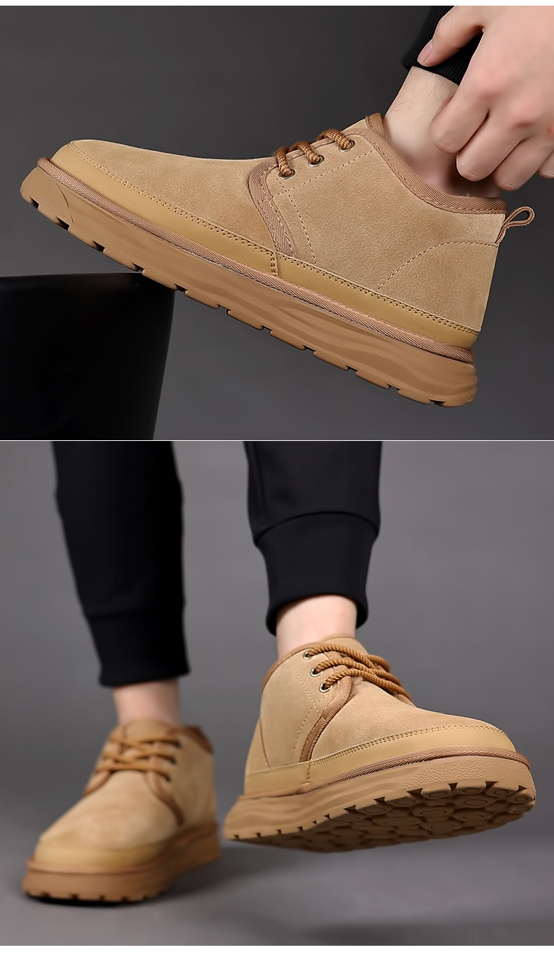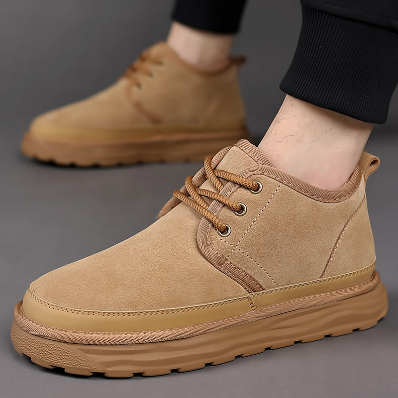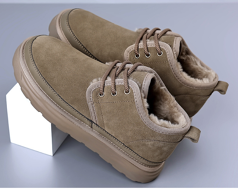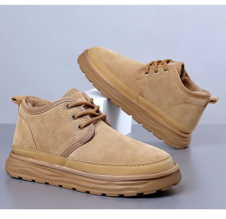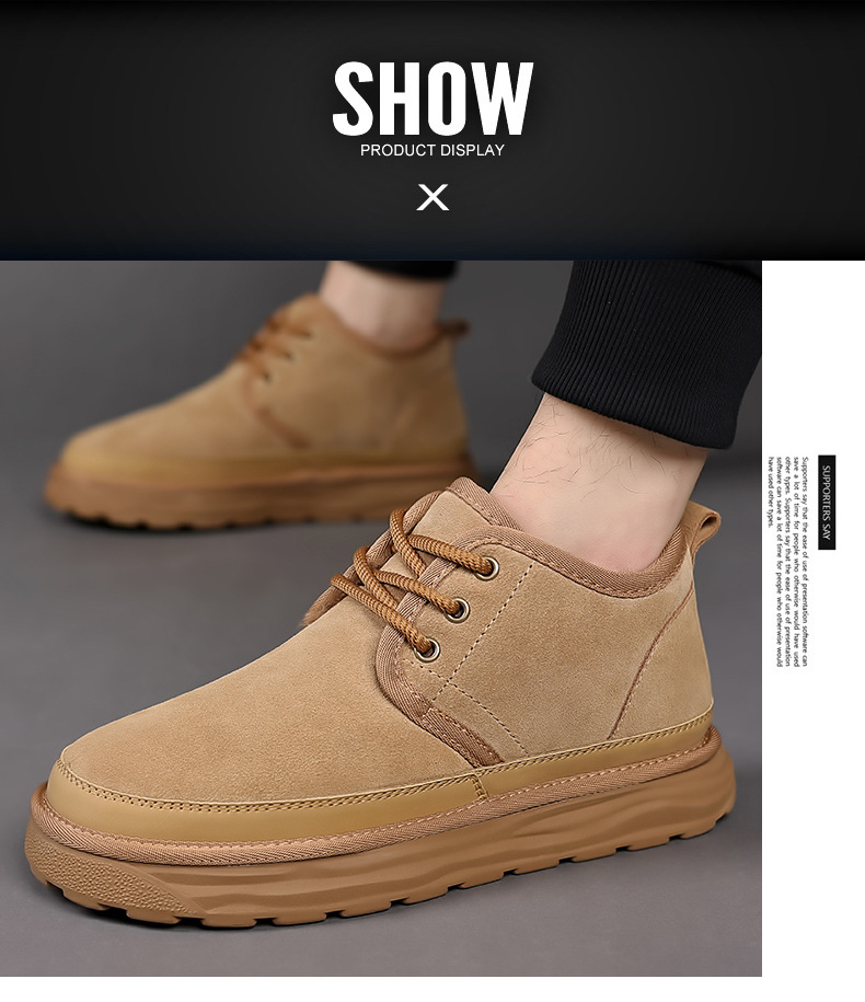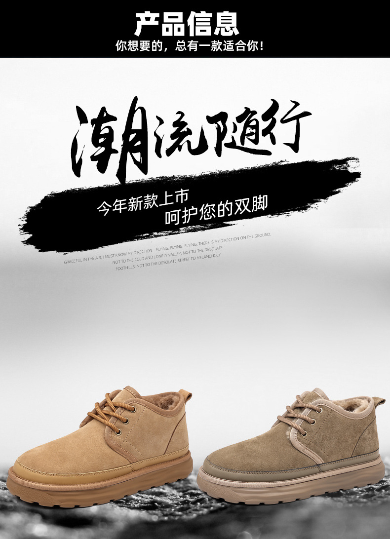 스노우 부츠 남자 겨울 새로운 진짜 모피 원피스 기모 따뜻한 두꺼운 단독 미끄럼 방지 하이 탑 남성용 대형 코튼 울 신발