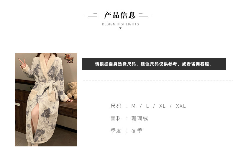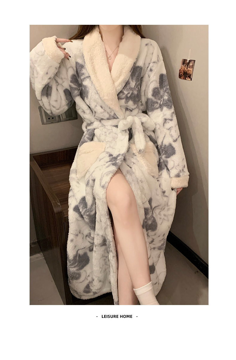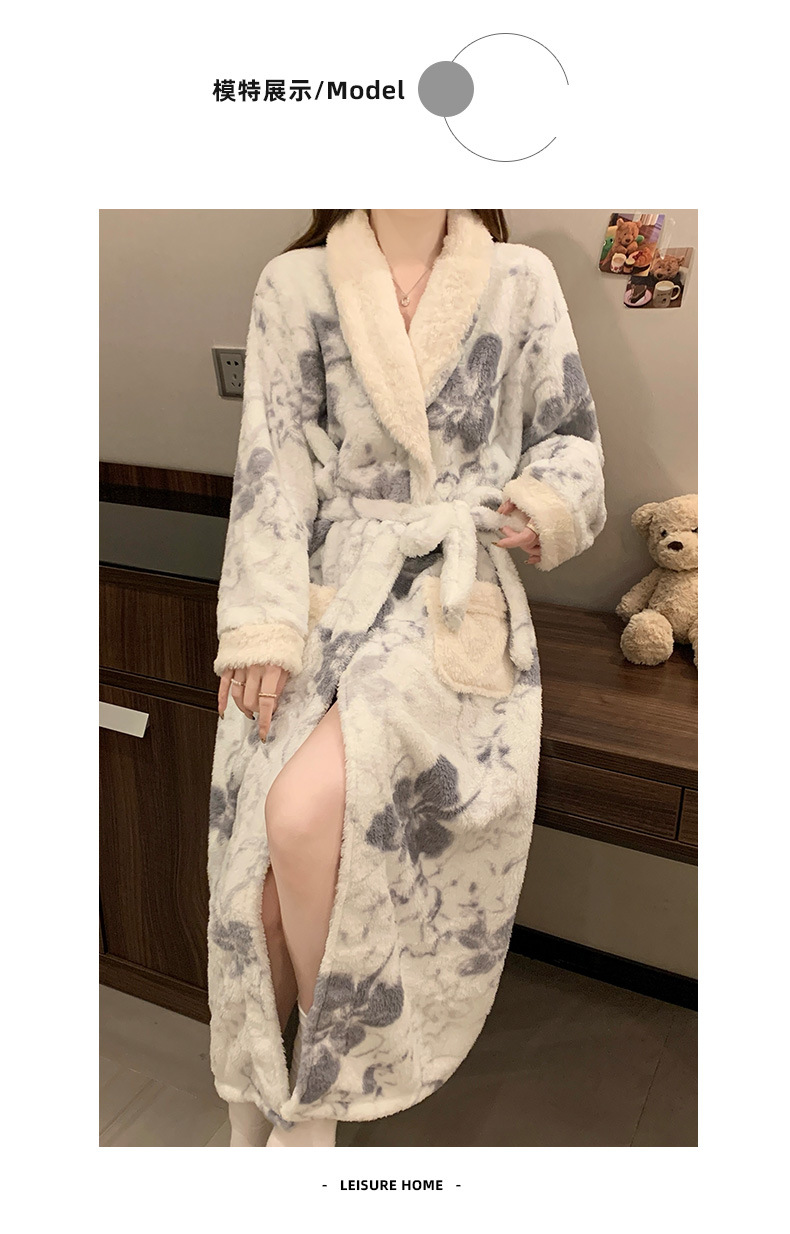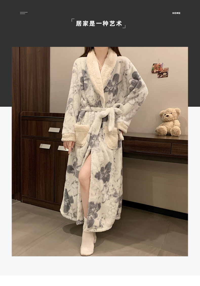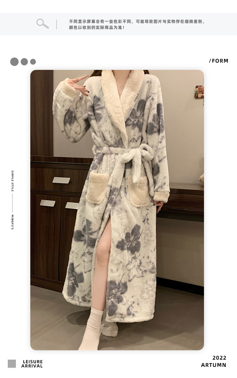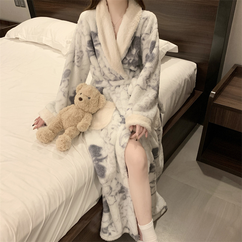 산호 양털 나이트가운 여성의 가을과 겨울 두꺼운 하이 엔드 센스 여성용 목욕 가운 겨울 긴팔 플란넬 파자마 홈 옷