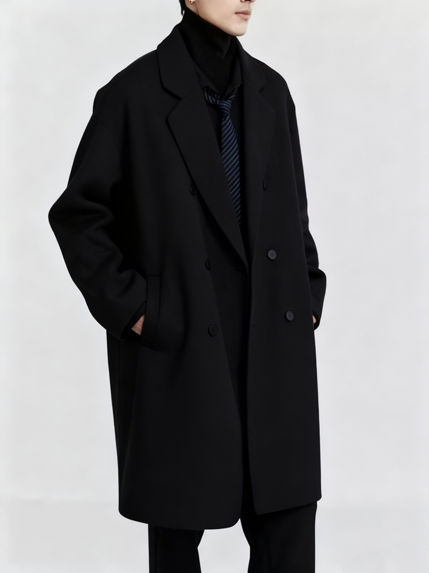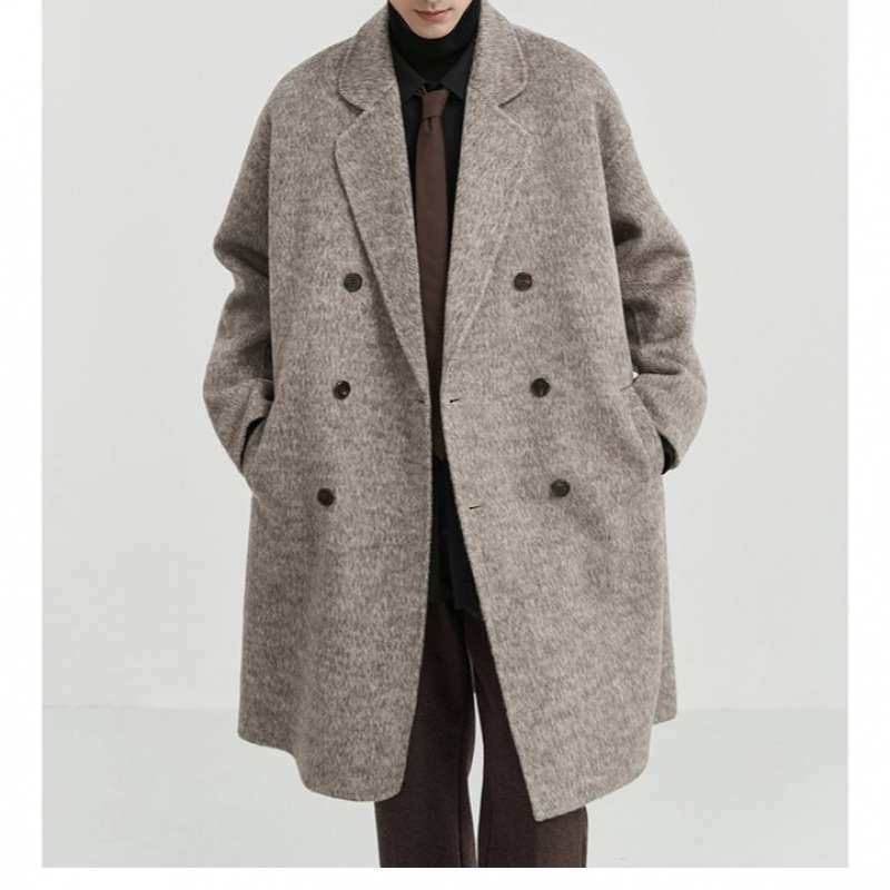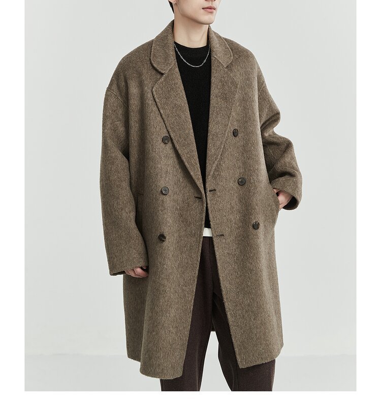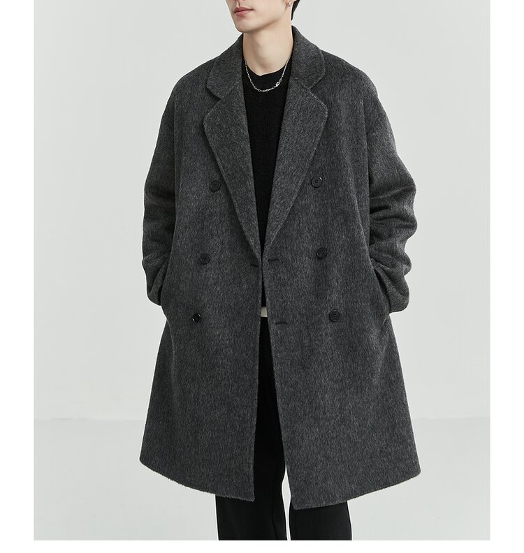 디자인감 있는 양면 울 코트 남성용 중간 길이 겨울 신상품 한국 스타일 울 코트