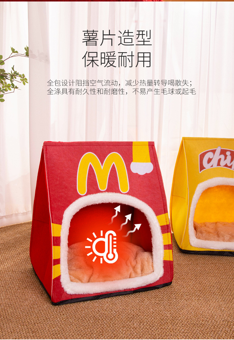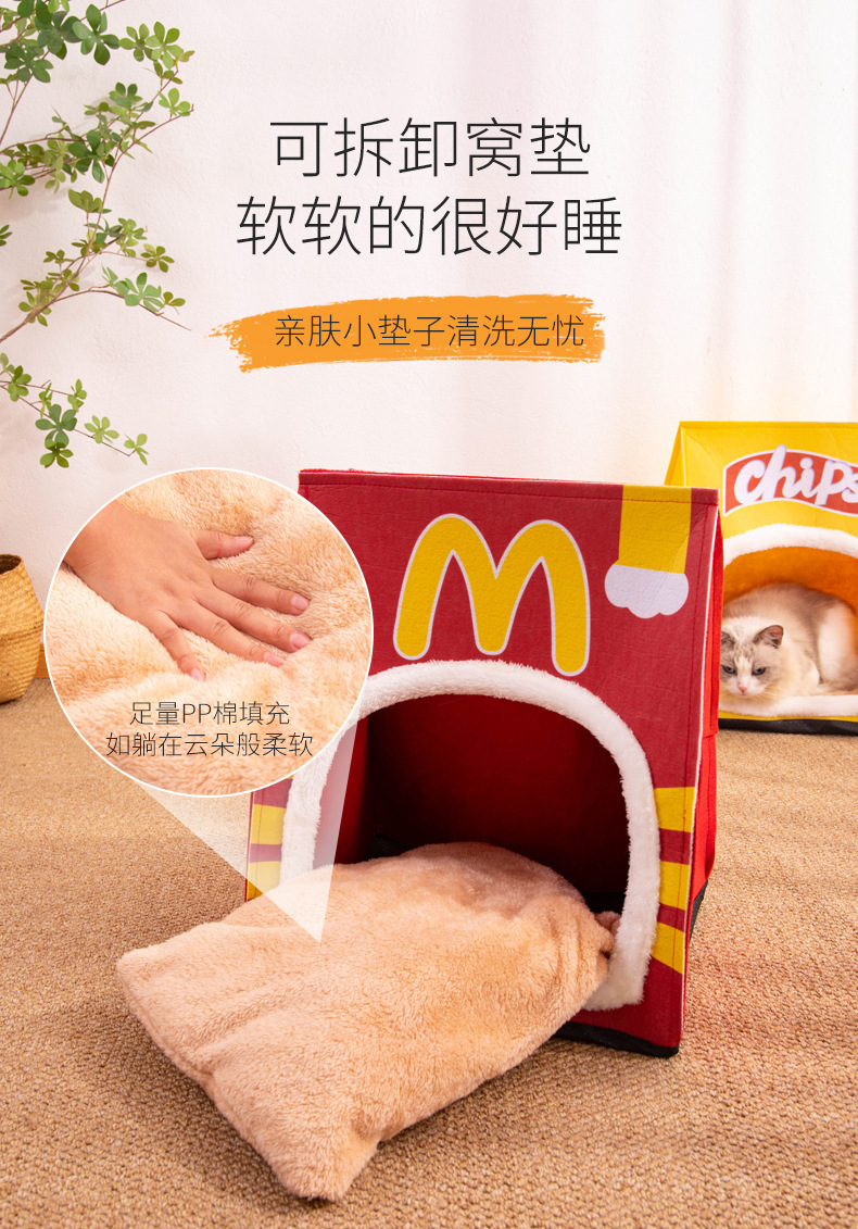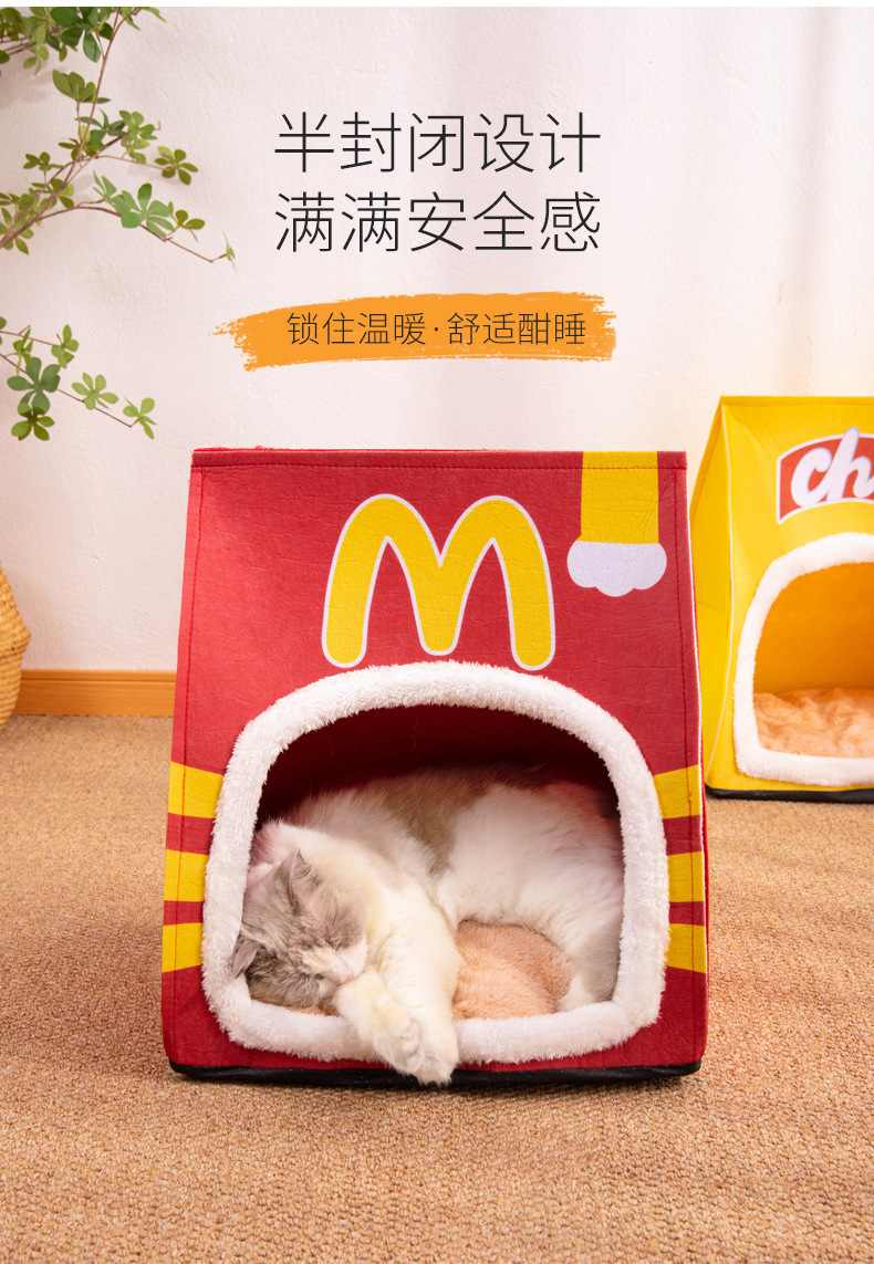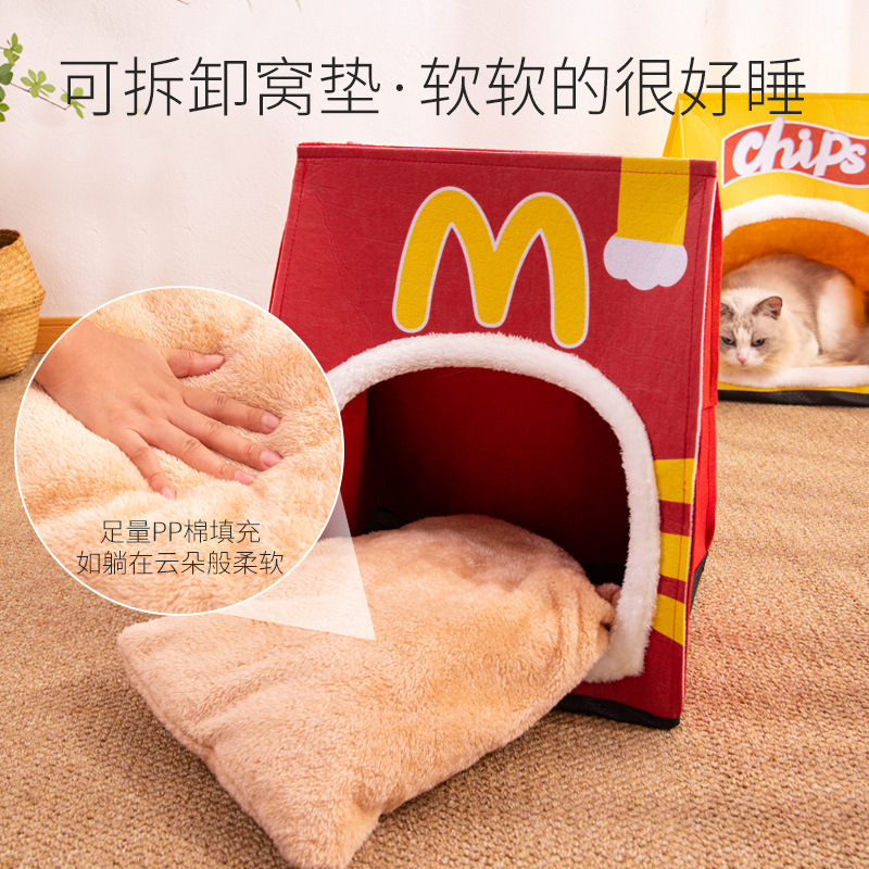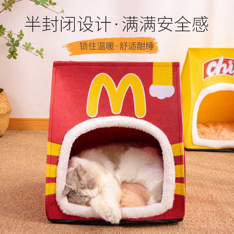 새로운 고양이 우유 개 잠자는 둥지 사계절 유니버설 이동식 및 빨 수있는 작은 개 사육장 고양이 둥지 반 폐쇄 감자 칩 텐트