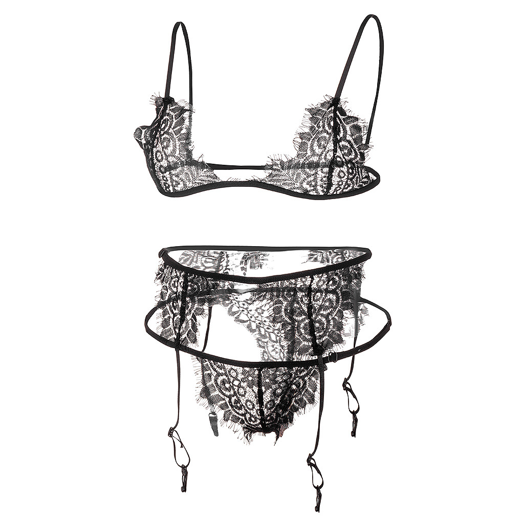 유럽과 미국의 대외 무역 속옷 파자마 레이스 속옷 끈 가터 매력 3 점 섹시한 란제리 세트