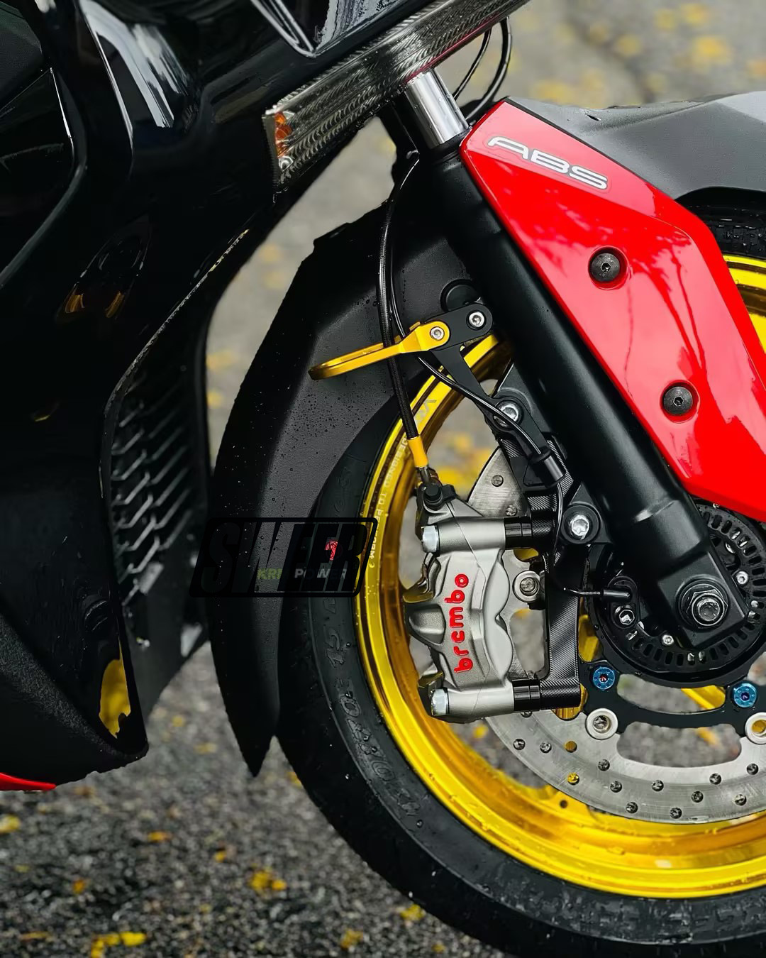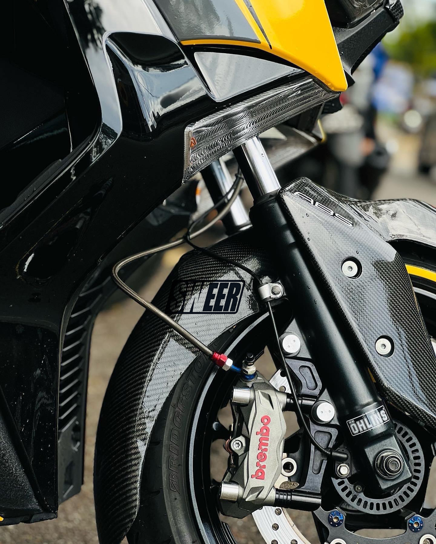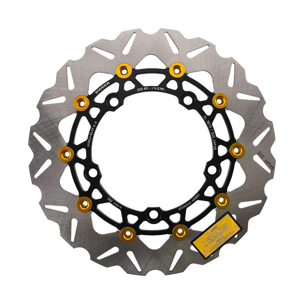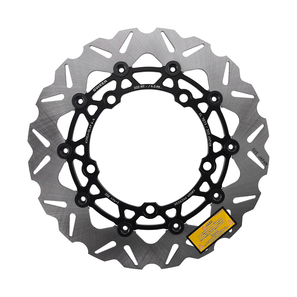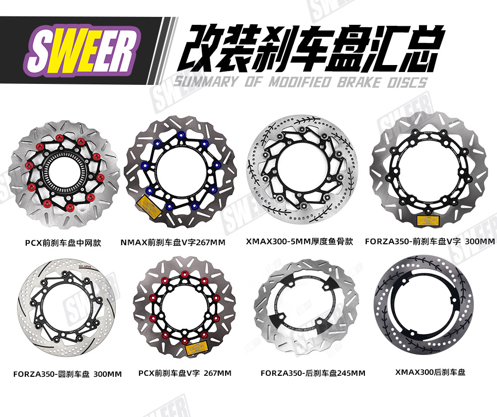 xmax300原车前轮267mm刹车盘的卡钳,如果改鲍鱼卡钳+267mm或者300mm浮动刹车盘需要用此 卡钳转接码(267mm刹车盘直上,300mm刹车盘需要加衬套增大),配高品质不锈钢加固螺丝,下图刹车盘300mm展示效果,产品不带刹车盘,够买300mm刹车盘连接