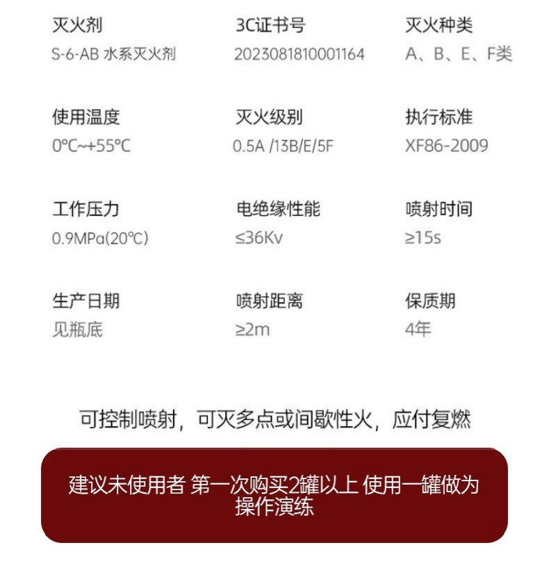 차량 소화기 물 기반 소화기 고정 개인 자동차 연간 검사 화재 장비 비상 휴대용 소화