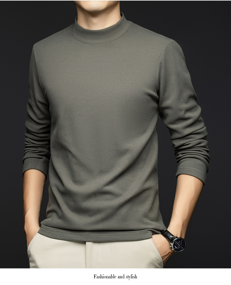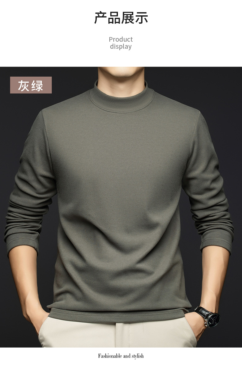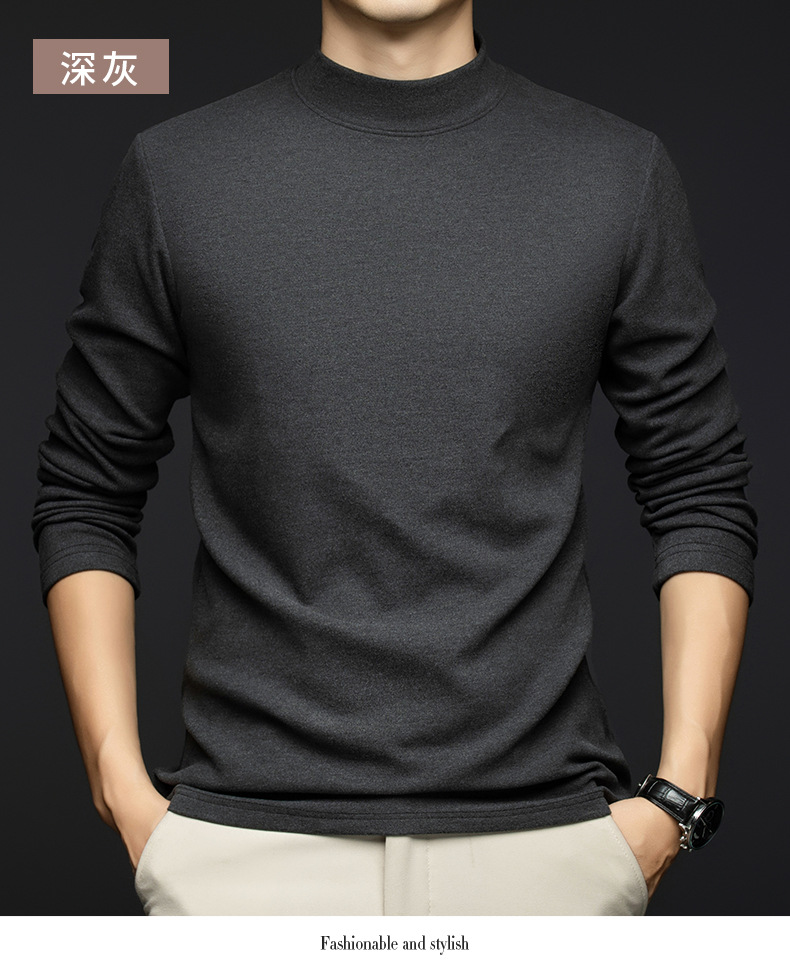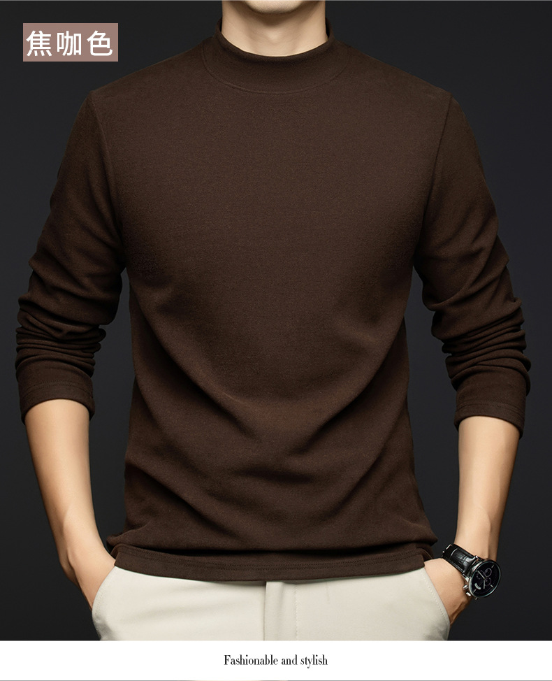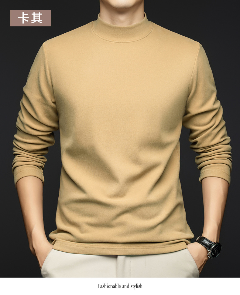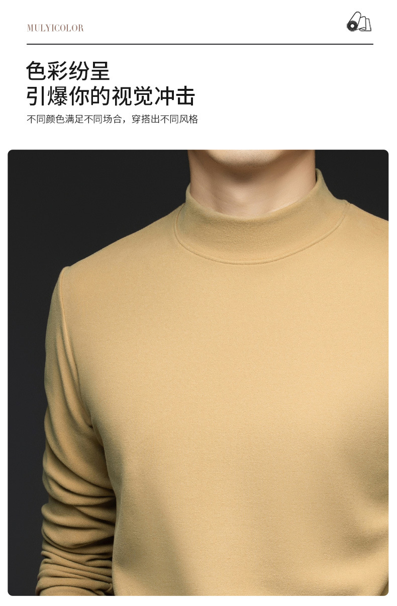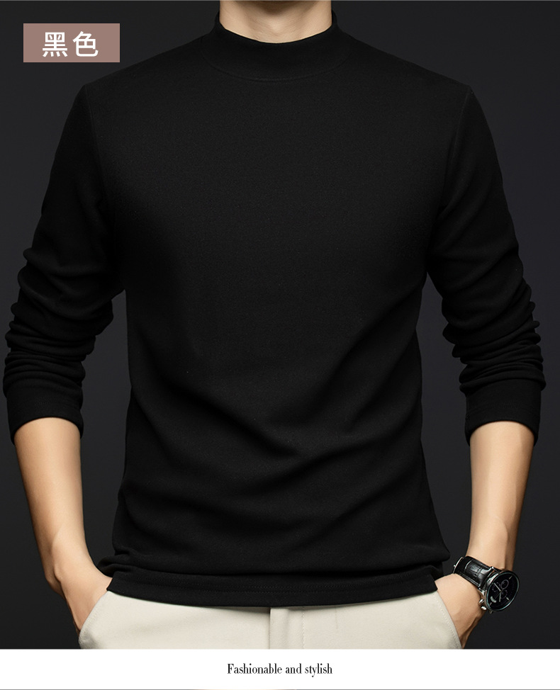 공장 매장 겨울 새 남성 긴팔 티셔츠 솔리드 컬러 양털 반 높이 목 두껍게베이스 셔츠 올매치 탑