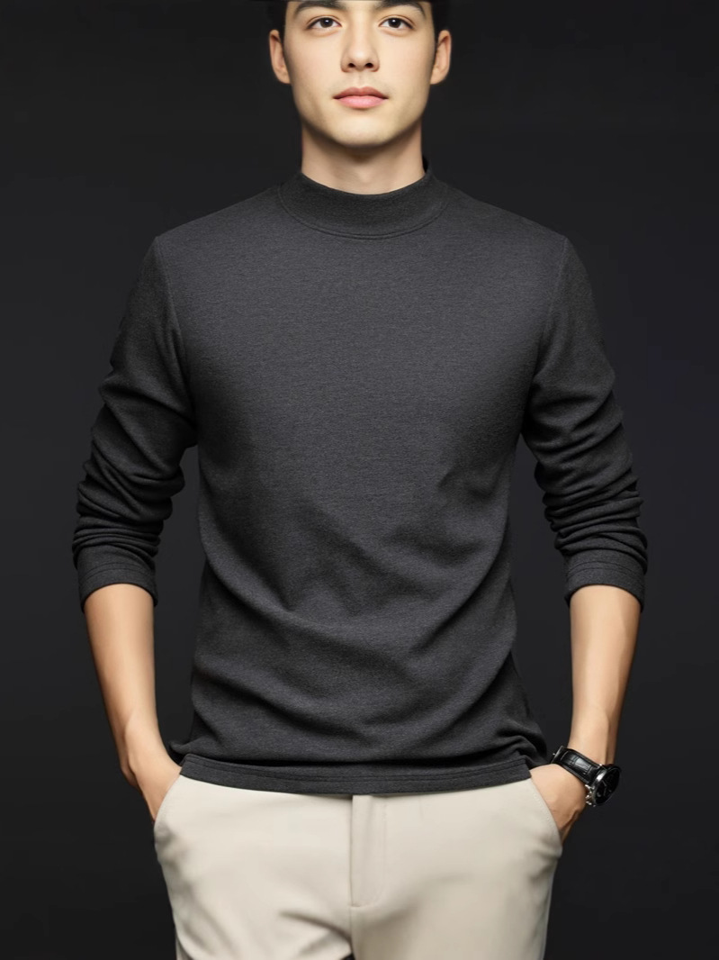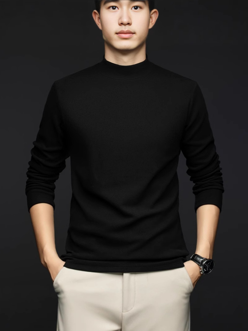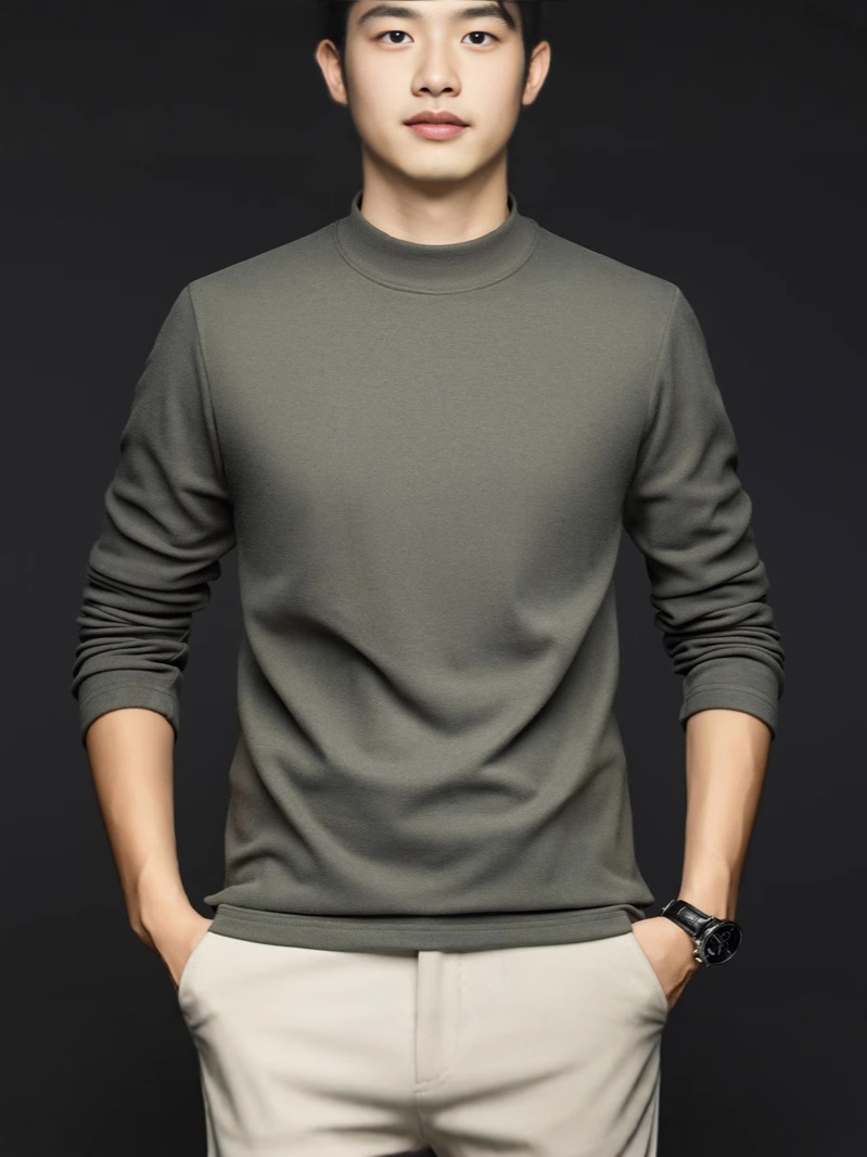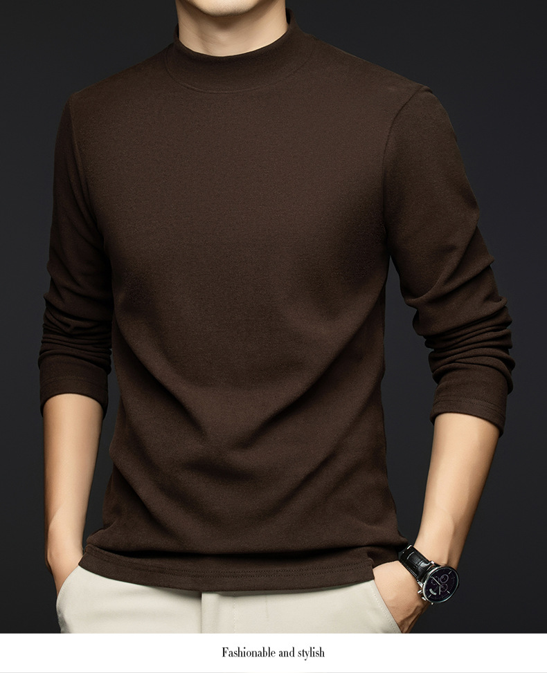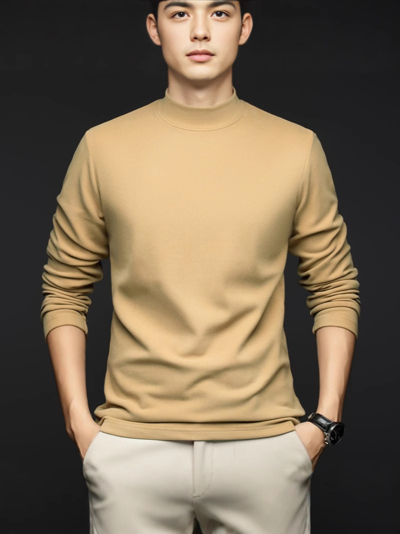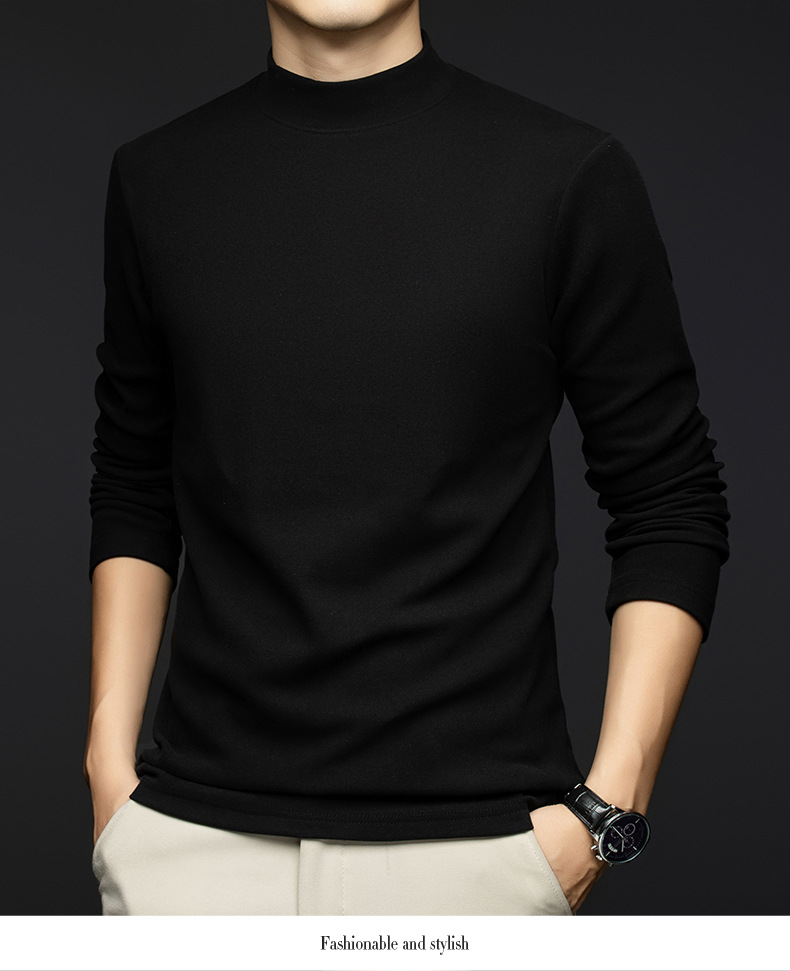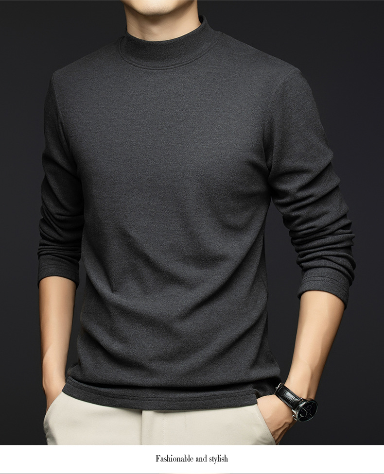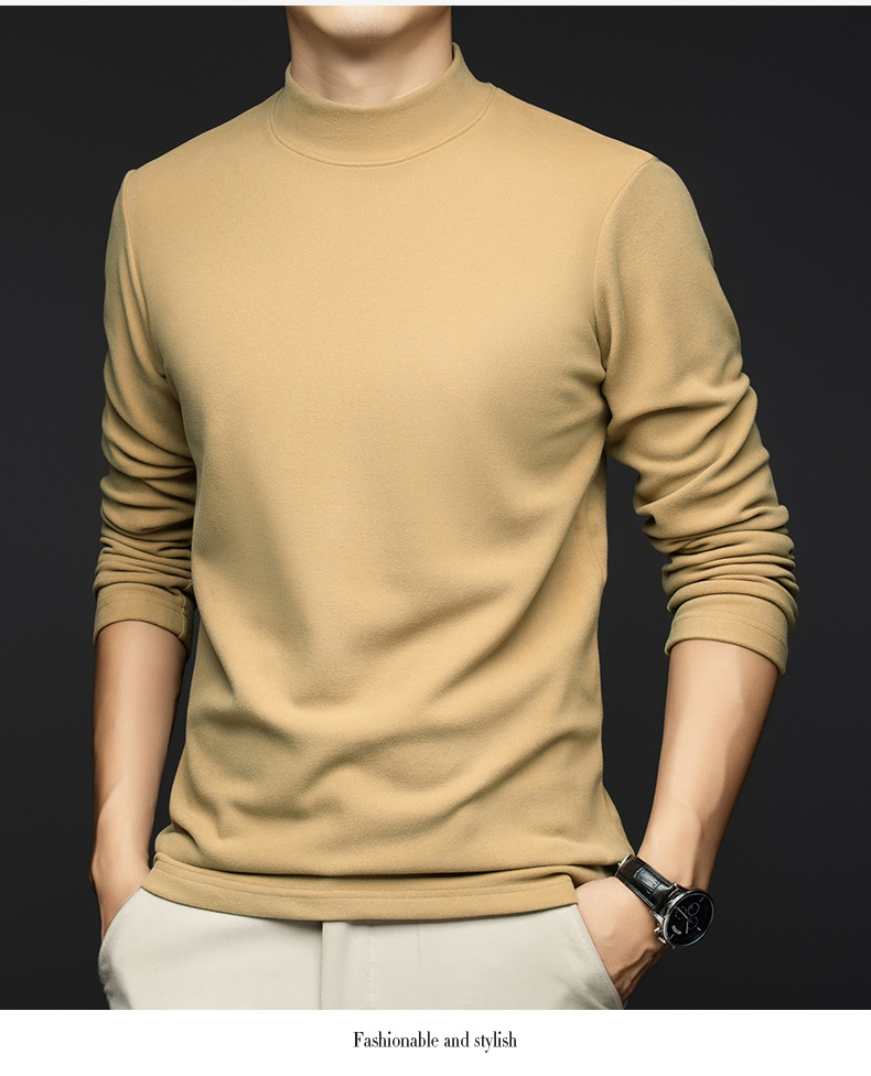 공장 매장 겨울 새 남성 긴팔 티셔츠 솔리드 컬러 양털 반 높이 목 두껍게베이스 셔츠 올매치 탑