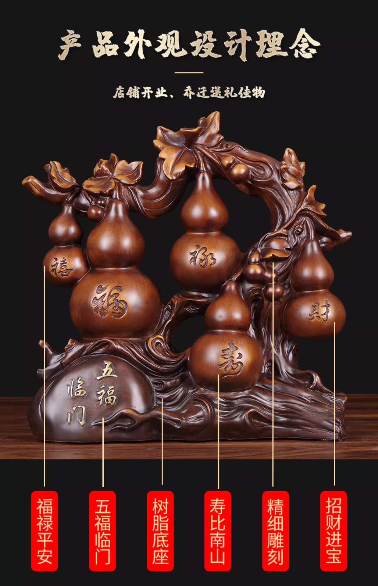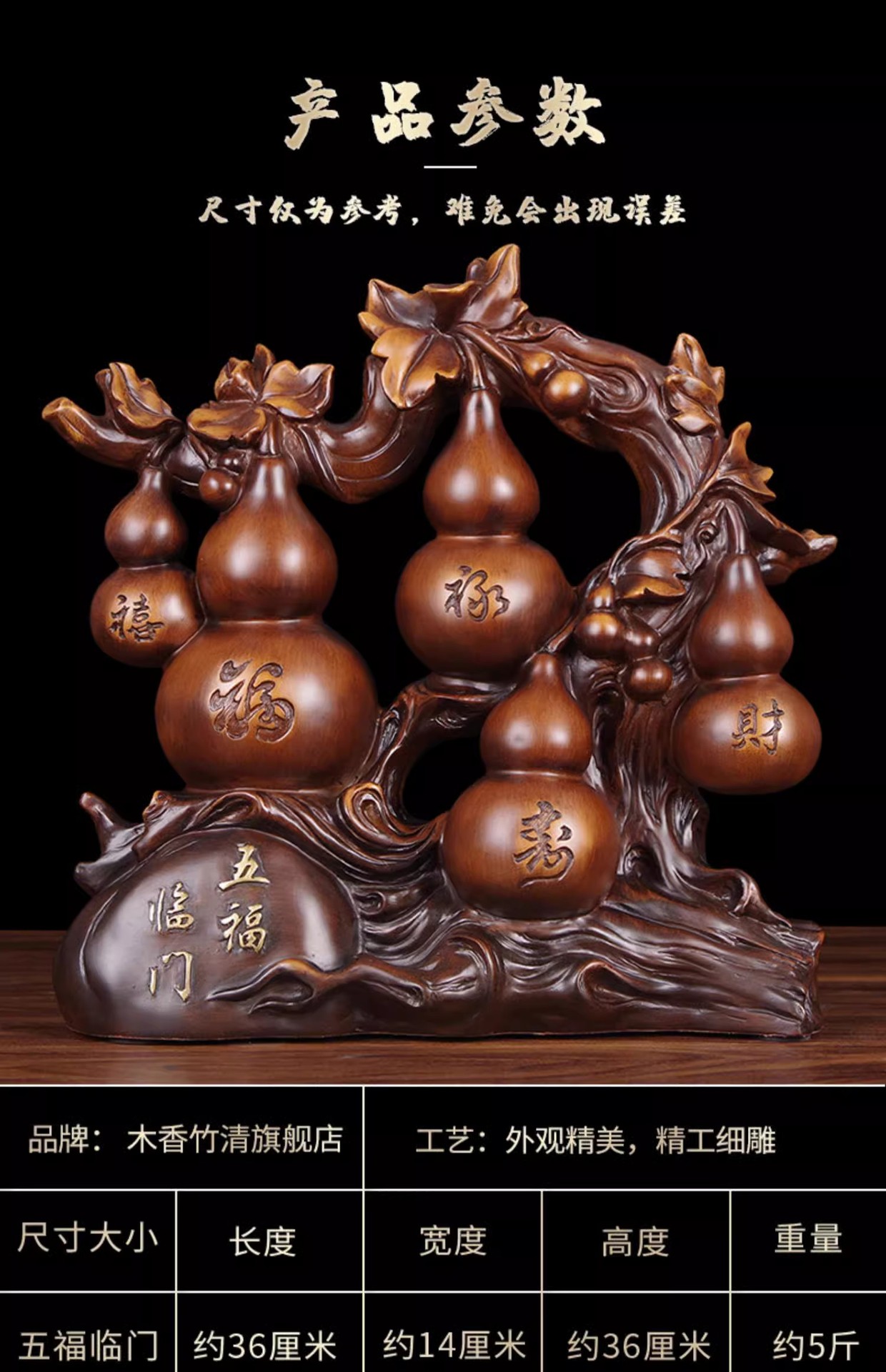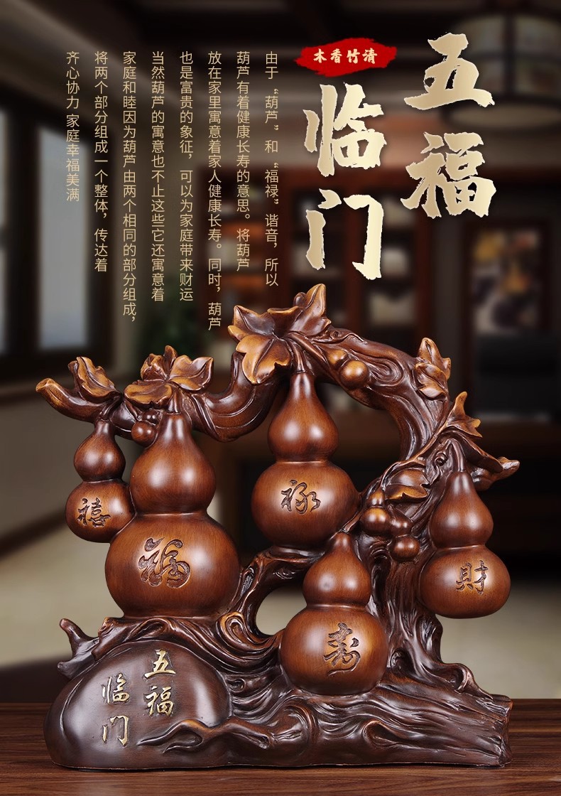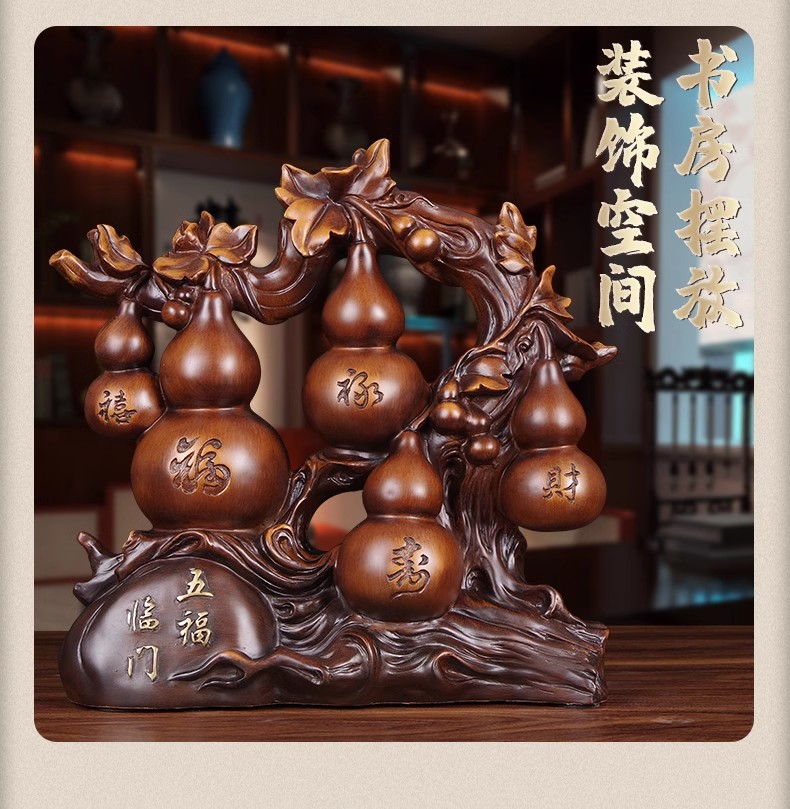 Wufu Linmen Wangzhai Fulu Gourd 장식품 행운의 나푸 사무실 와인 내각 TV 내각 입구 장식품
