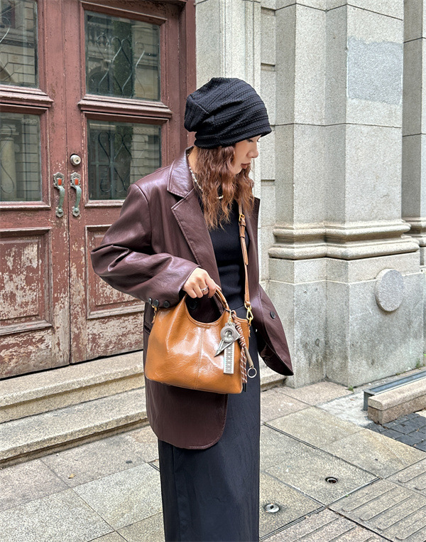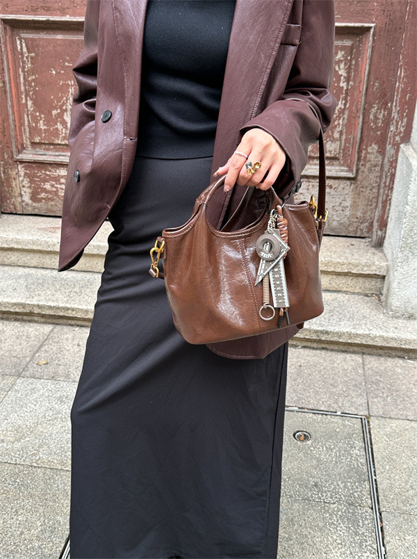 라이트 럭셔리 여성 가방, 채소 바구니 스타일 핸드백, 2024년 신상, 천연 가죽, 액세서리 포함, 핸드백, 숄더백, 크로스백, 다용도