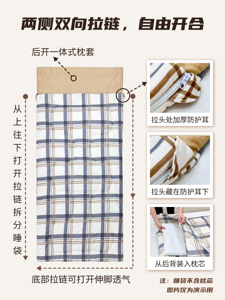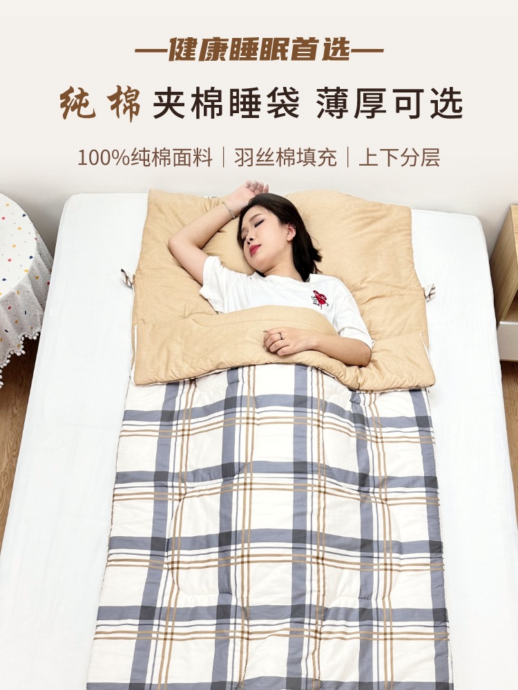 하오룬치 성인용 순면 침낭, 성인 및 학생 기숙사용 싱글형 안티킥 이불, 가을 겨울 방한, 제조업체 도매