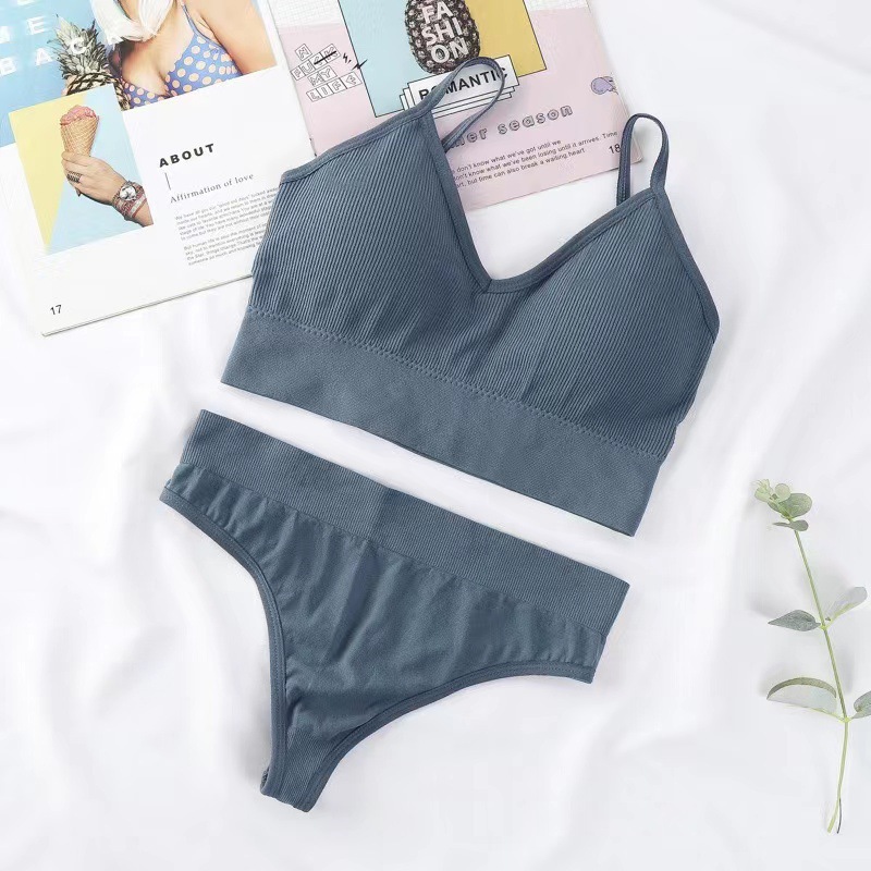 러시안 스타일 트라이앵글 컵 슬링 빅 U 뷰티 백 랩 가슴 튜브 탑 속옷 노와이어 브라 끈 팬티 세트