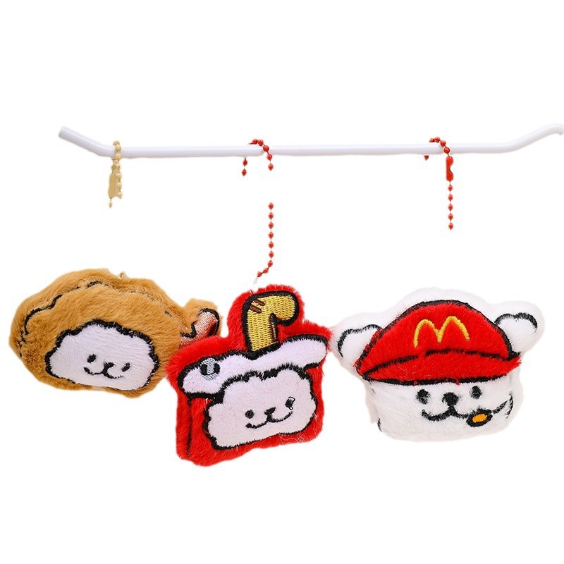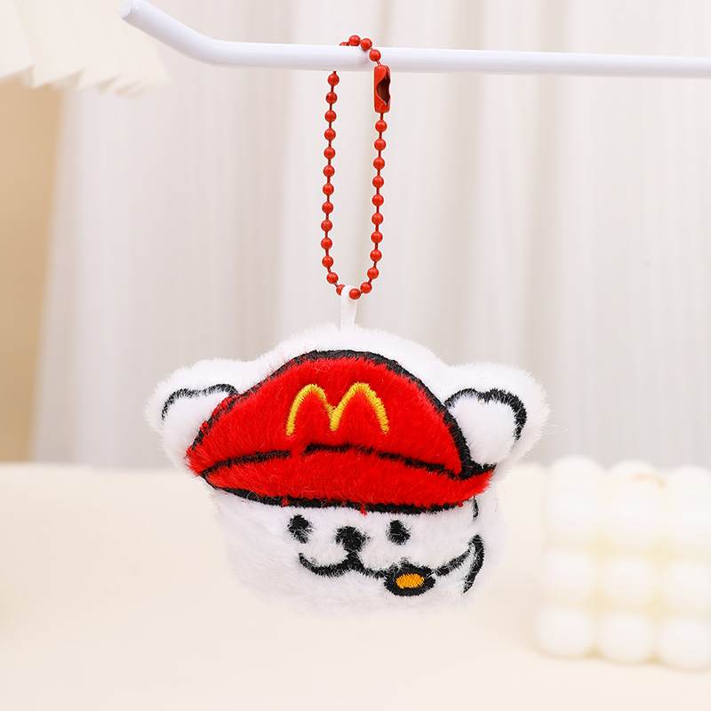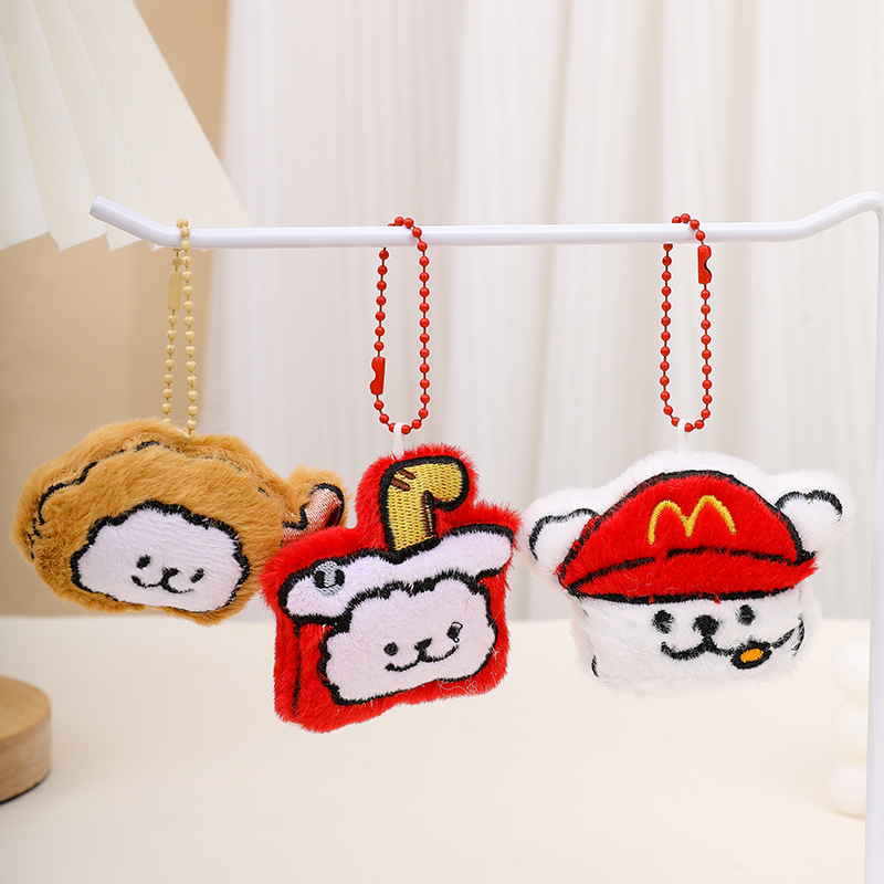 귀여운 만화 창조적 인 맥도날드 라인 강아지 닭 다리 헤드셋 비드 체인 학교 가방 장식 펜던트 커플 키 체인