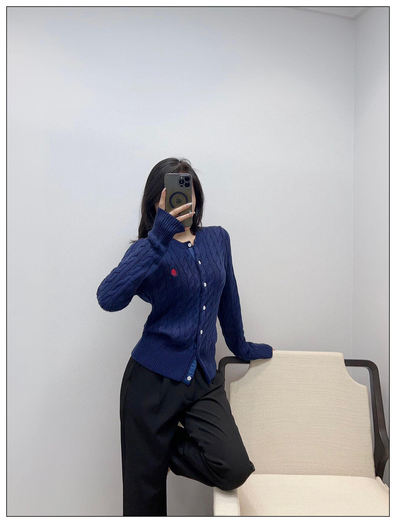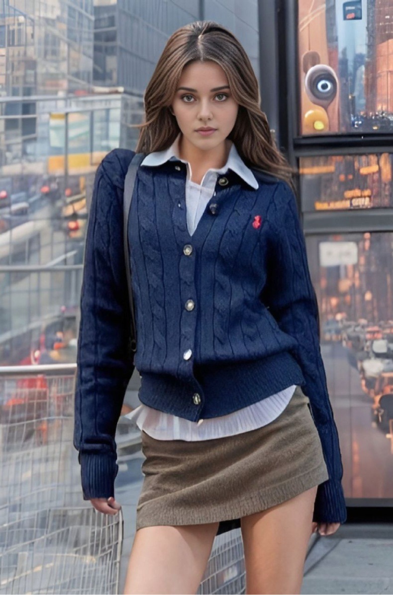 높은 버전 rl raff 조랑말 Nanyou 여성 가을 탑 작은 향기 스타일 하이 엔드 스웨터 니트 카디건 라이트 럭셔리