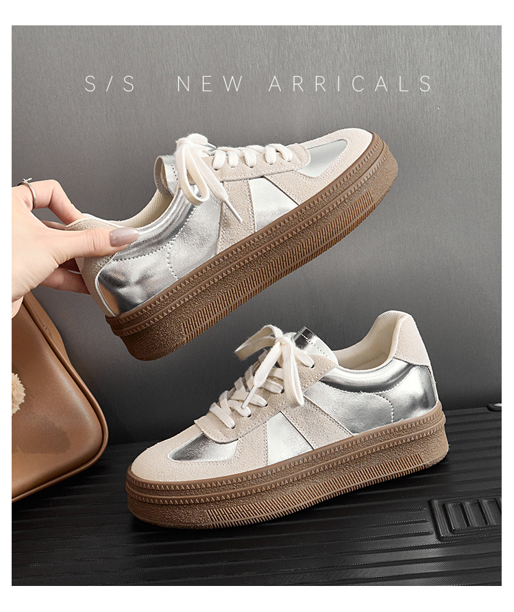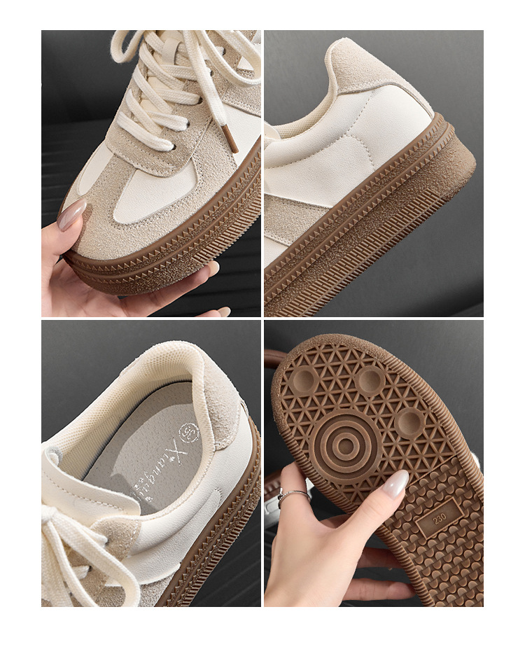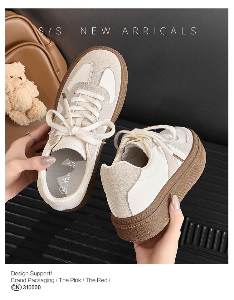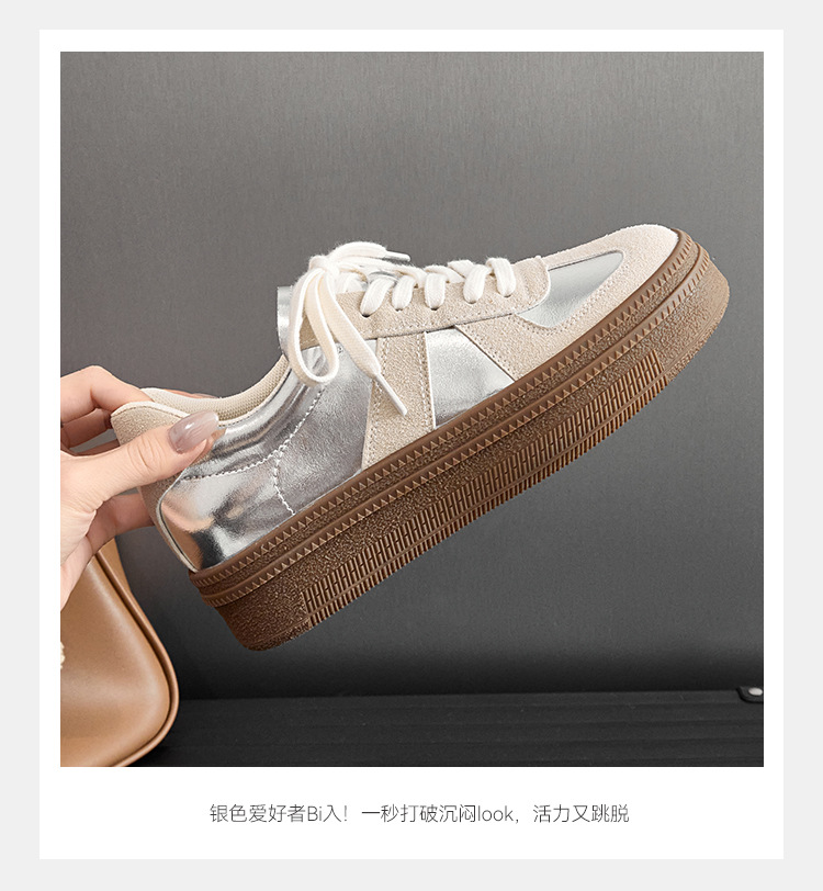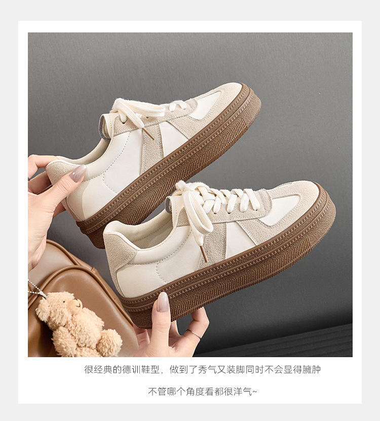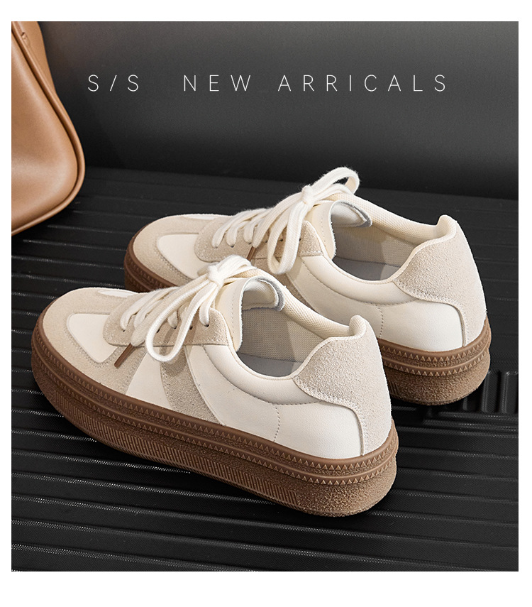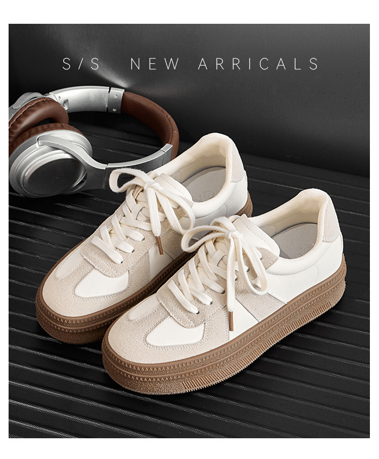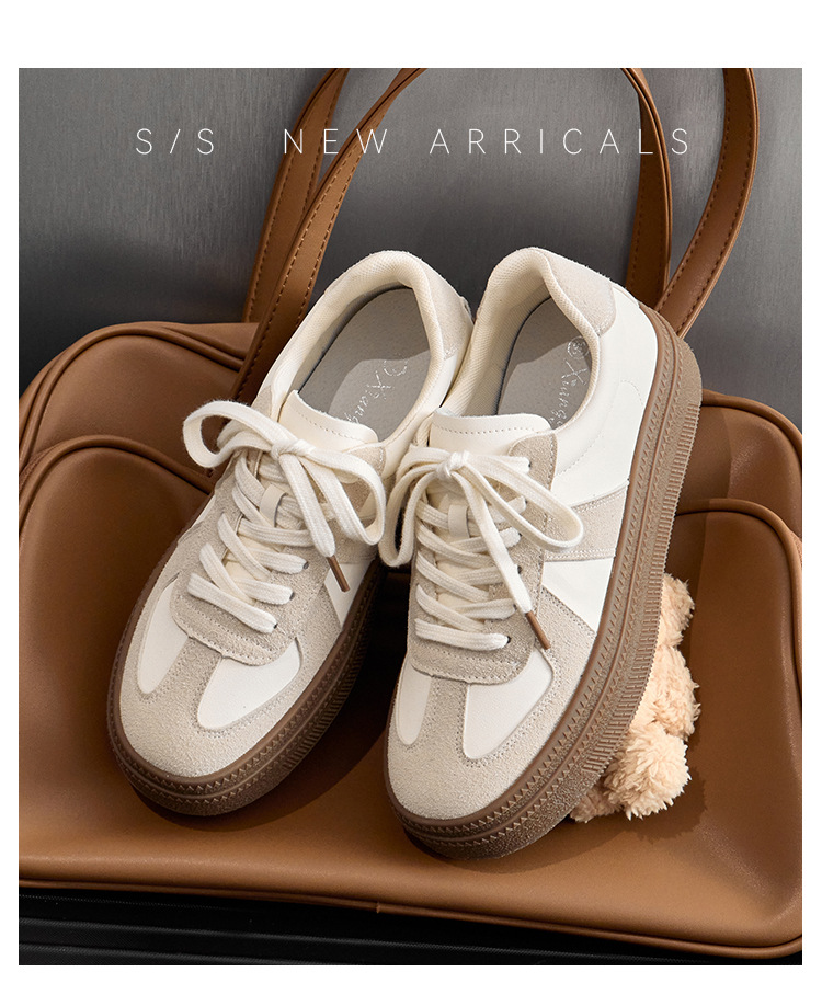 빈티지 정품 가죽 독일 훈련 신발 여성의 2024 가을 새로운 두꺼운 밑창 캐주얼 스니커즈 올 매치 학생 화이트 슈즈 포레스트 검프 슈즈