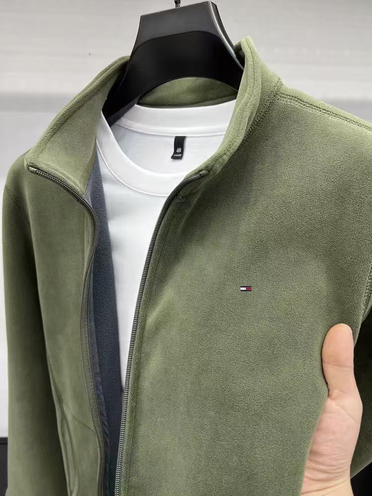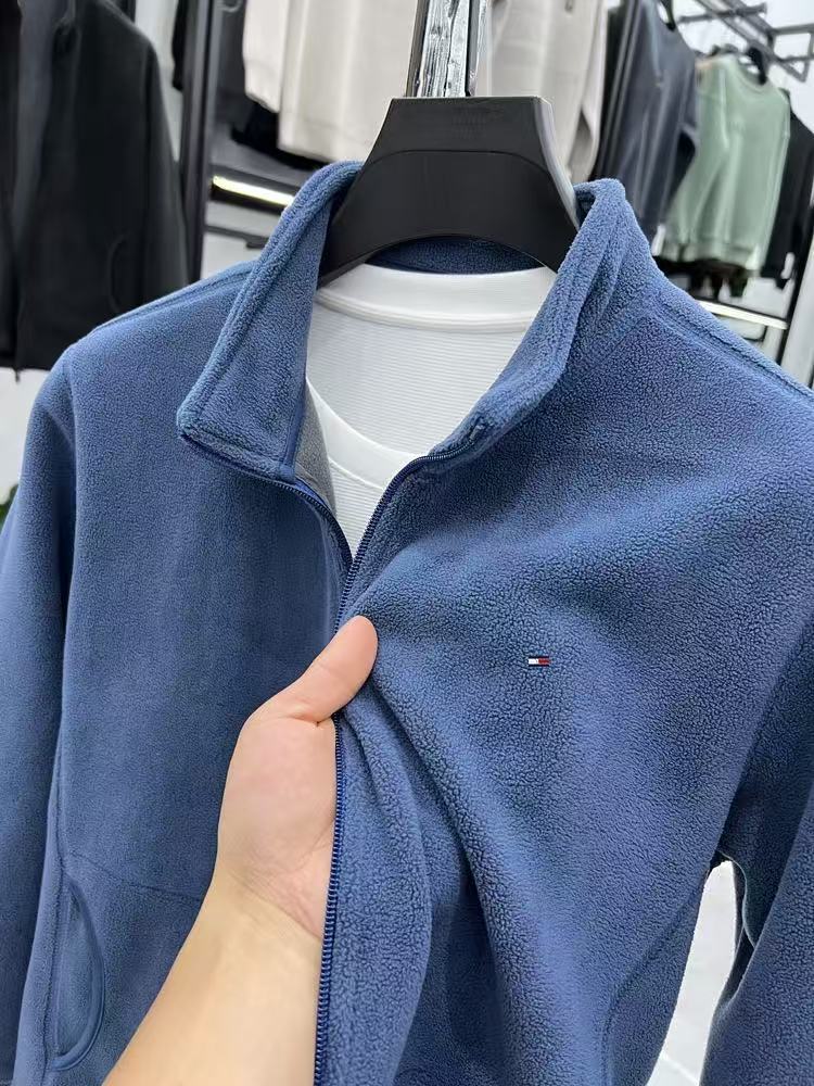 미국 정품 토미 단색 남성 양털 양털 카디건 가을과 겨울 따뜻한 스웨터 캐주얼 코트 트렌디