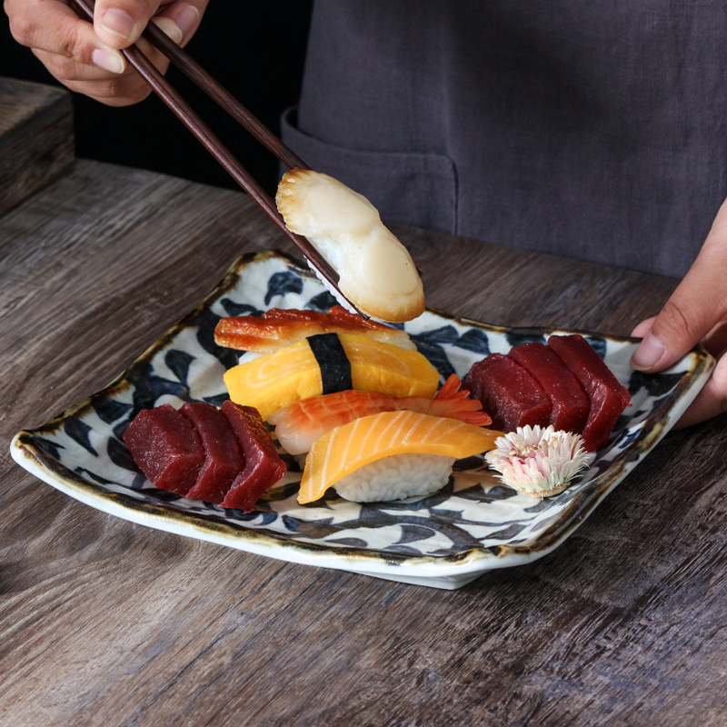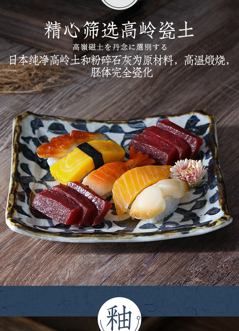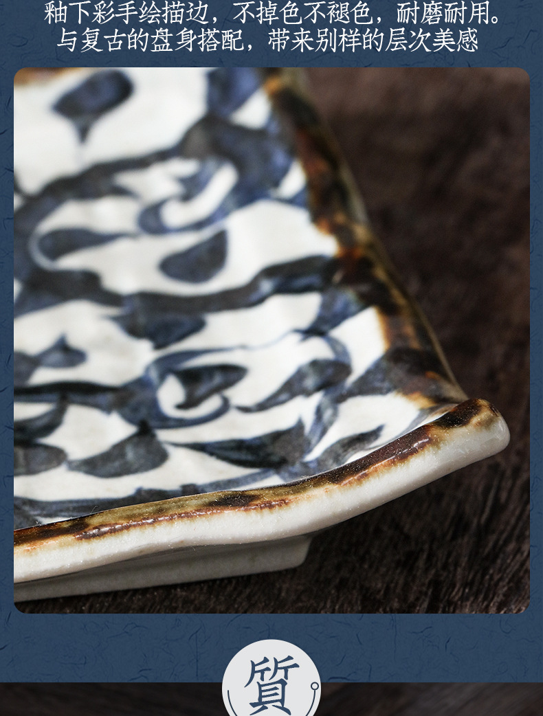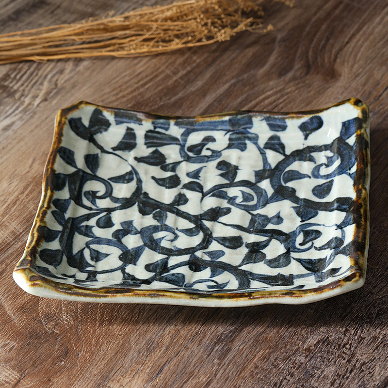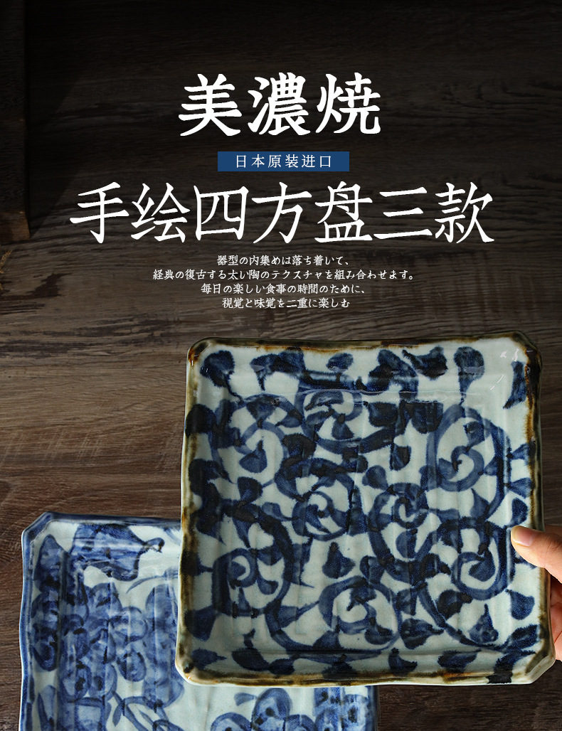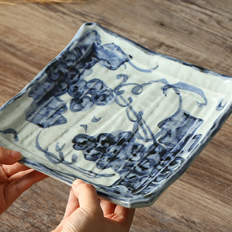 블룸 일본 수입 메이이나키 세라믹 디너 플레이트 스시 플레이트 탕카오 포도 식기 빈티지 스퀘어 플랫 플레이트