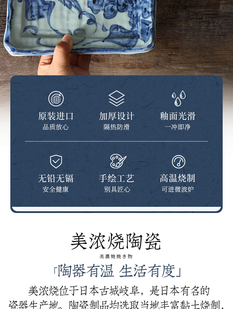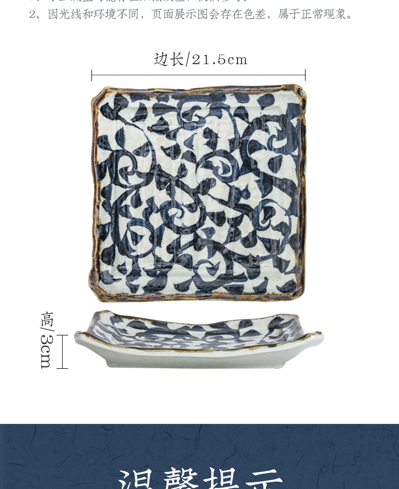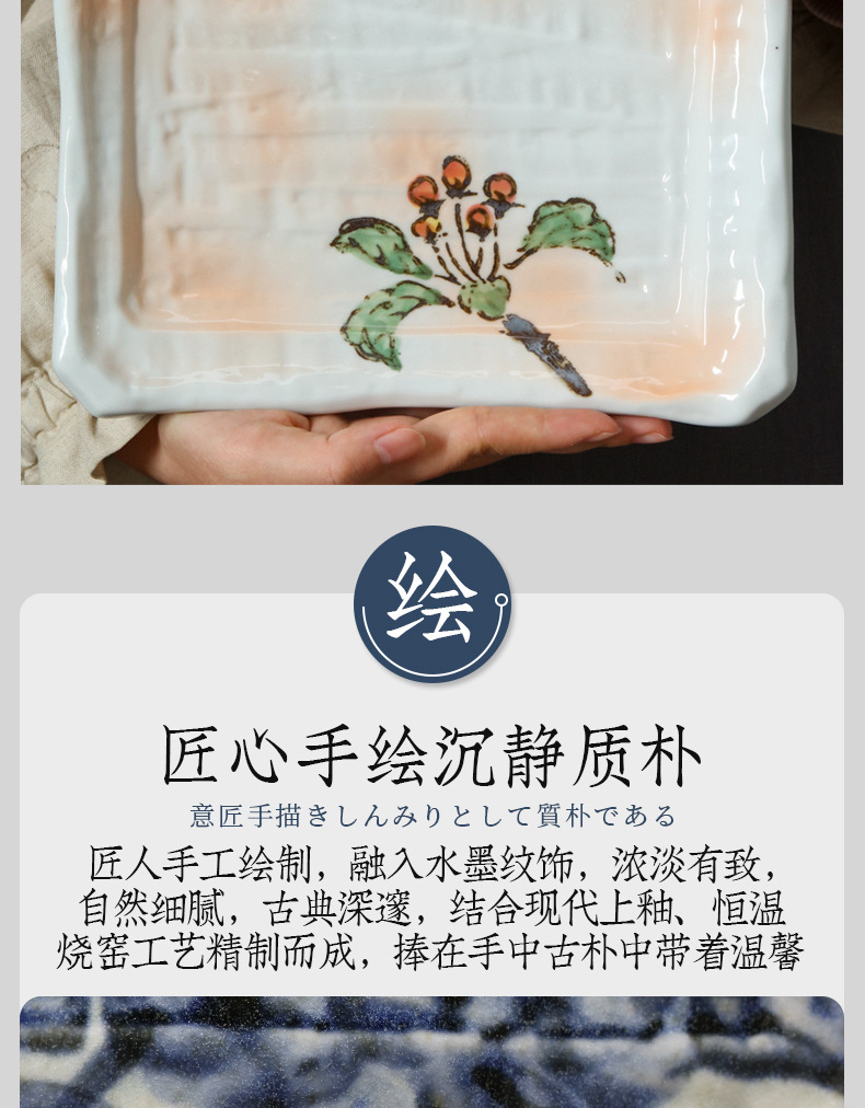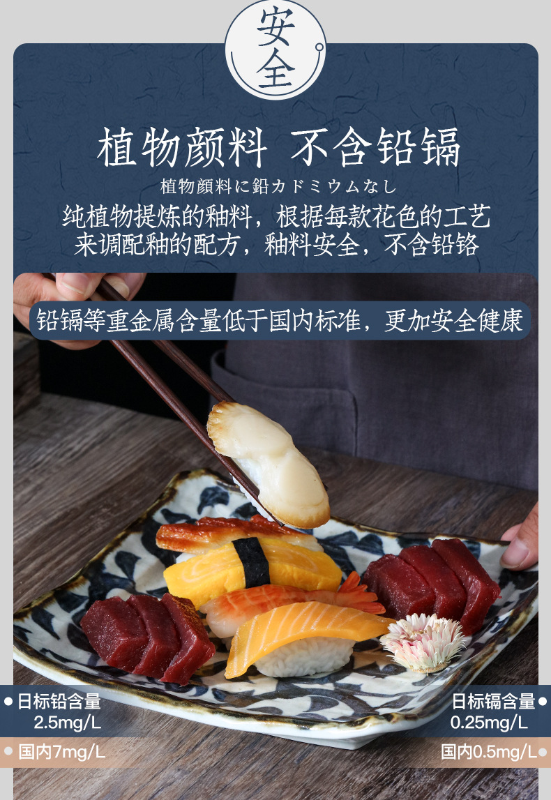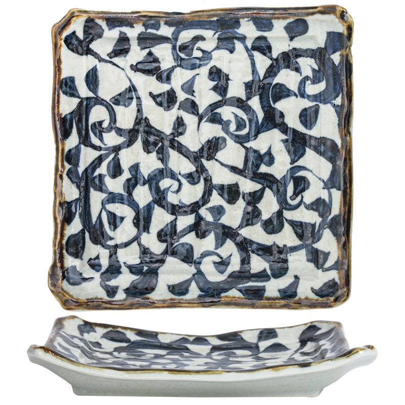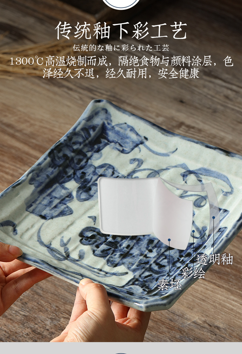 블룸 일본 수입 메이이나키 세라믹 디너 플레이트 스시 플레이트 탕카오 포도 식기 빈티지 스퀘어 플랫 플레이트