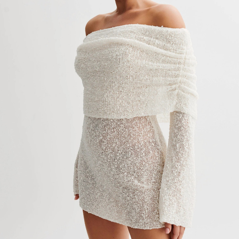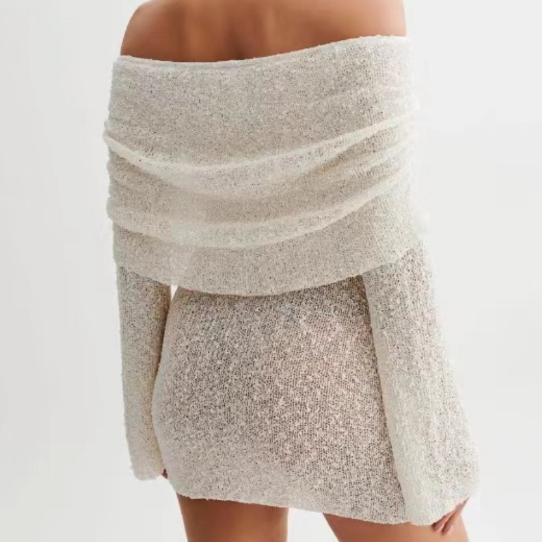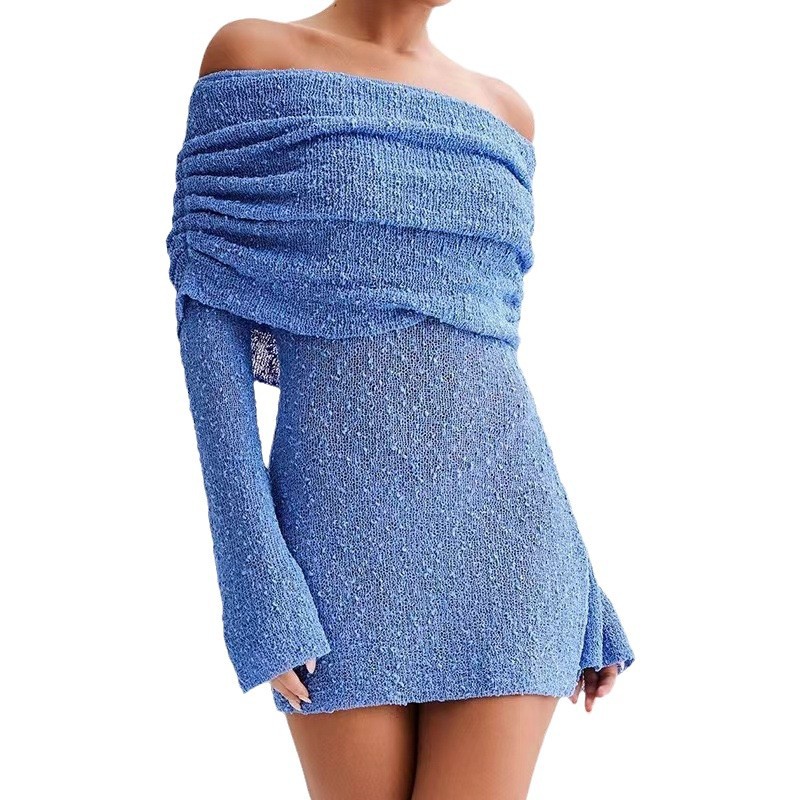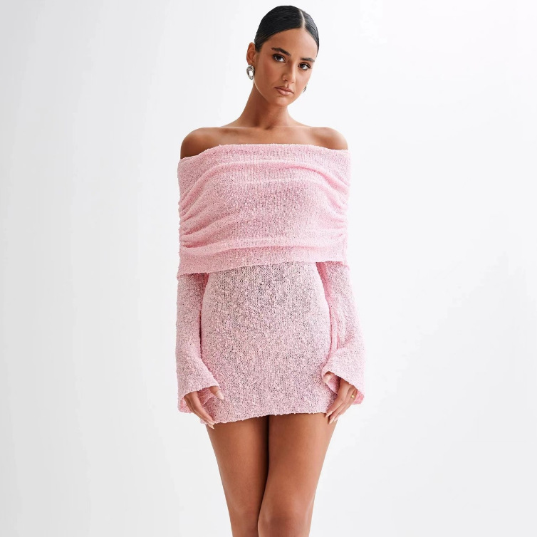 2024 가을과 겨울 새로운 유럽과 미국의 국경 아마존 여성의 섹시한 속이 빈 긴 소매 어깨 원피스 스커트 여성