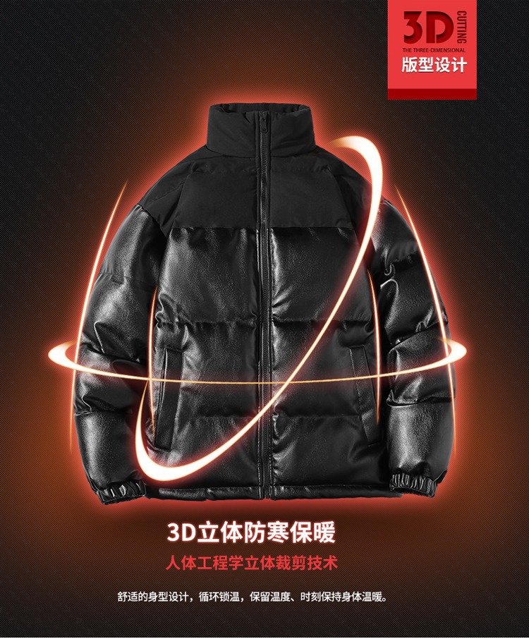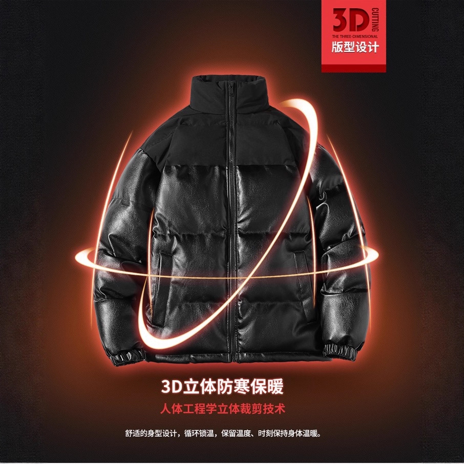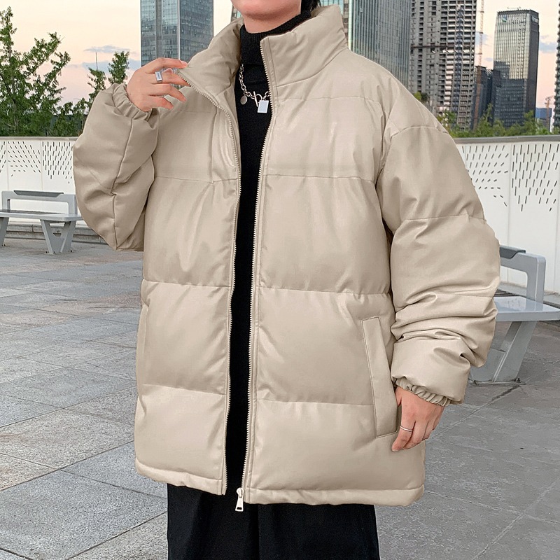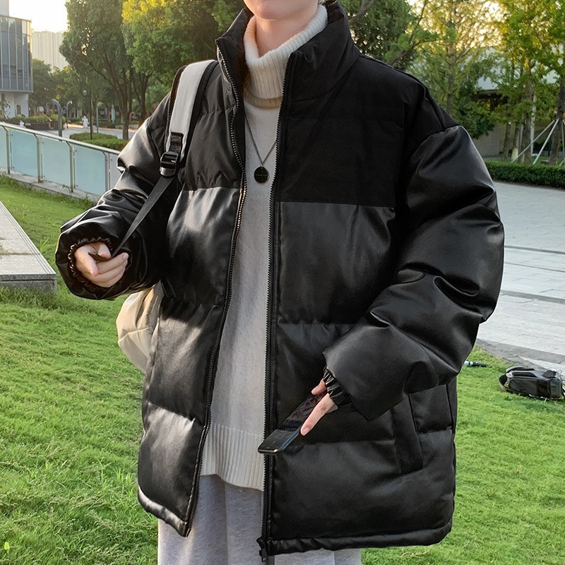 겨울 남자 다운 코튼 의류 수직 칼라 PU 가죽 코트 두꺼운 잘 생긴 빵 세트 한국 스타일 홍콩 스타일 Ins Loose