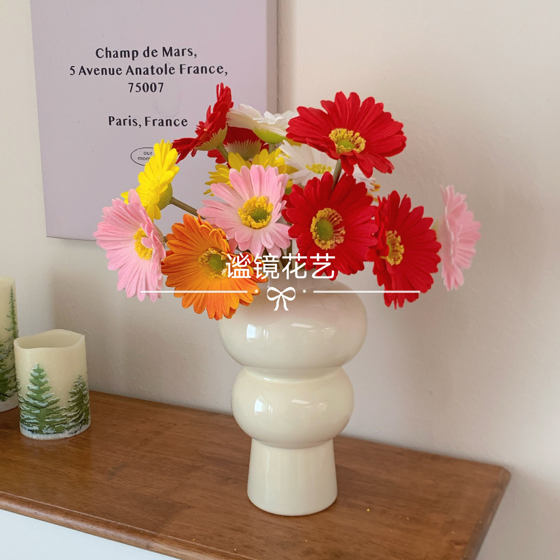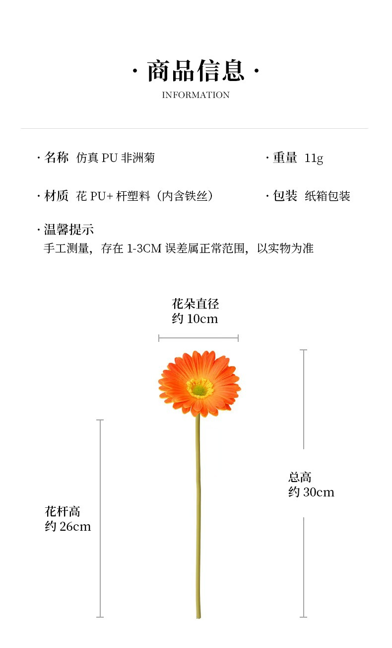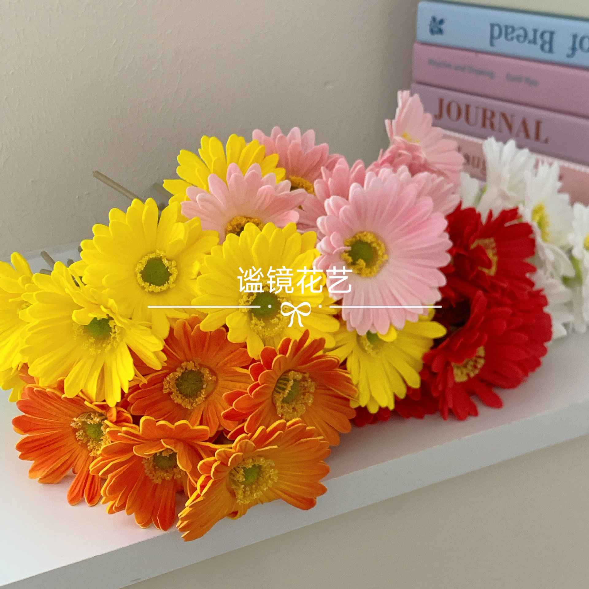 국경 간 PU 손 느낌 시뮬레이션 Gerbera 꽃 가짜 꽃 장식 홈 거실 식탁 꽃 장식 꽃 장식 꽃 장식