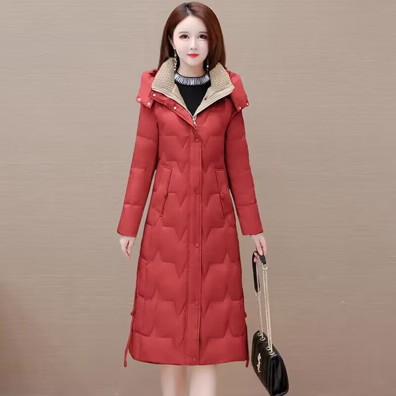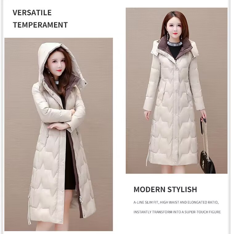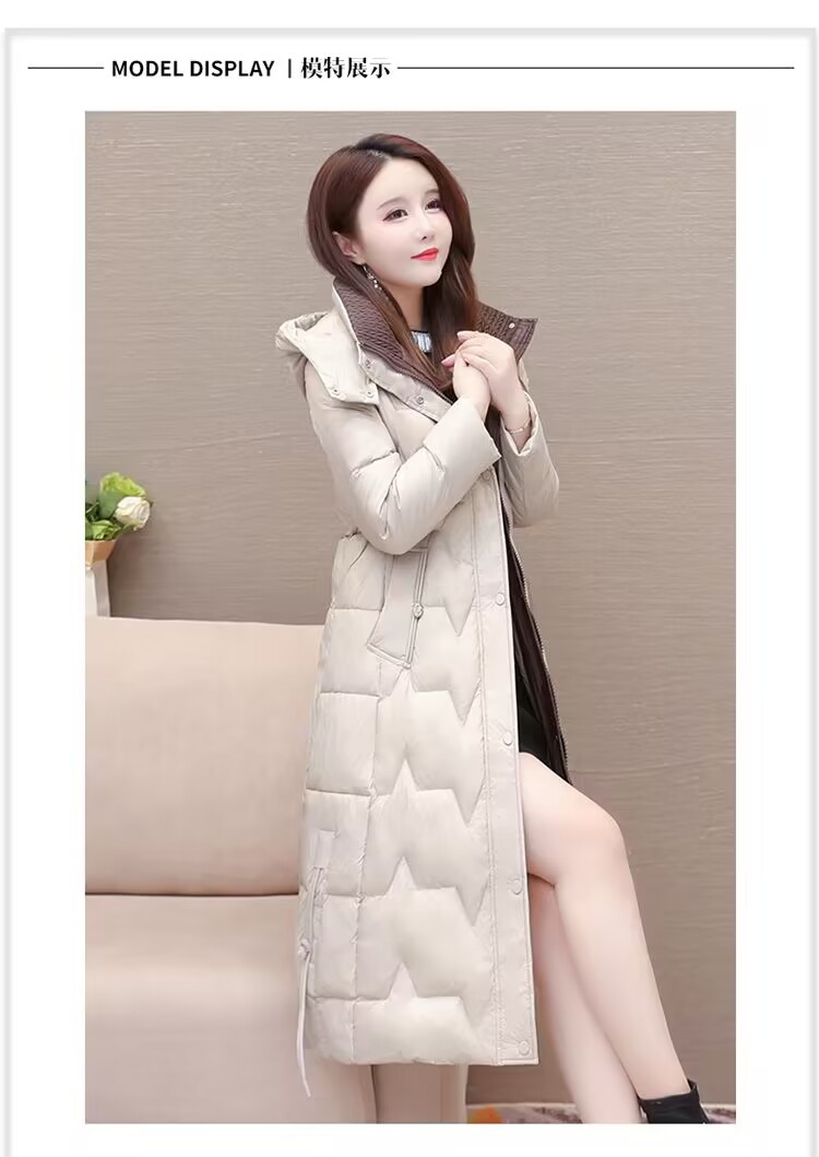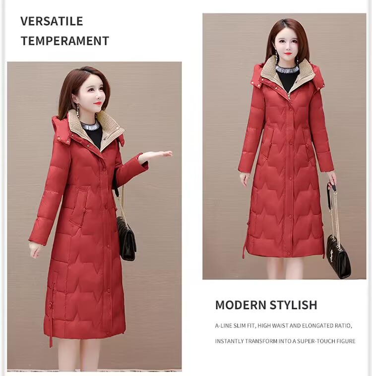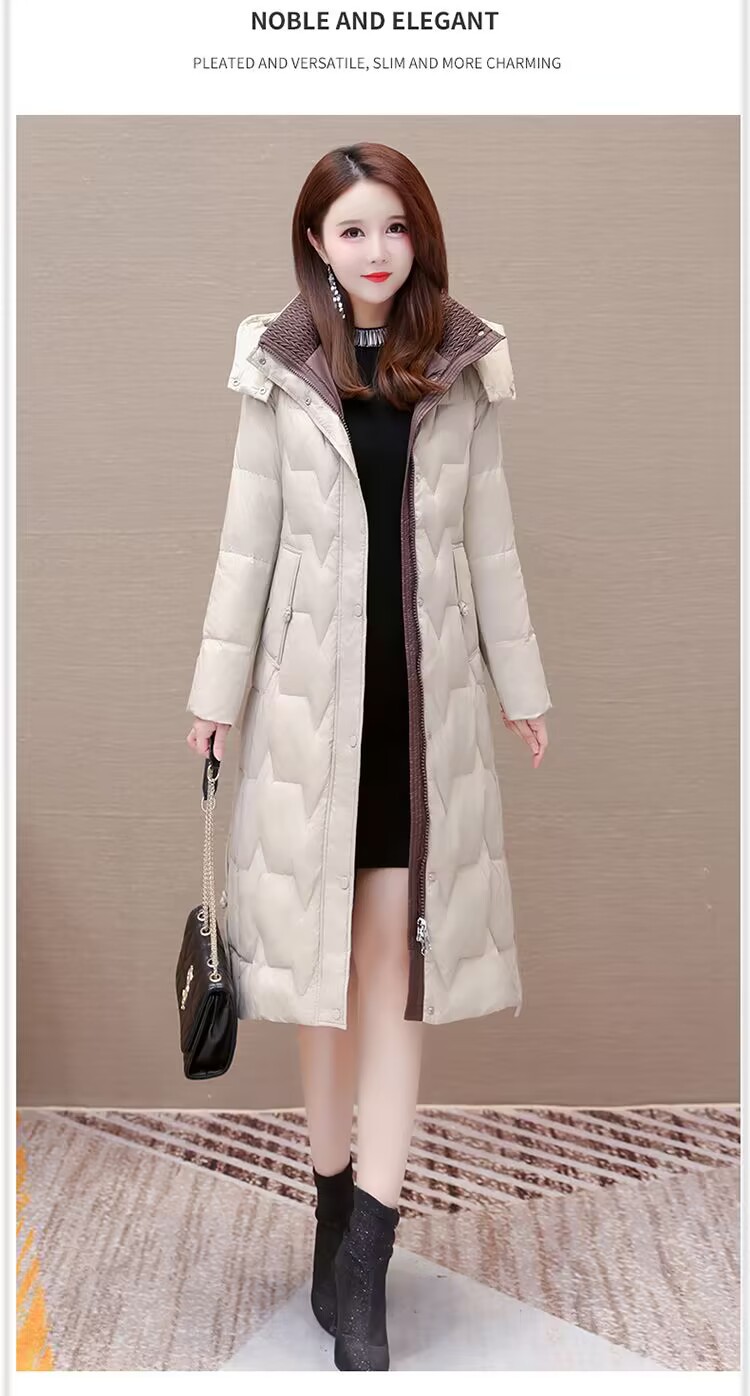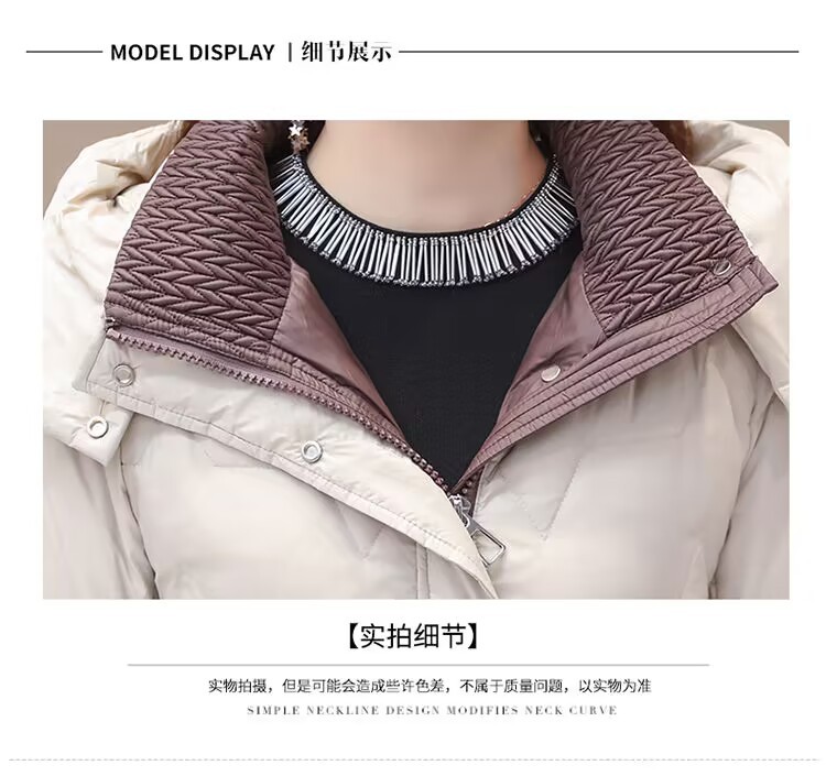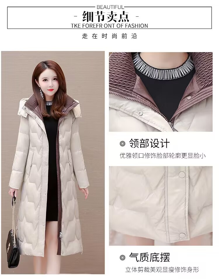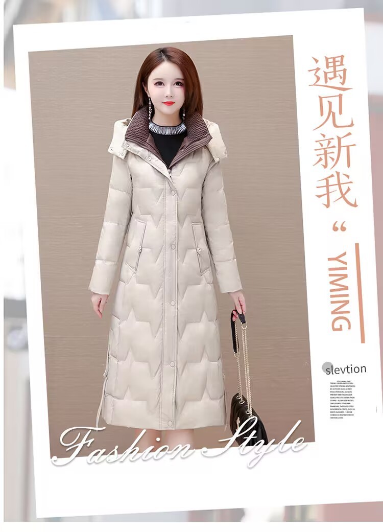 패션 슬림 핏 여성용 다운 재킷 2024 새로운 겨울 어머니 세련된 긴 따뜻한 흰색 오리 다운 재킷