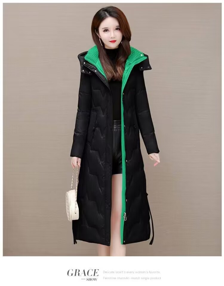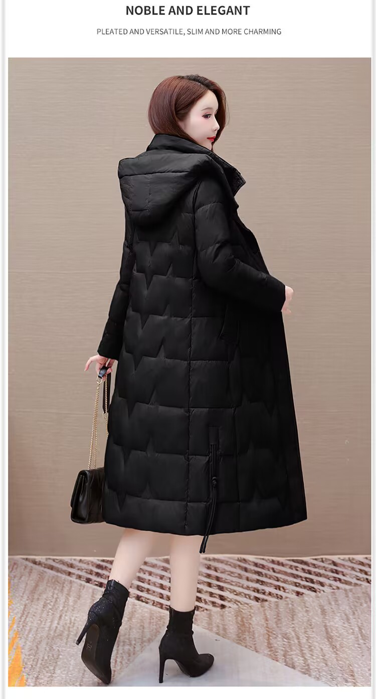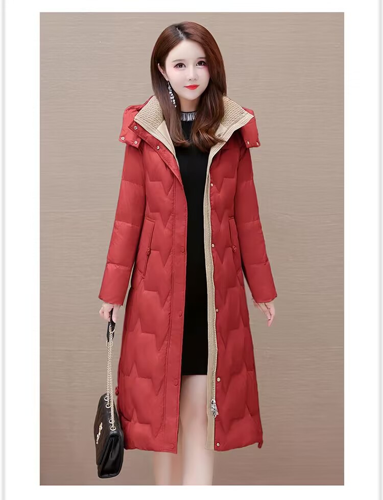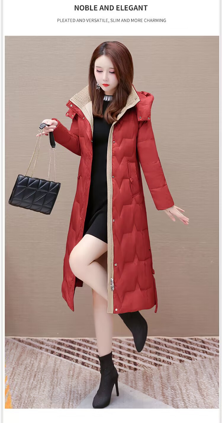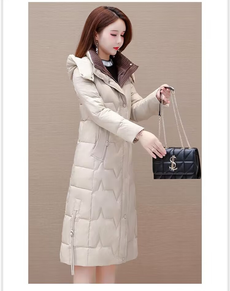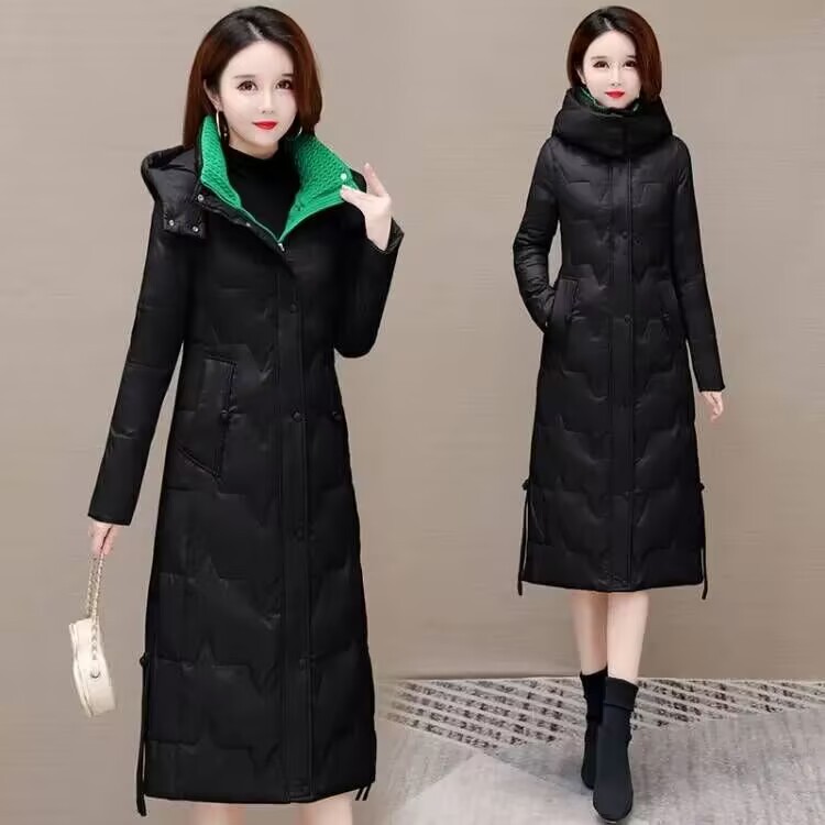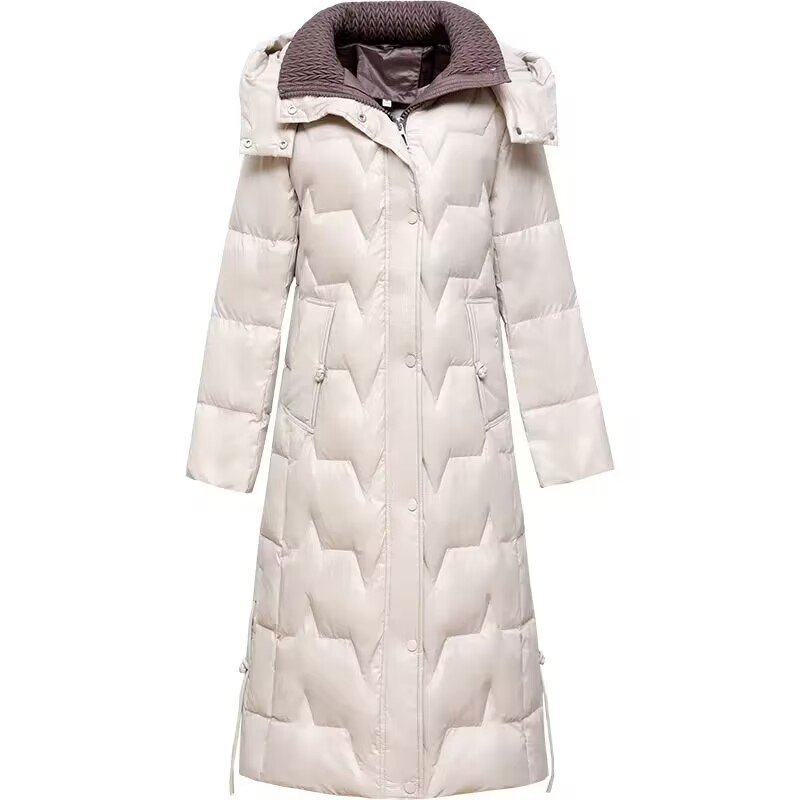 패션 슬림 핏 여성용 다운 재킷 2024 새로운 겨울 어머니 세련된 긴 따뜻한 흰색 오리 다운 재킷