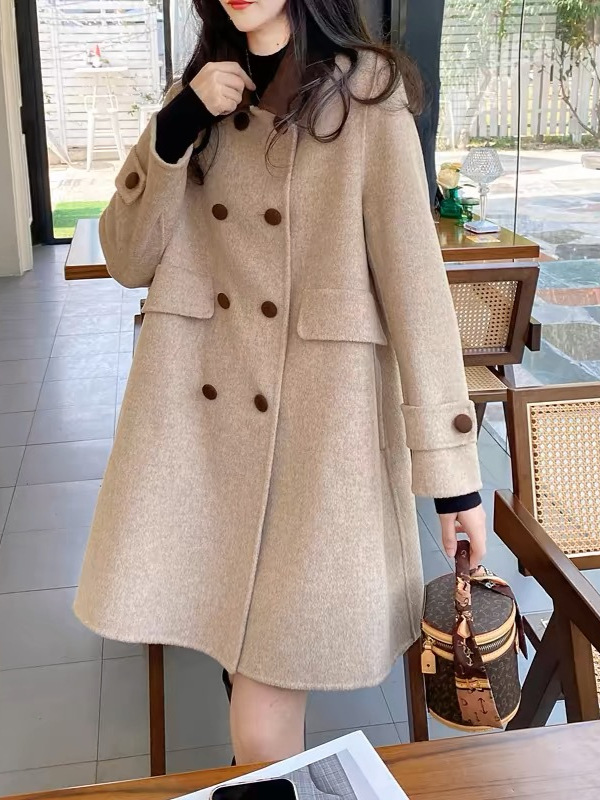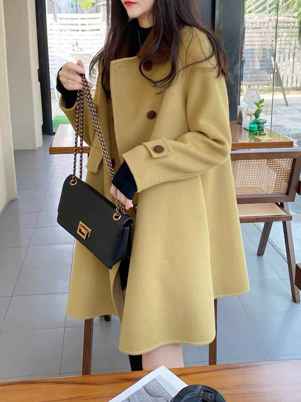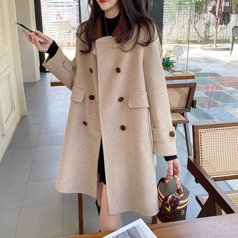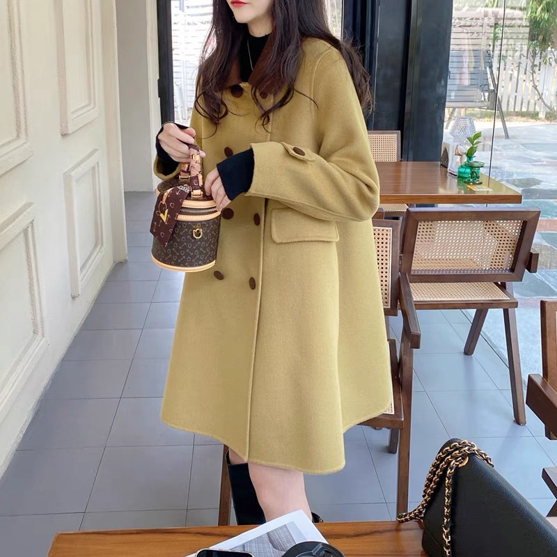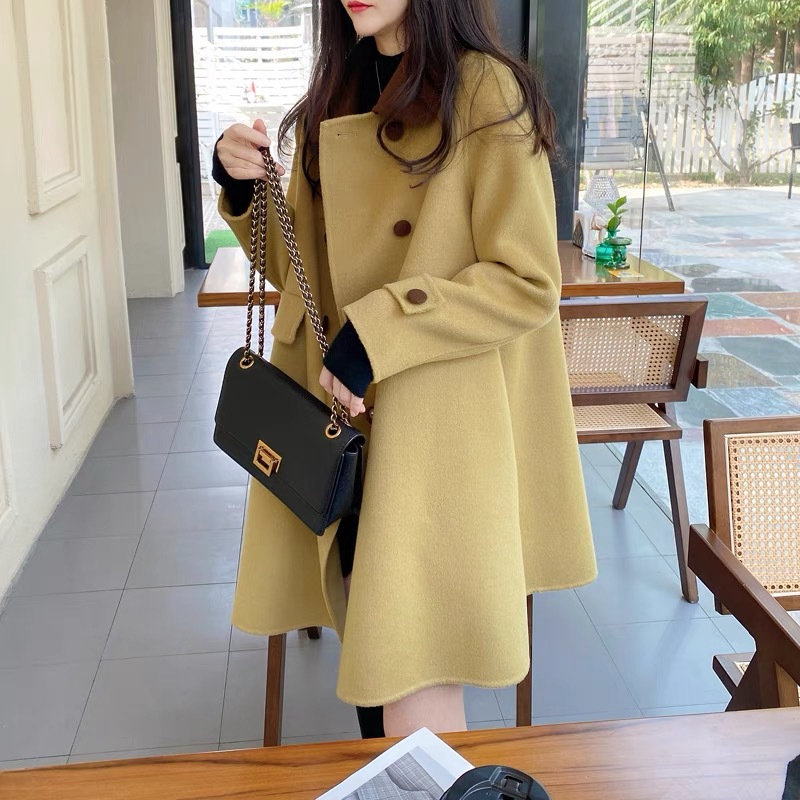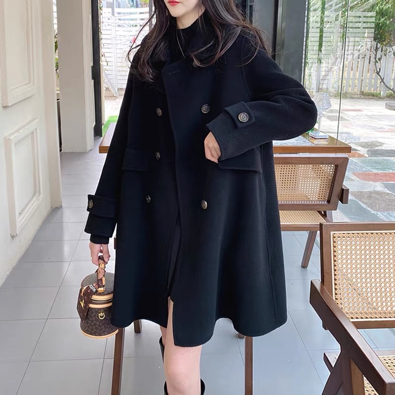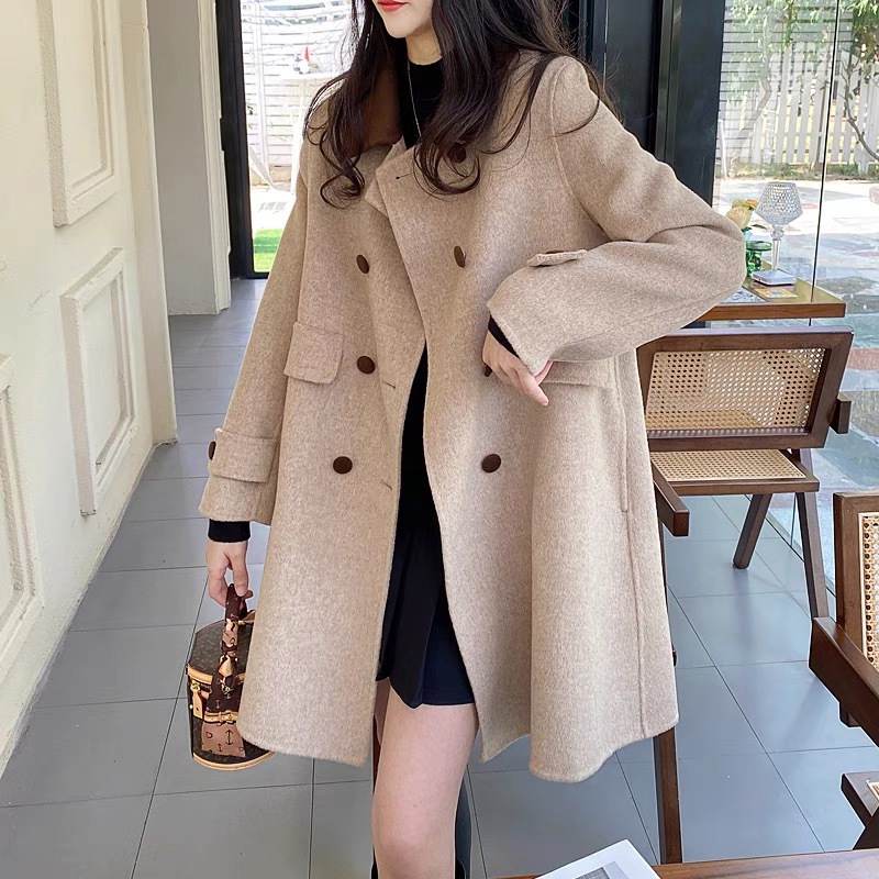 양면 캐시미어 울 코트 여자 2024 년 가을 · 겨울 새 중장 한국모 코트 작은 하이 엔드 센스