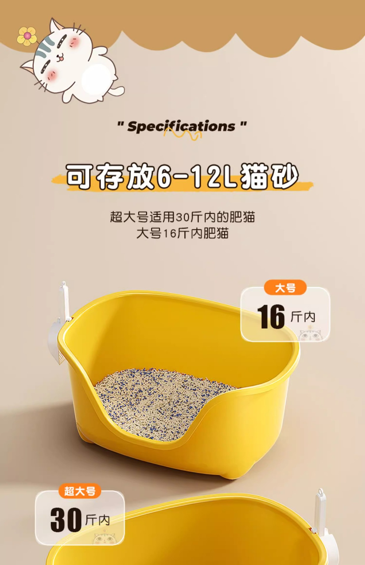 대형 반폐쇄 고양이 쓰레기 분지 안티 스플래시 오픈 고양이 화장실 빅맥 대용량 고양이 쓰레기 분지 심화