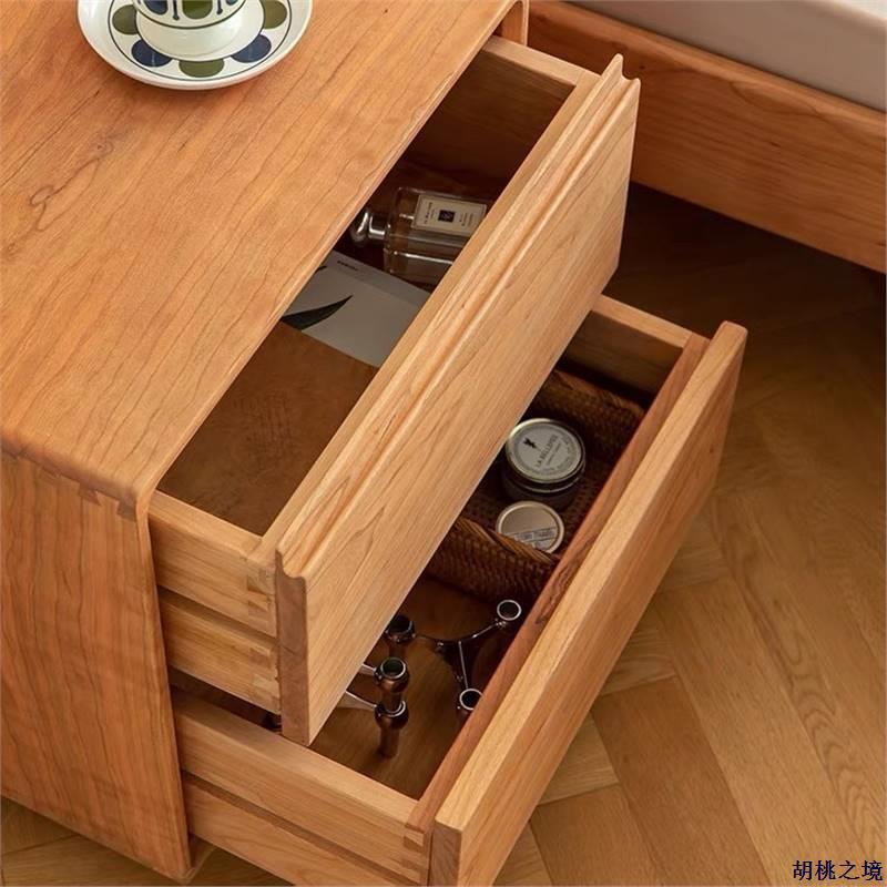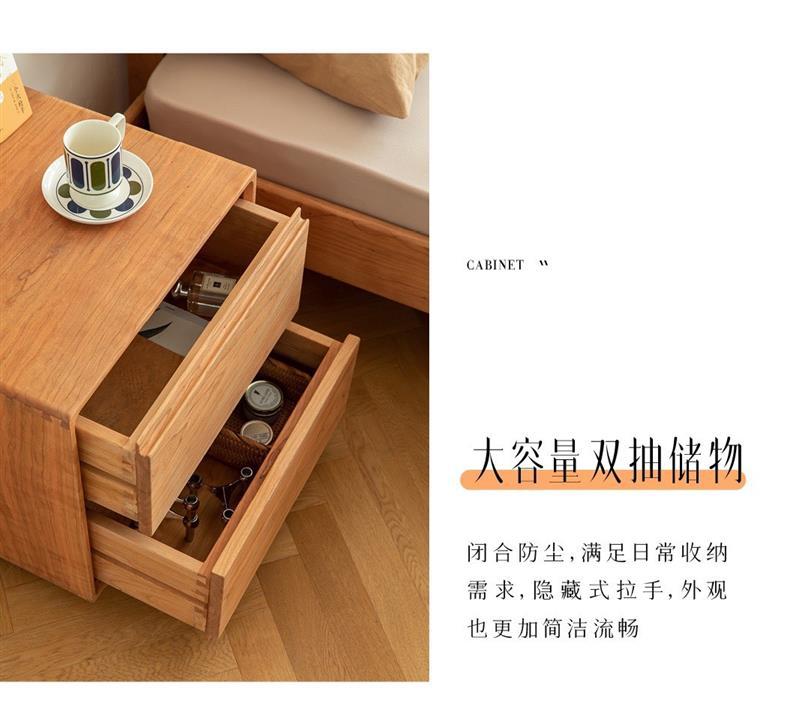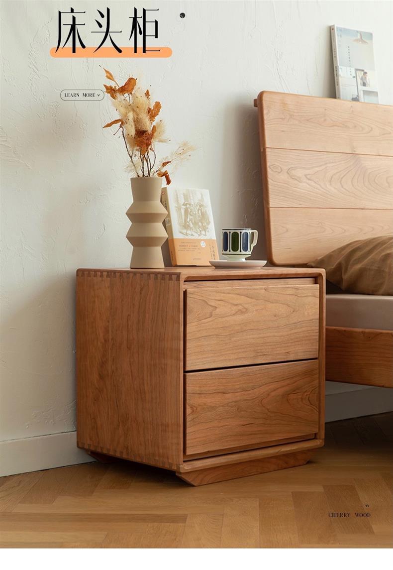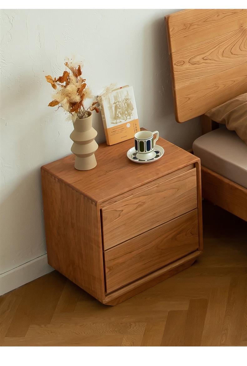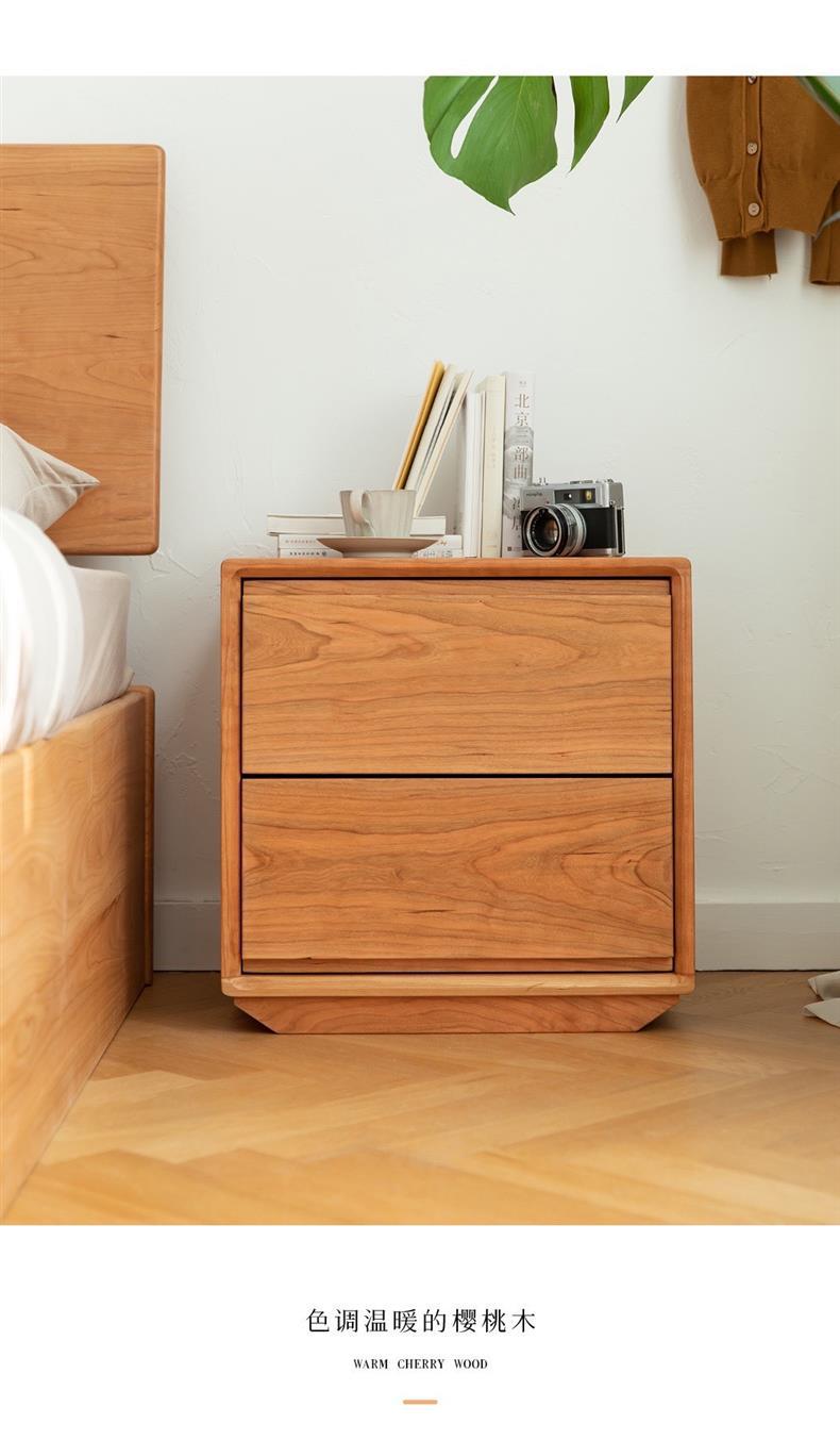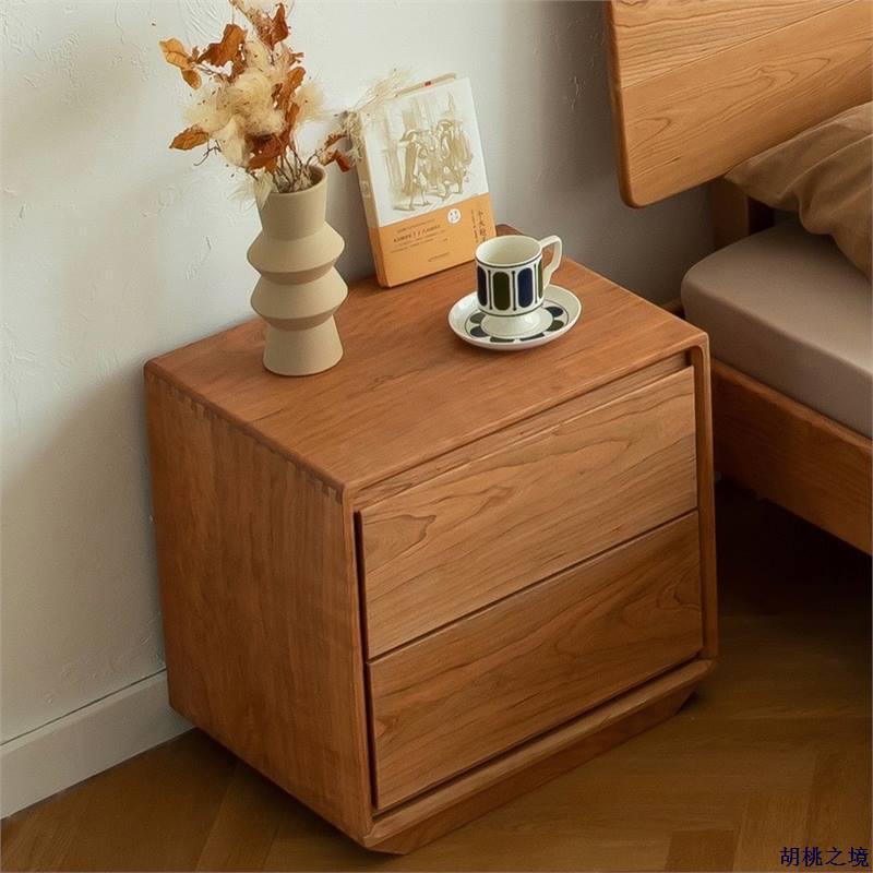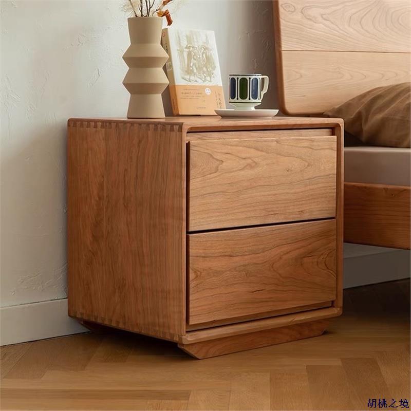 북유럽 스타일 체리 나무 통나무 침대 옆 테이블 보관 캐비닛 현대 간단한 검은 호두 단단한 나무 침실 침실 보관 캐비닛