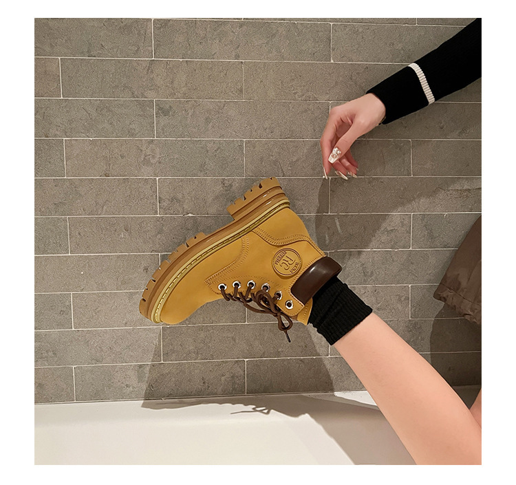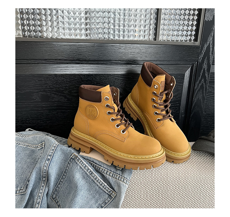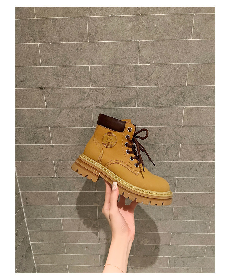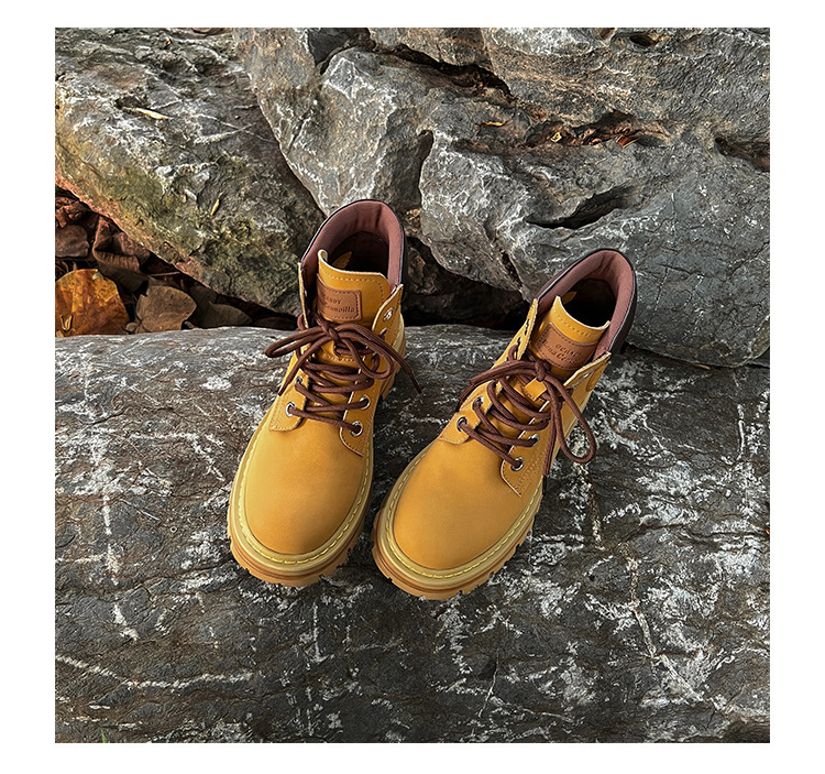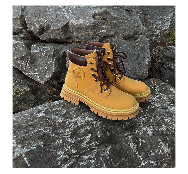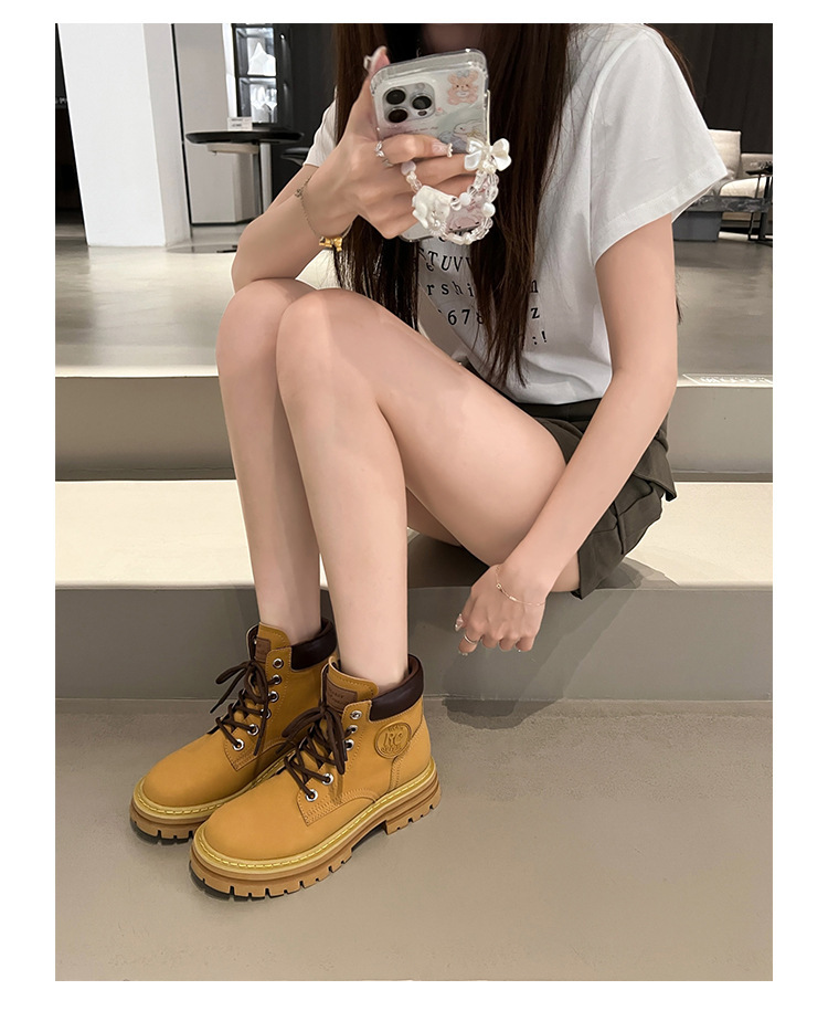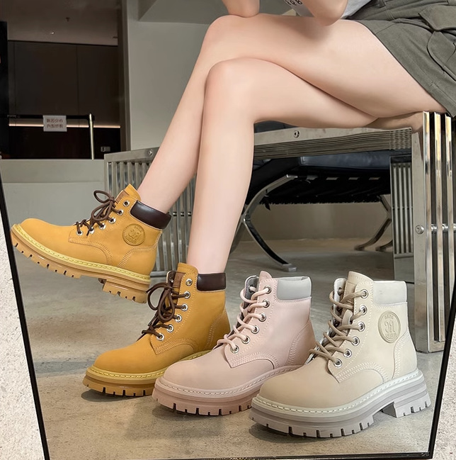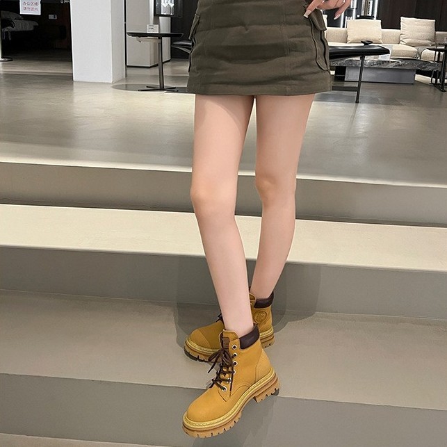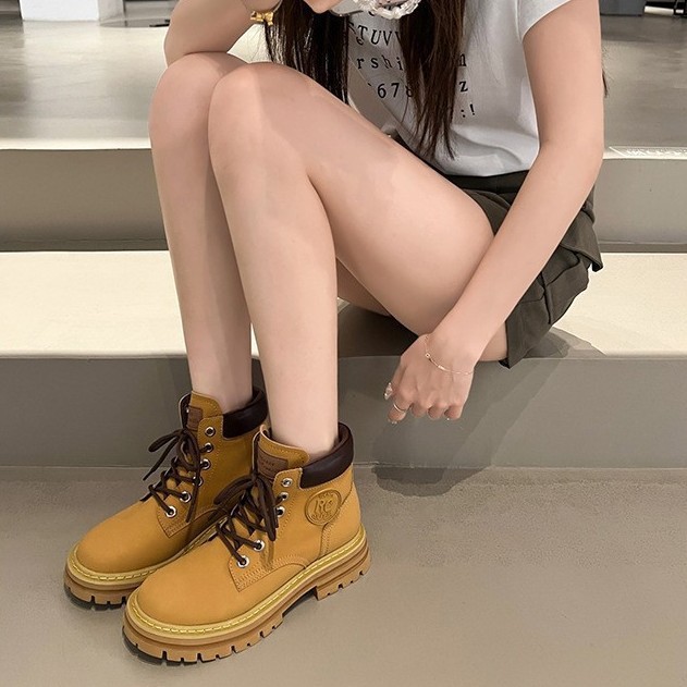 [이모님집] 오토바이 소녀들을 위한 천연 가죽 튼튼하고 예쁜 마틴 부츠, 가을 통기성 빅옐로우 부츠, 등산용 숏부츠
