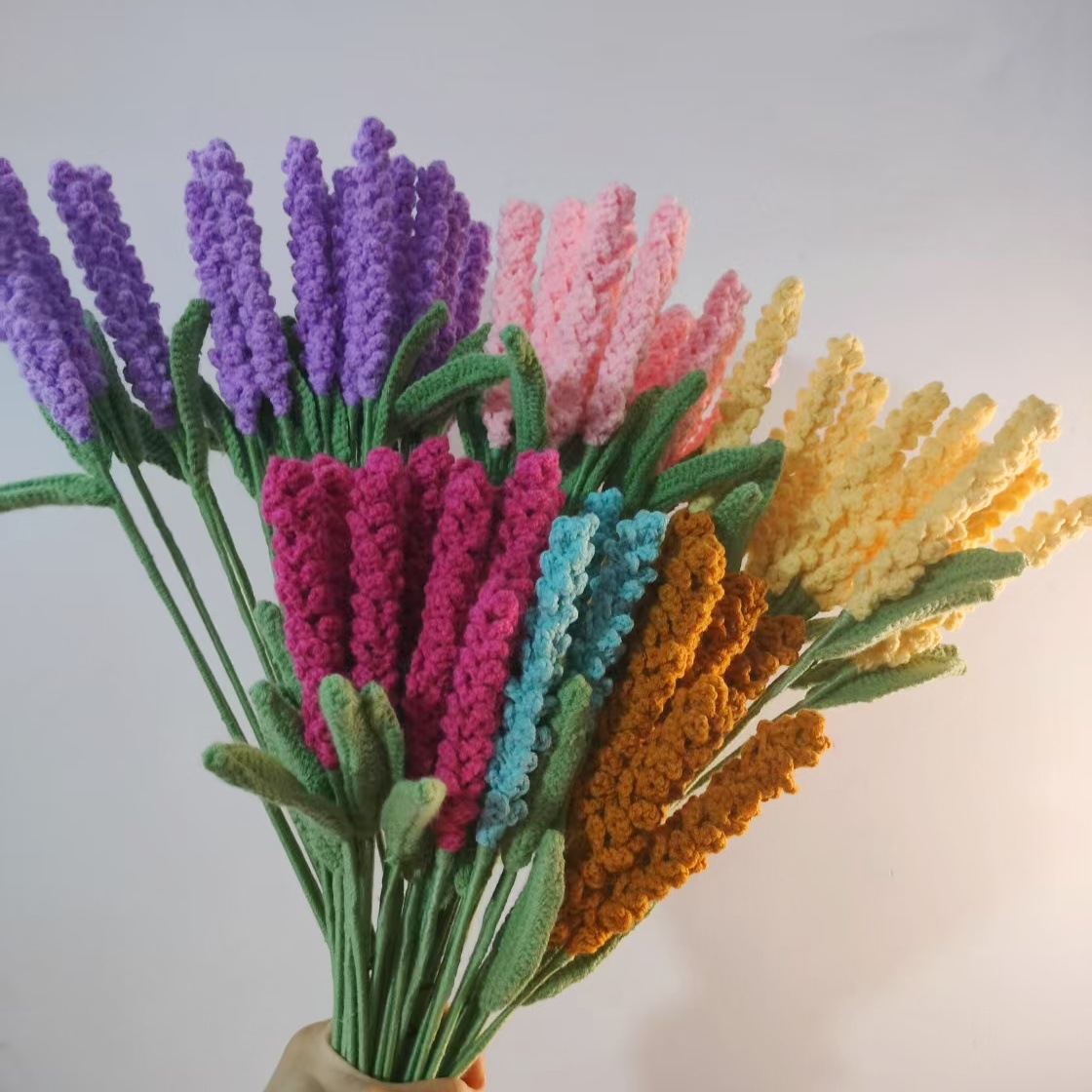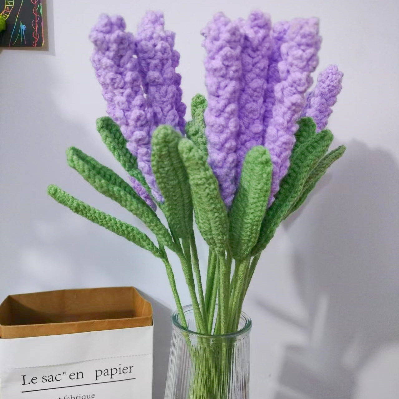 양모 뜨개질 인공 꽃 뜨개질 라벤더 영원한 꽃 홈 장식 양모 꽃 휴일 꽃다발 뜨개질 선물