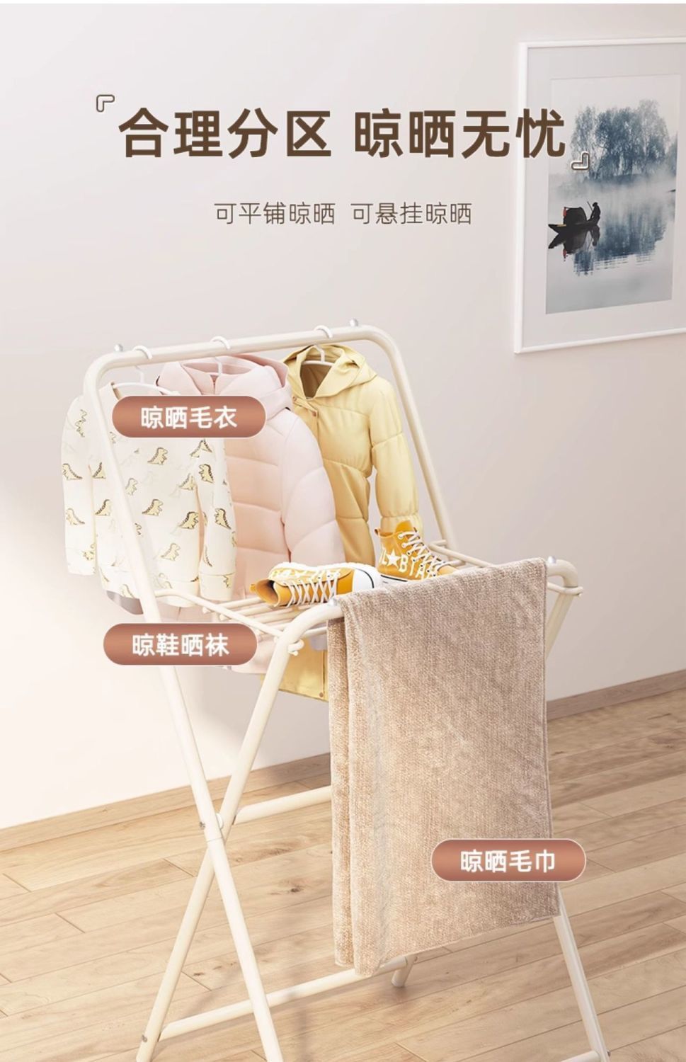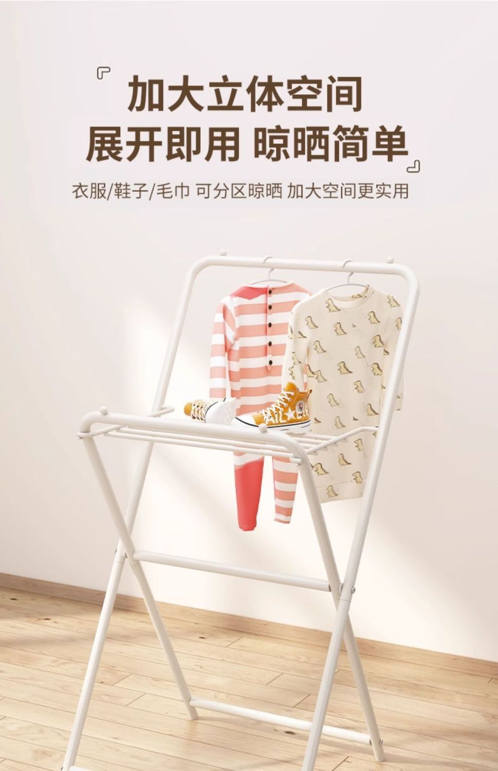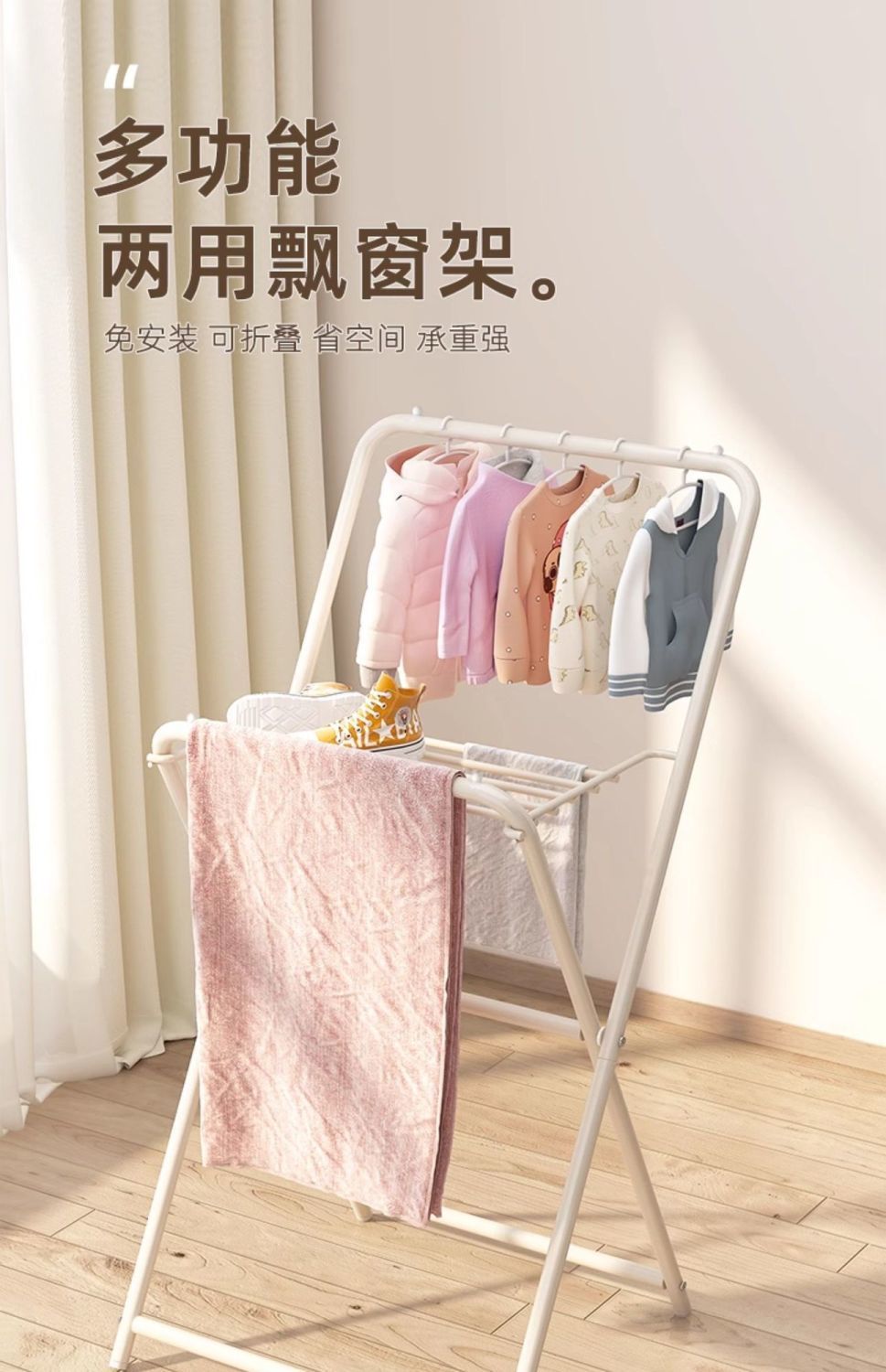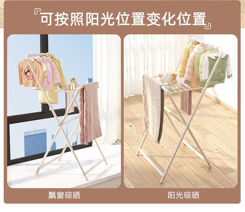 건조 랙 바닥 가정용 기숙사 접이식 침실 코트 랙 간단한 옷 선반 베이 창 발코니 건조 랙