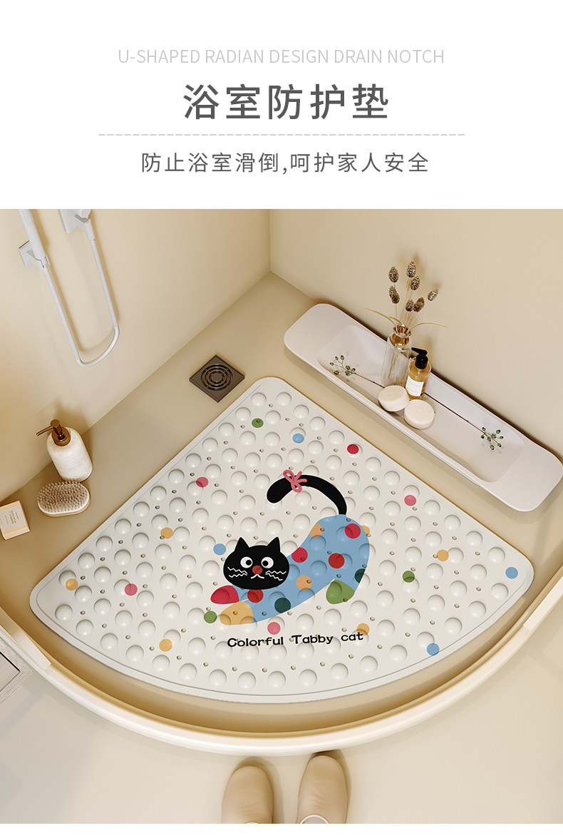 귀여운 욕실 미끄럼 방지 매트 - 노치가 있는 둥근 모양