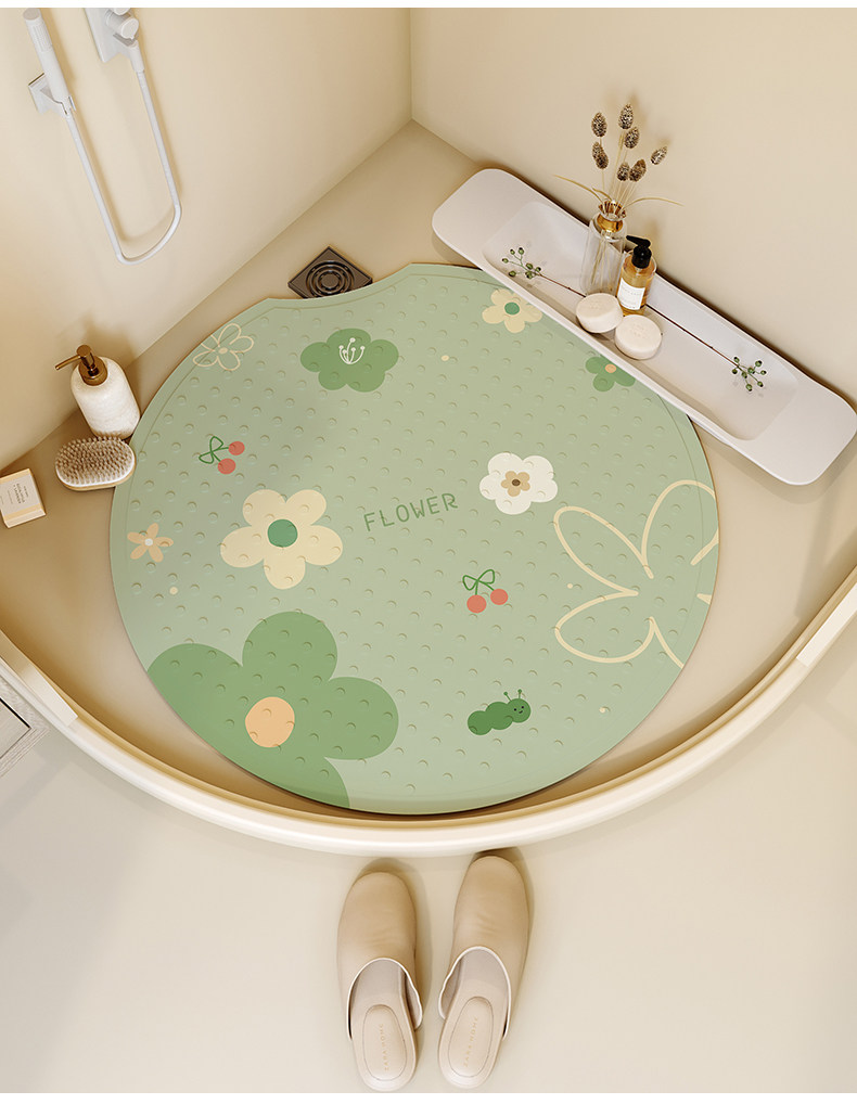 꽃무늬 밀크 그린 욕실 미끄럼 방지 매트 - 노치가 있는 둥근 모양