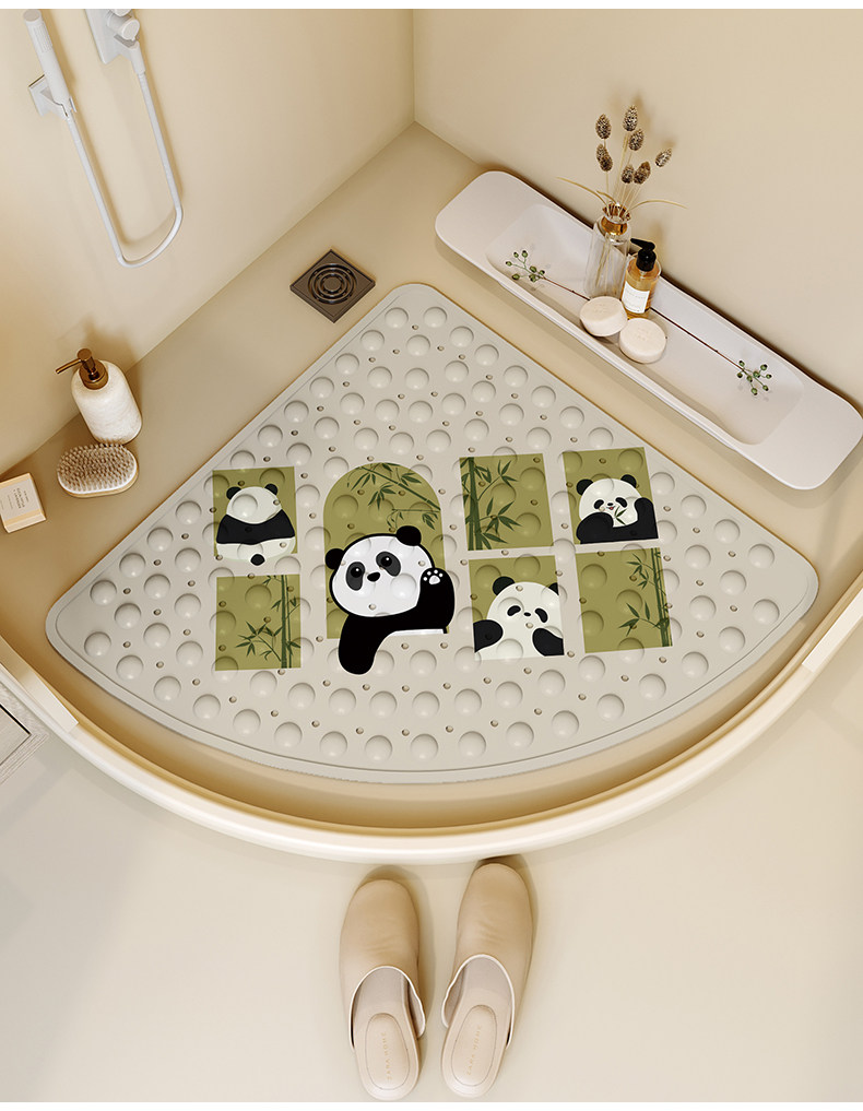 말차 팬더 대나무 욕실 미끄럼 방지 매트 - 부채 모양