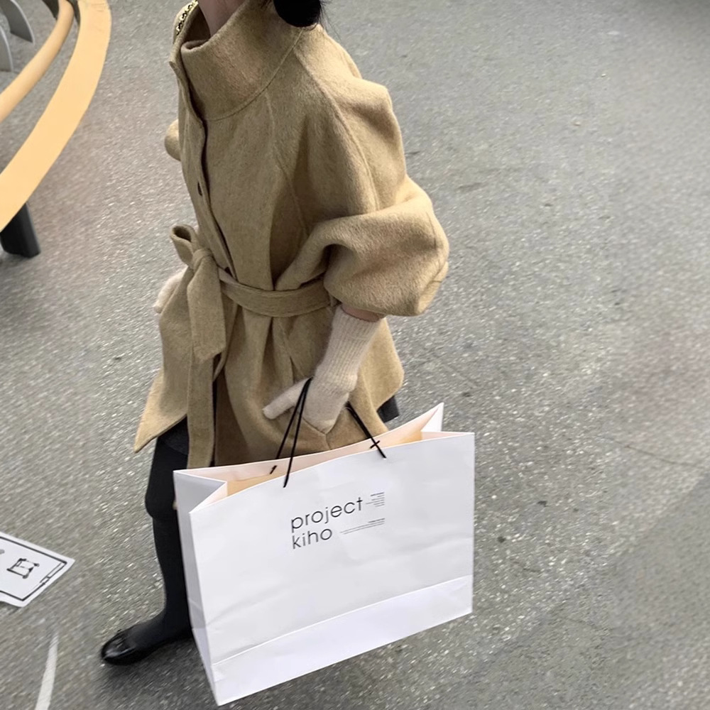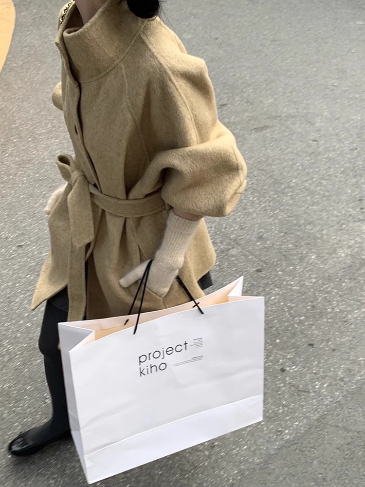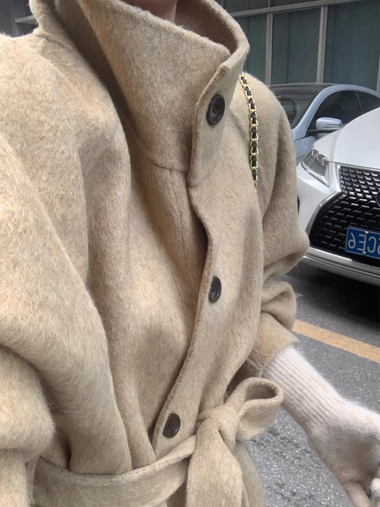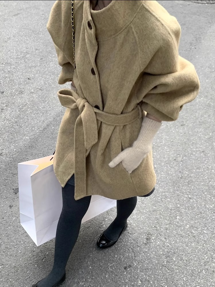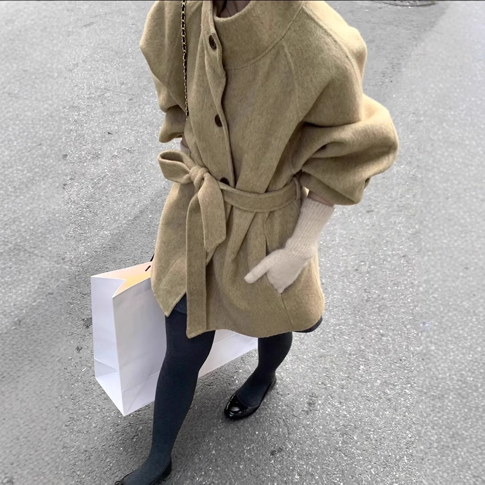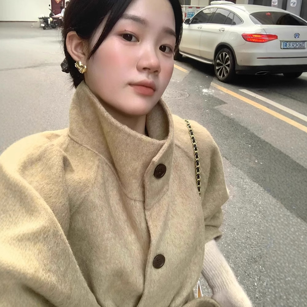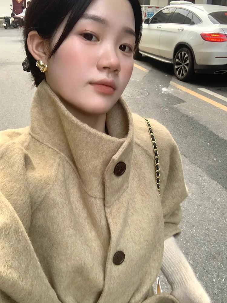2025 가을 겨울 중간 길이 양면 울 코트, 작은 키 여성을 위한 한국 스타일 캐주얼 스타일의 스탠드 칼라 모직 코트