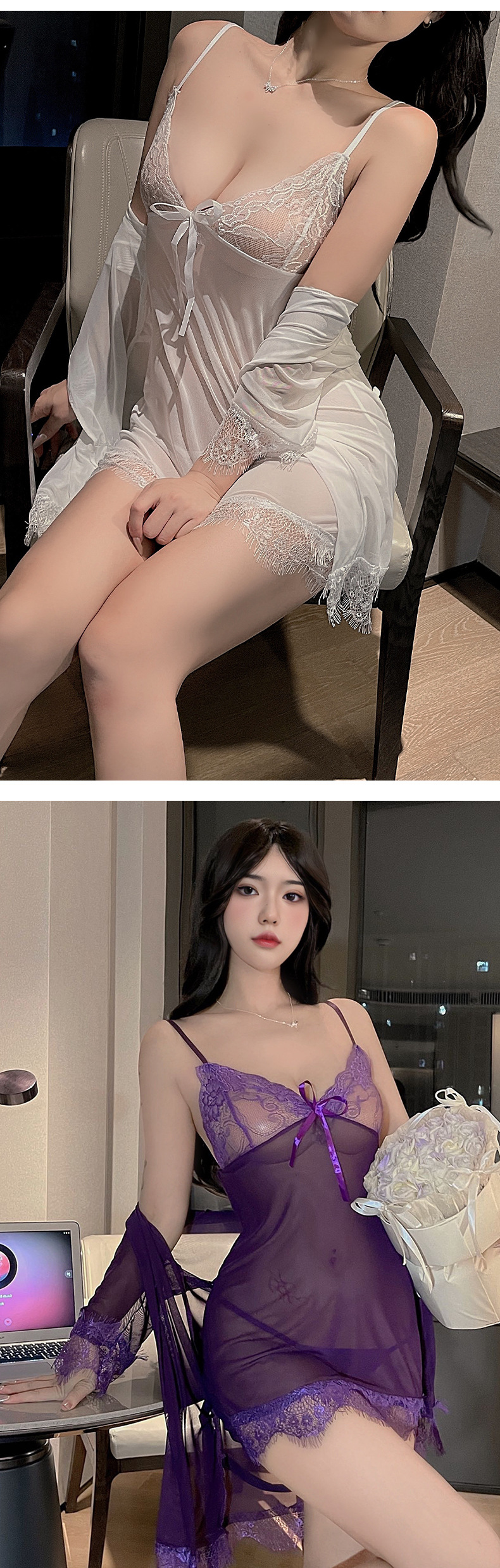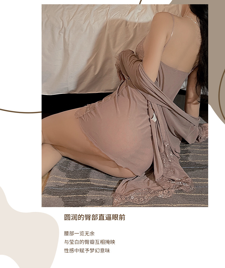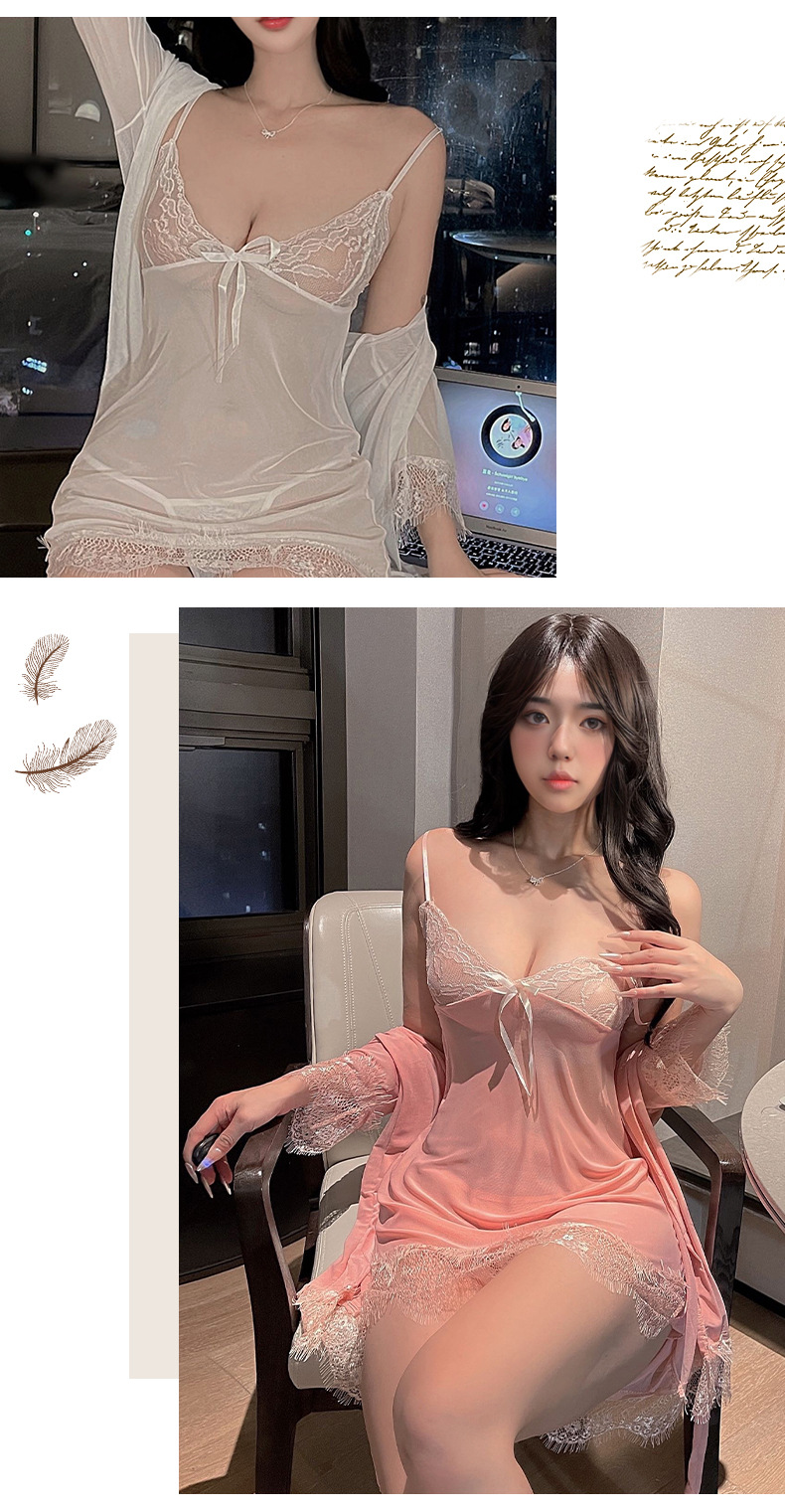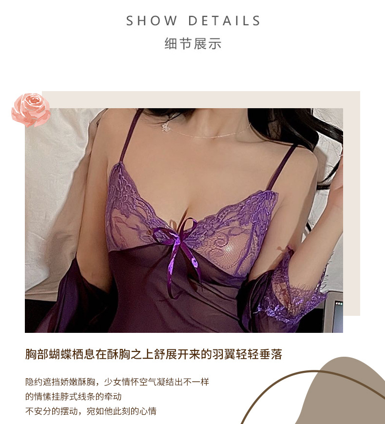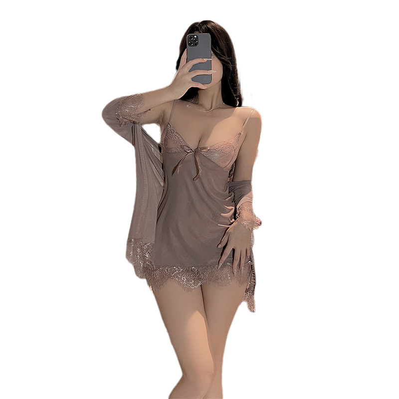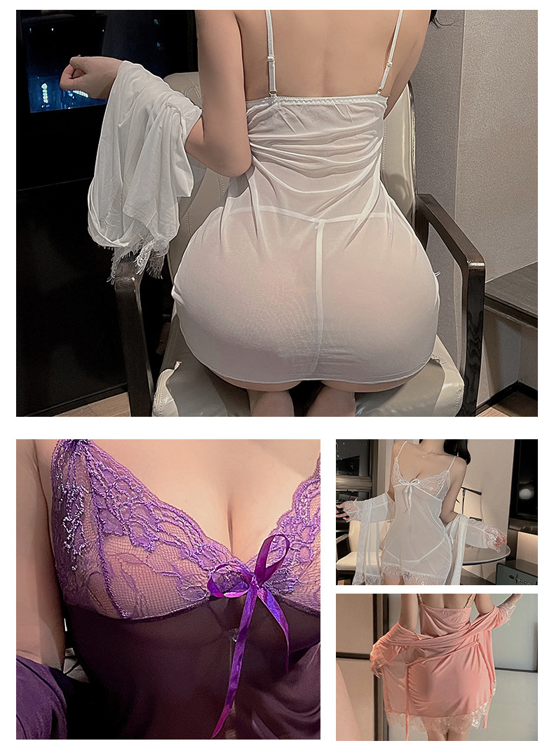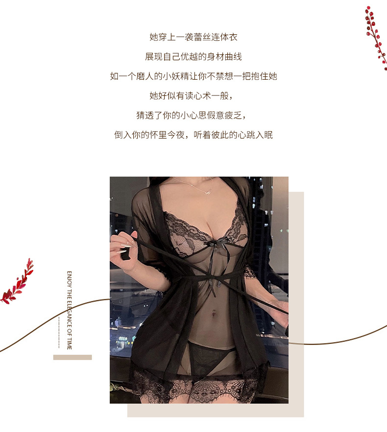 새로운 스타일 섹시한 란제리 플러스 사이즈 세 조각 세트 섹시한 유혹 레이스 툴레 슬링 나이트 가운 세트 벨트 외부 가운