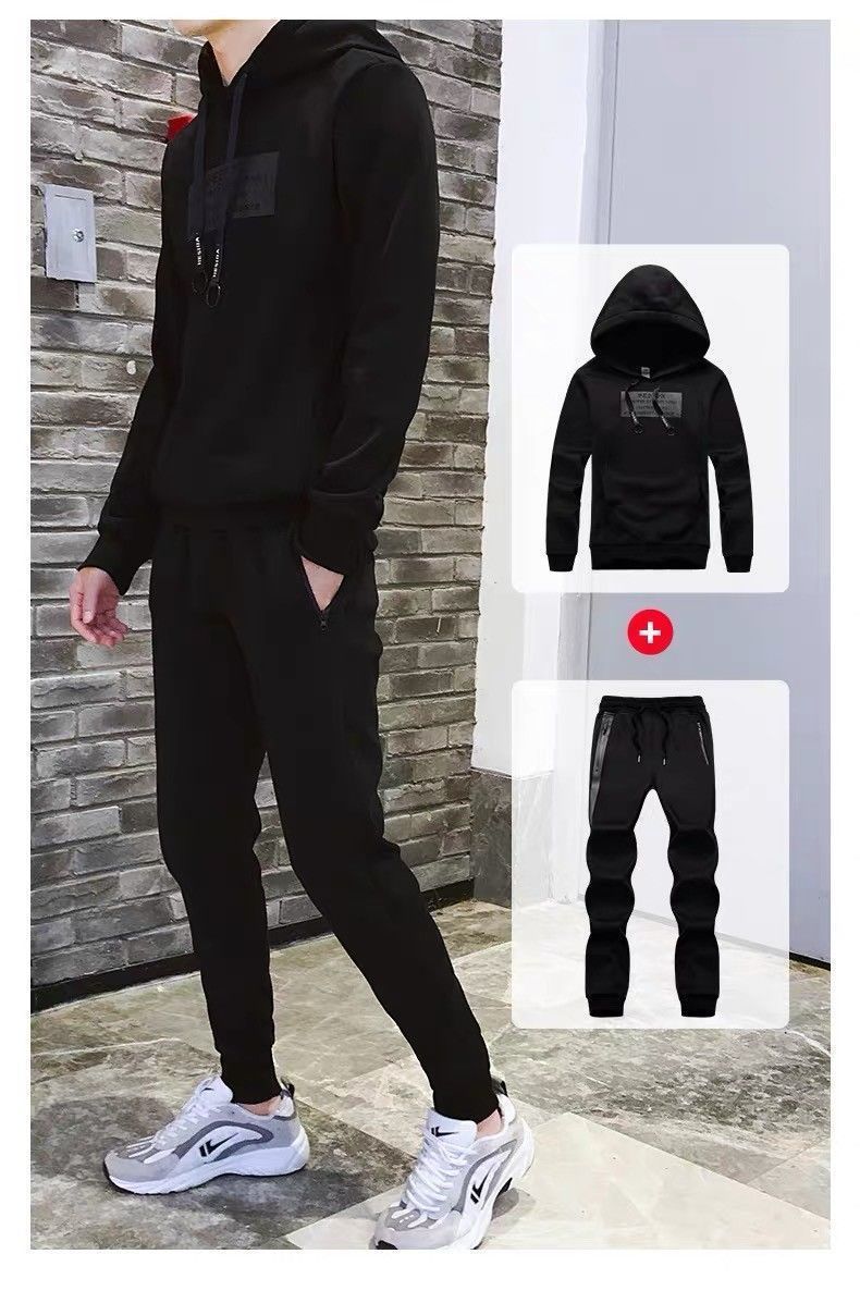 男士秋冬季卫衣马甲休闲三件套时尚简约休闲帅气连帽运动三件装