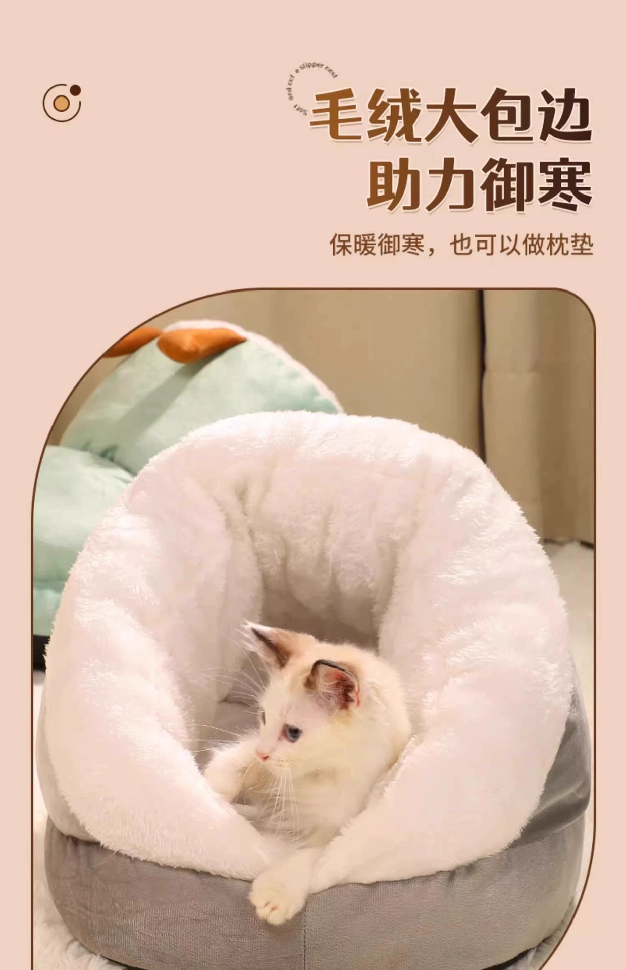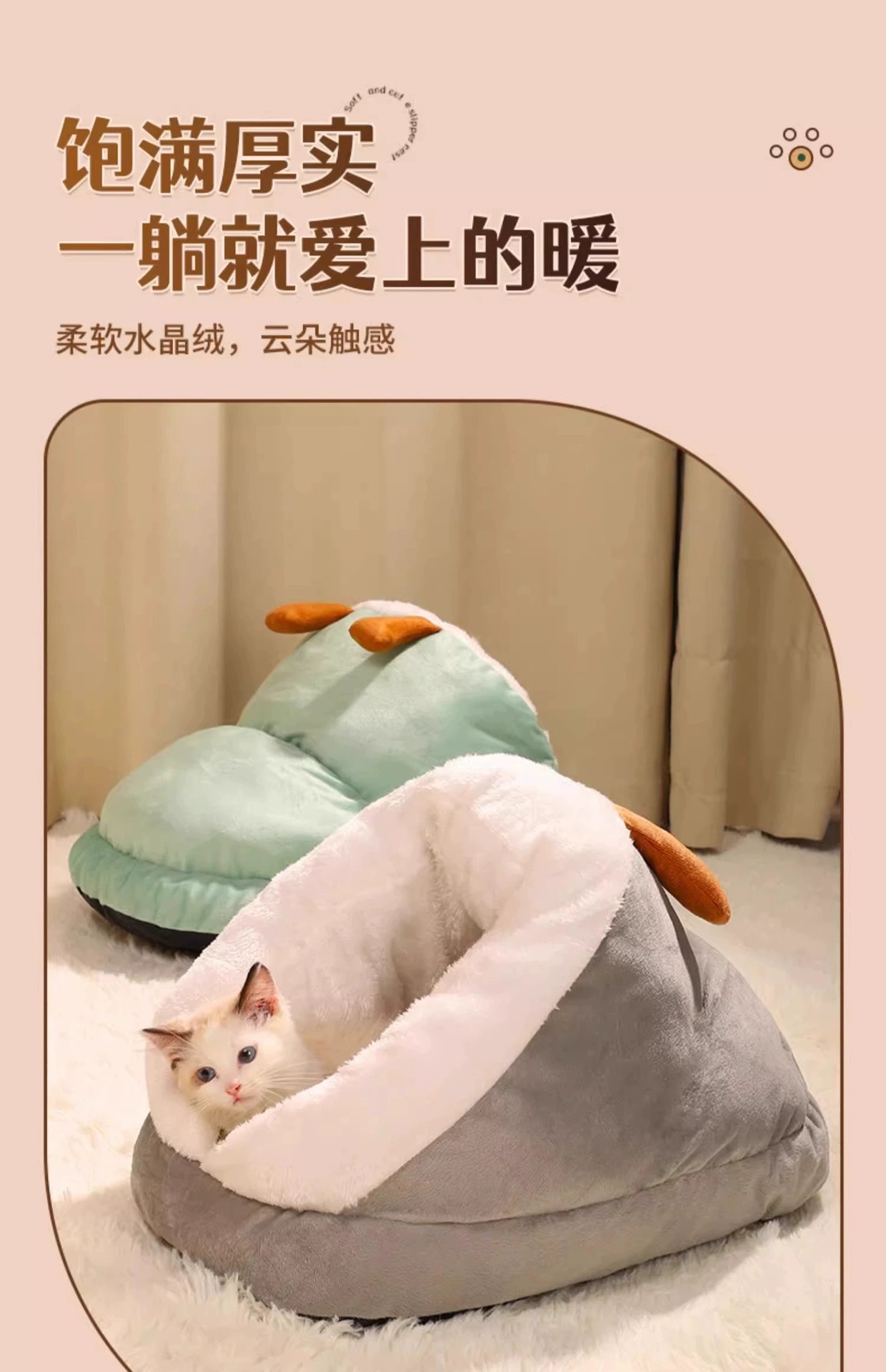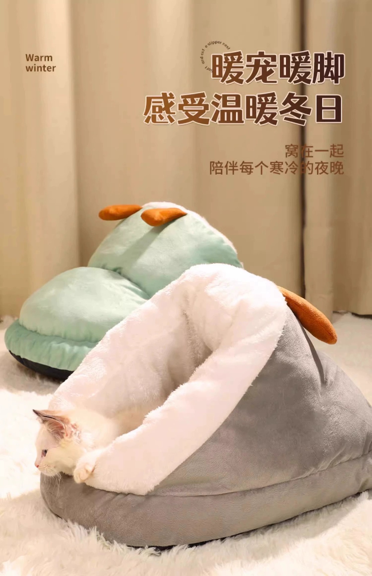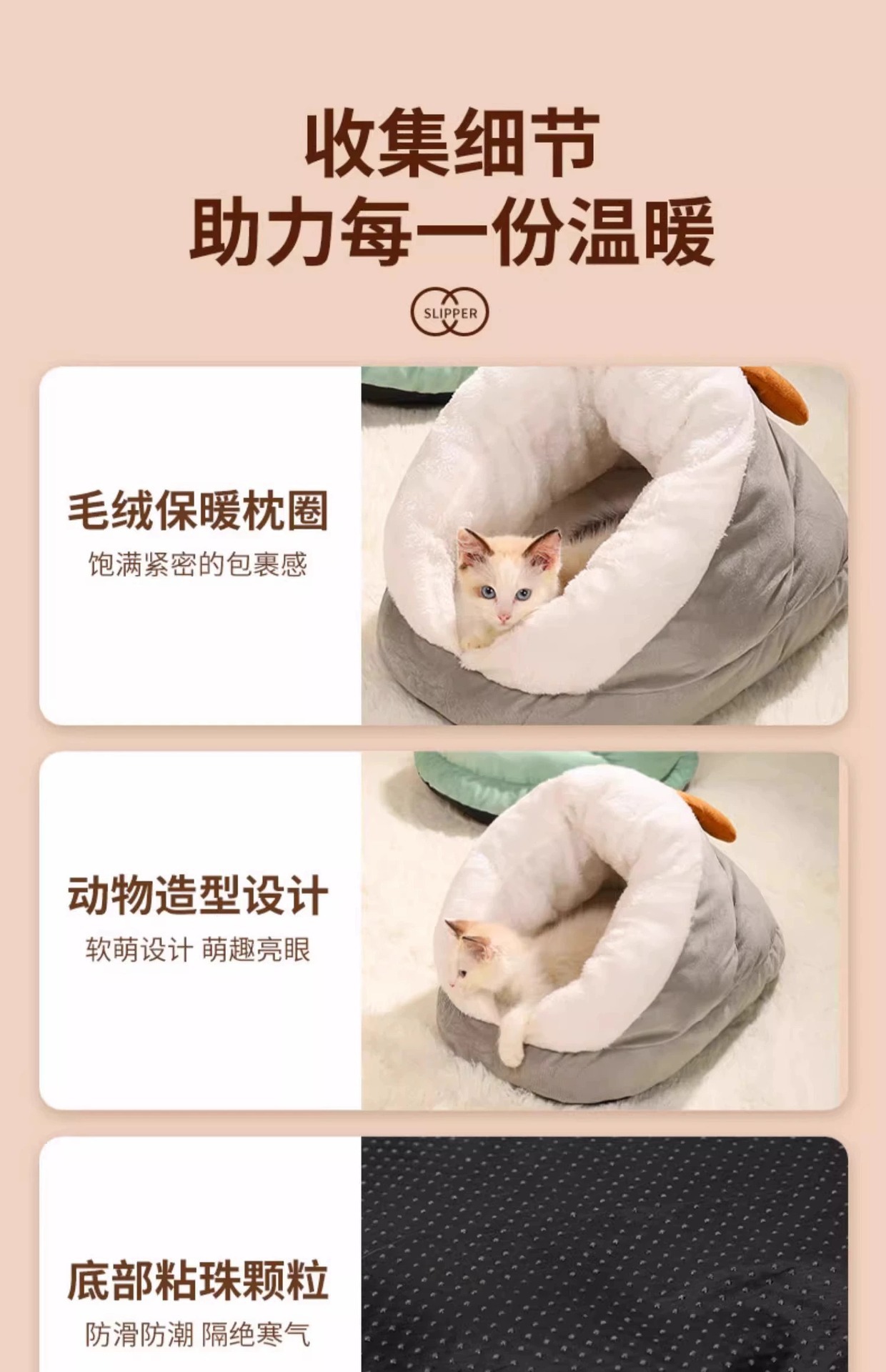 고양이 둥지 겨울 두꺼운 따뜻한 슬리퍼 반 폐쇄 작은 개 침대 겨울 잠자는 둥지 애완 동물 고양이 용품