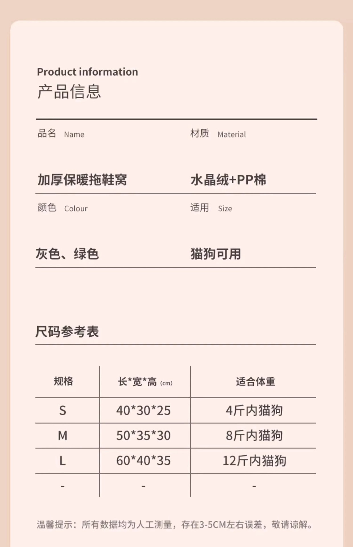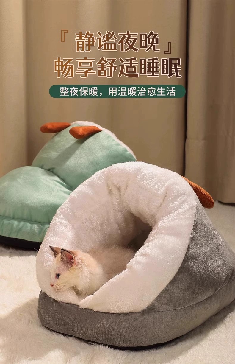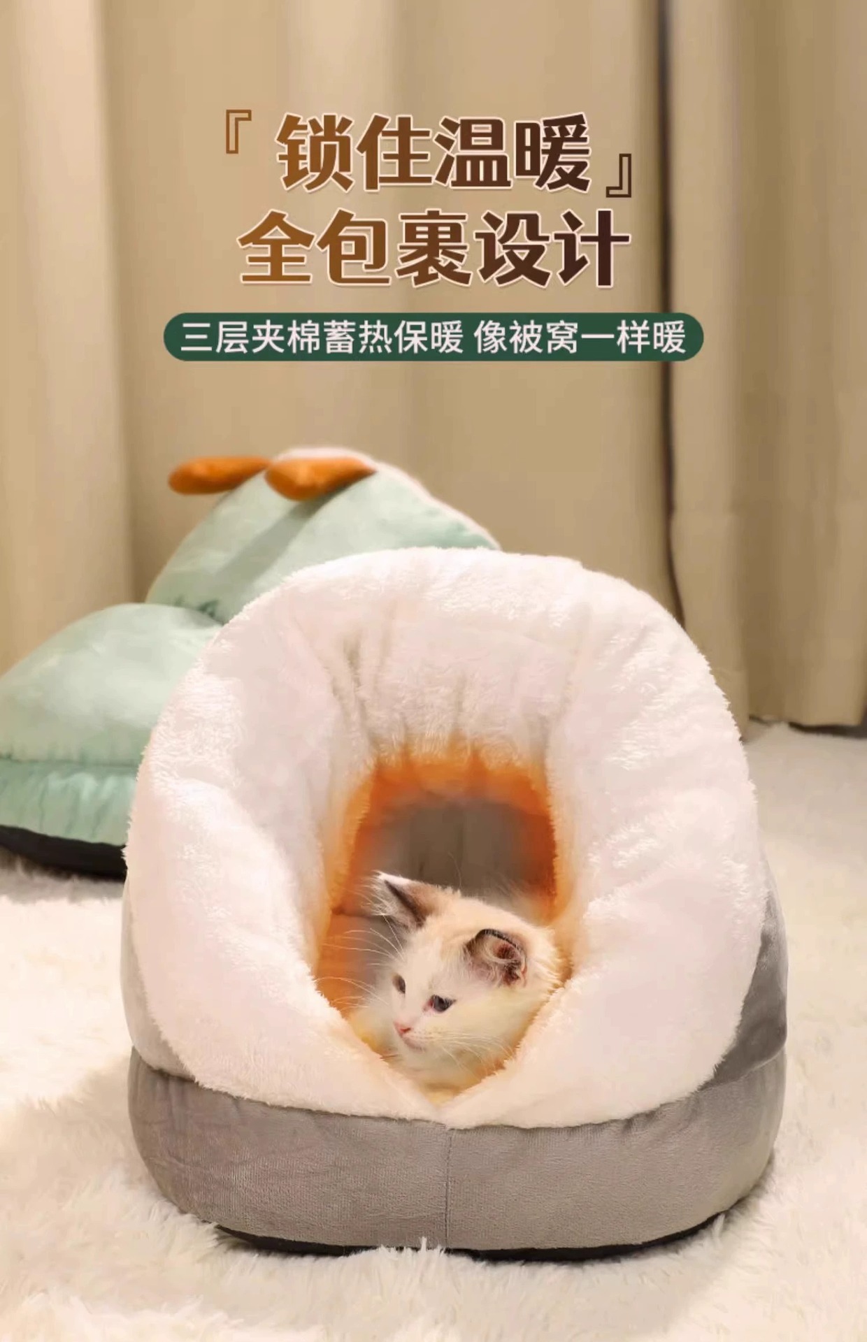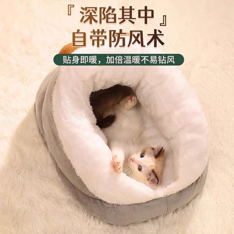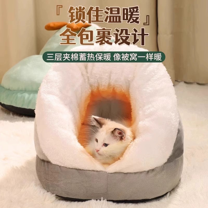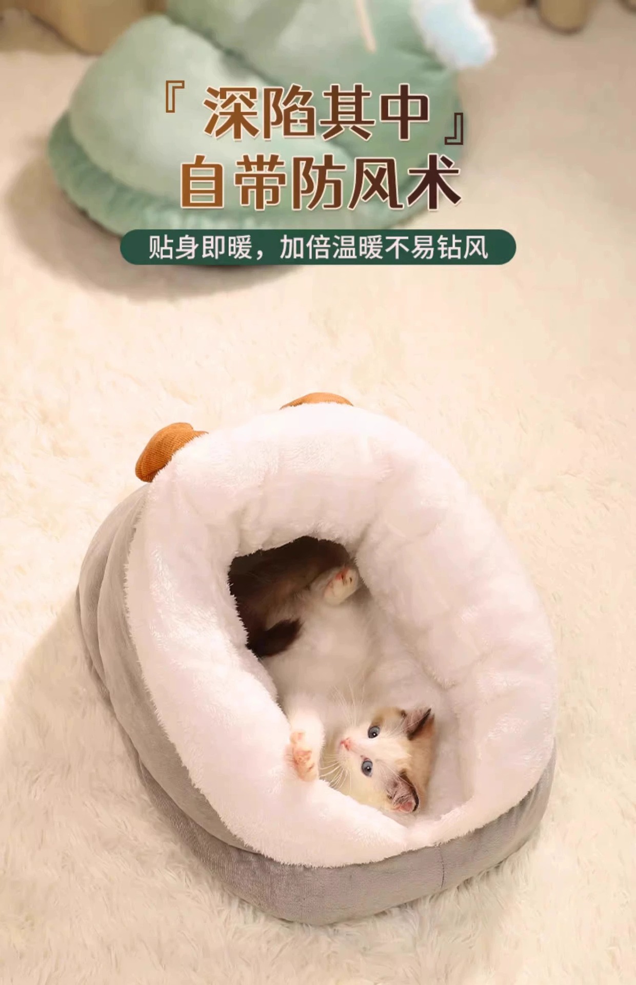 고양이 둥지 겨울 두꺼운 따뜻한 슬리퍼 반 폐쇄 작은 개 침대 겨울 잠자는 둥지 애완 동물 고양이 용품