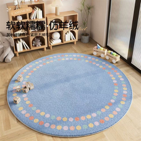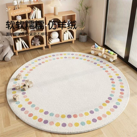 Ins 스타일 카펫 거실 먼지 방지 및 복용하기 쉬운 따뜻한 라운드 카펫 어린이 드롭 방지 카펫 가정용 모조 캐시미어 카펫