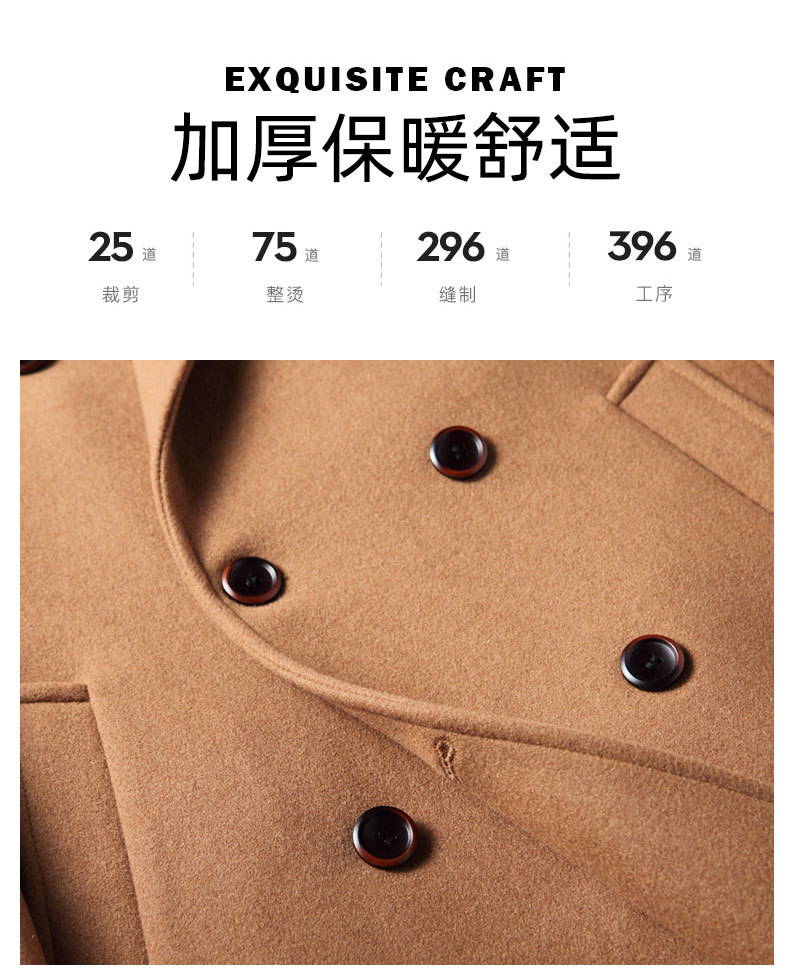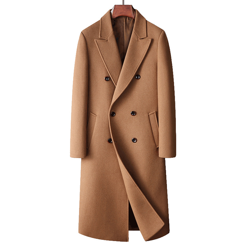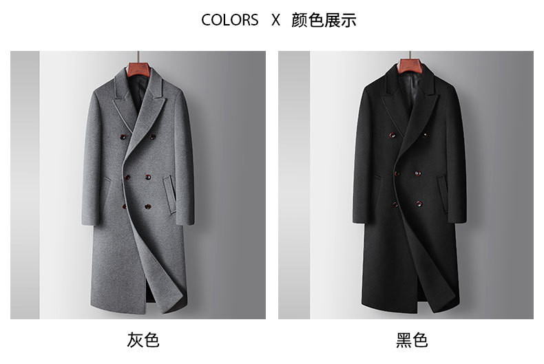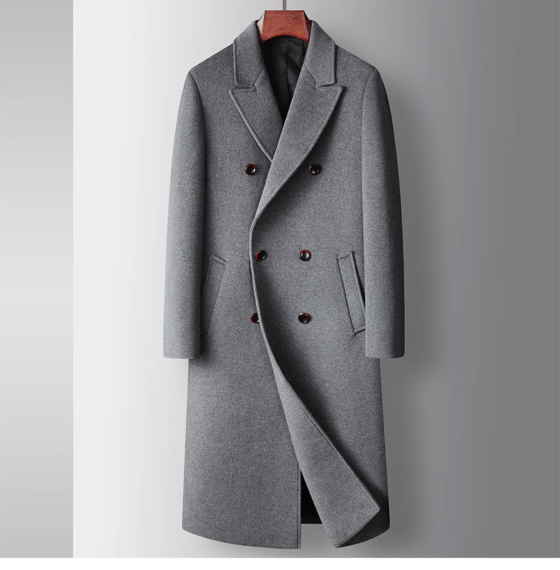 남자 모직 코트 2024 가을과 겨울 더블 브레스트 수제 모직 비즈니스 캐주얼 양모 코트 롱 코트