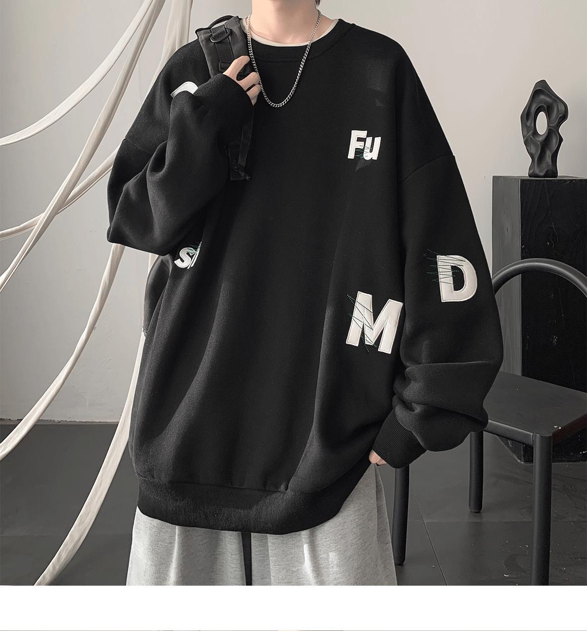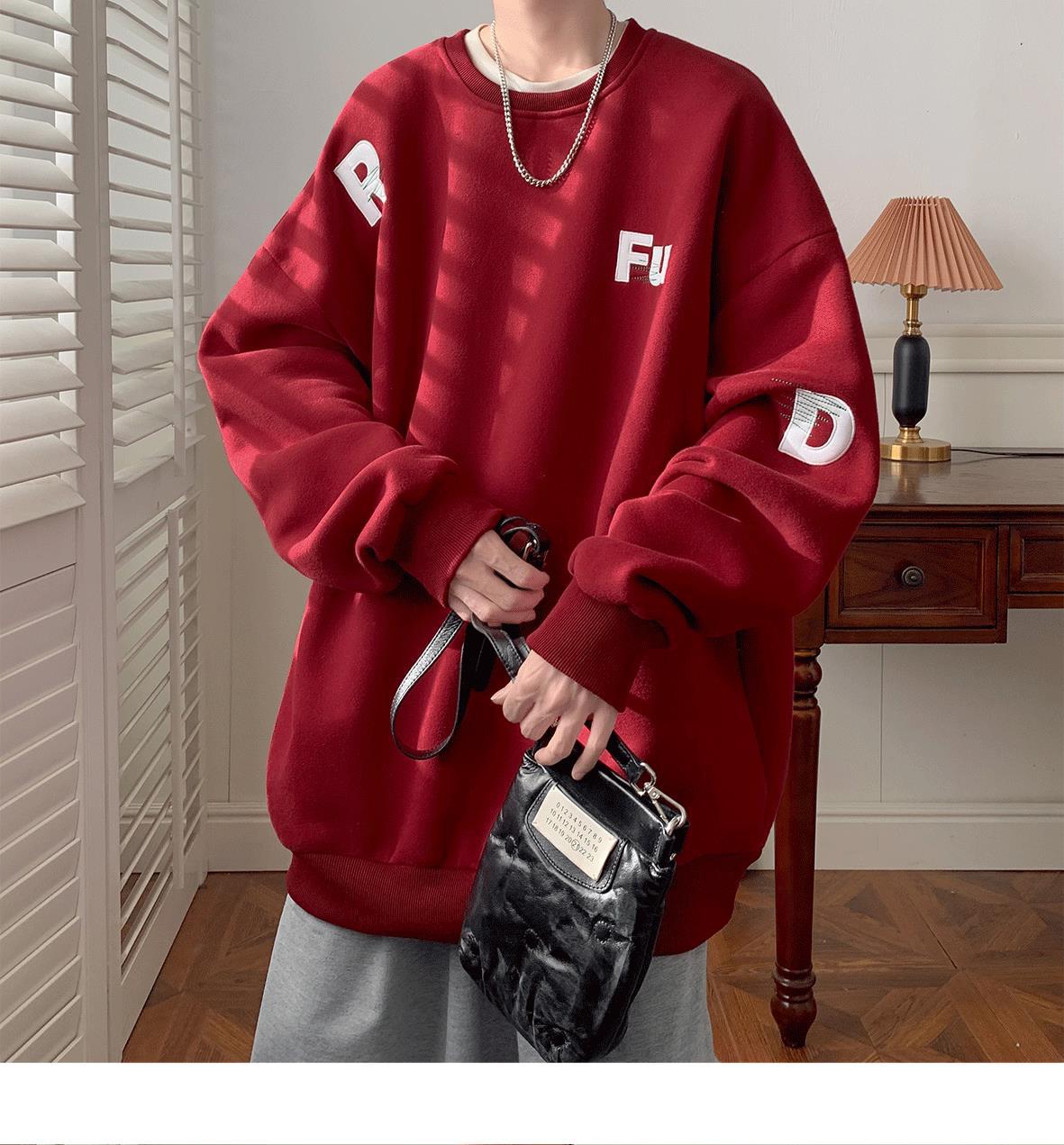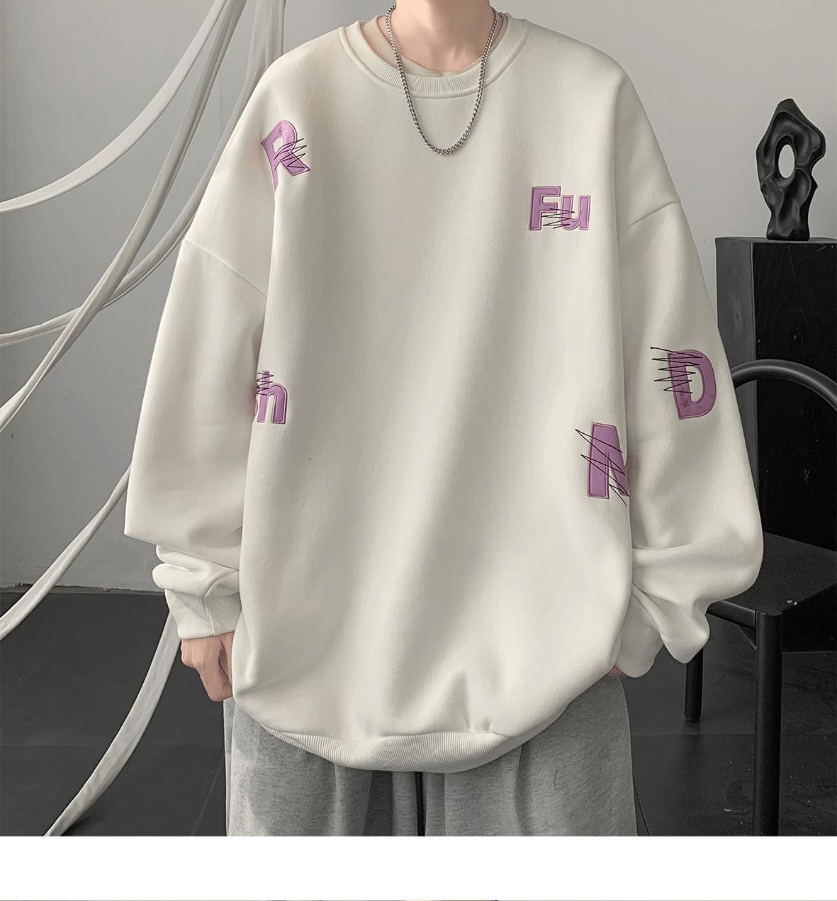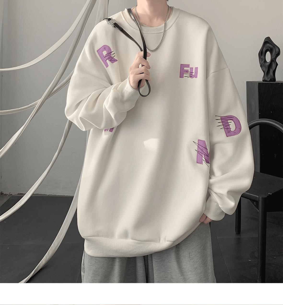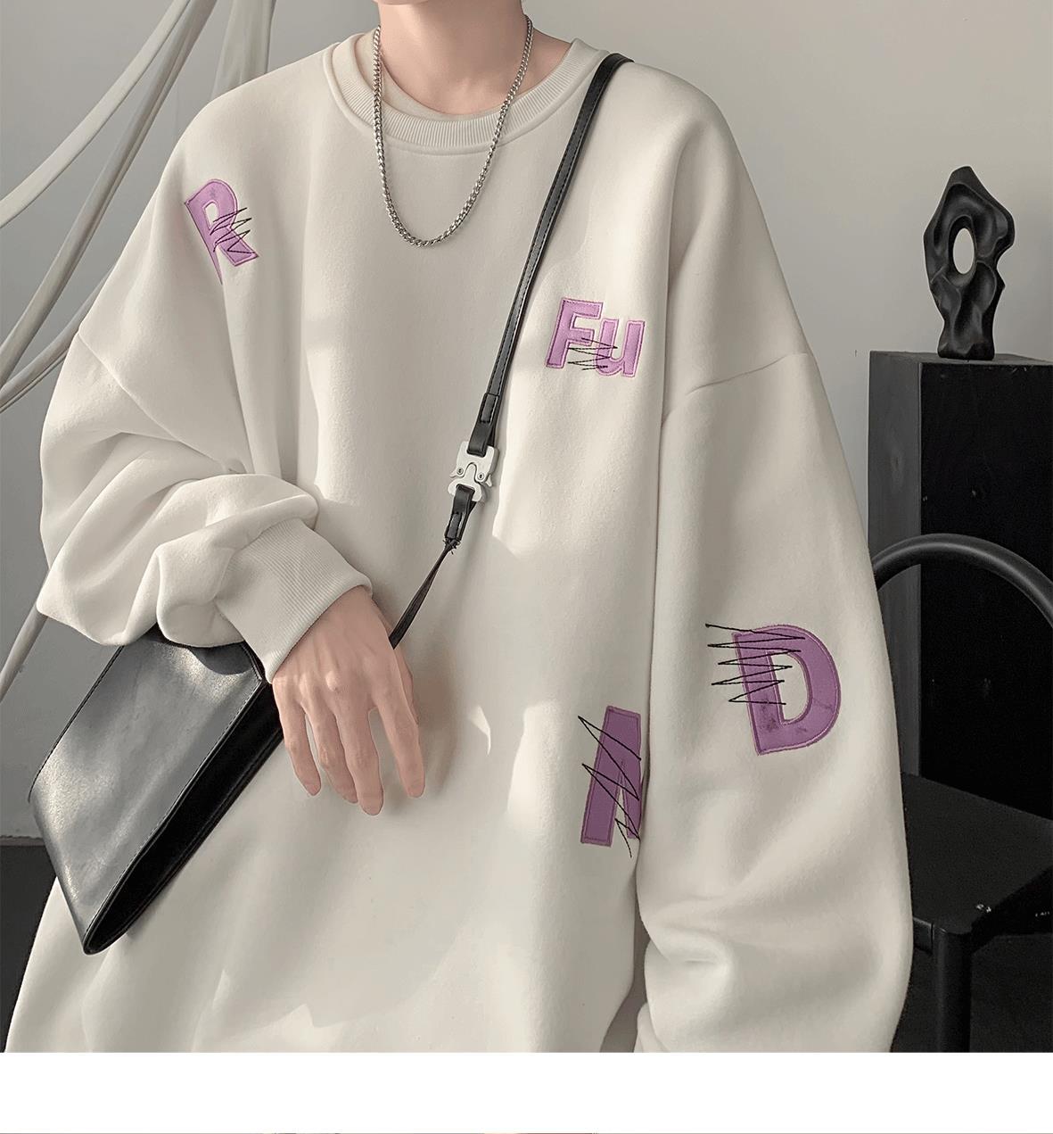 무거운 둥근 목 스웨터 남자 가을과 겨울 기모 두껍게 된 남자 가을 코트 2024 새로운 소년 깡패 코트