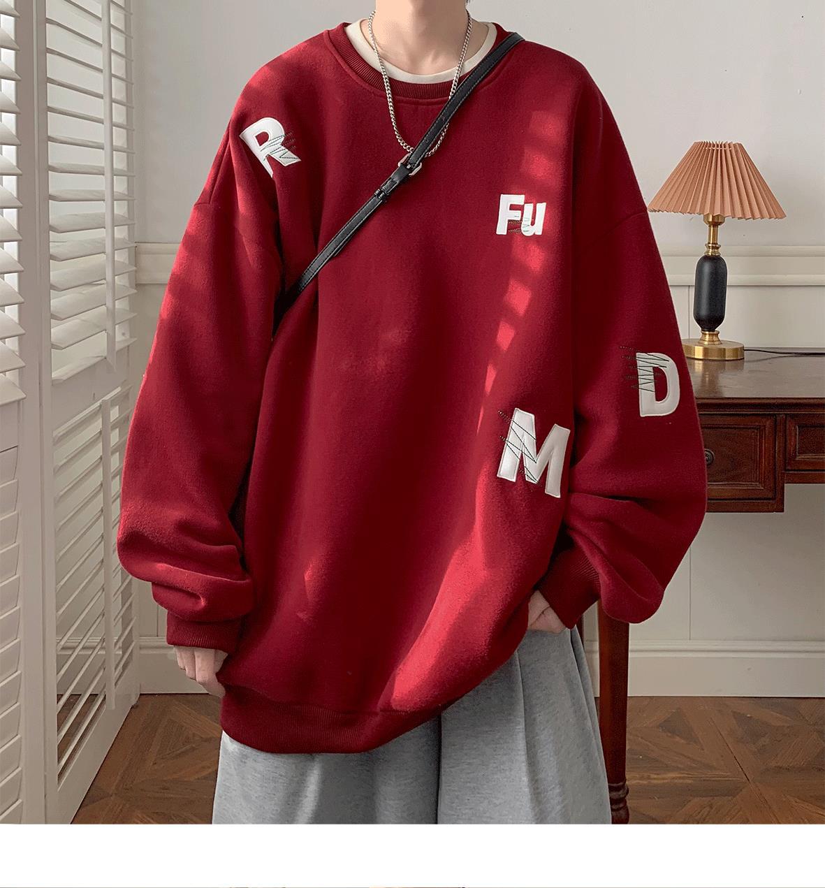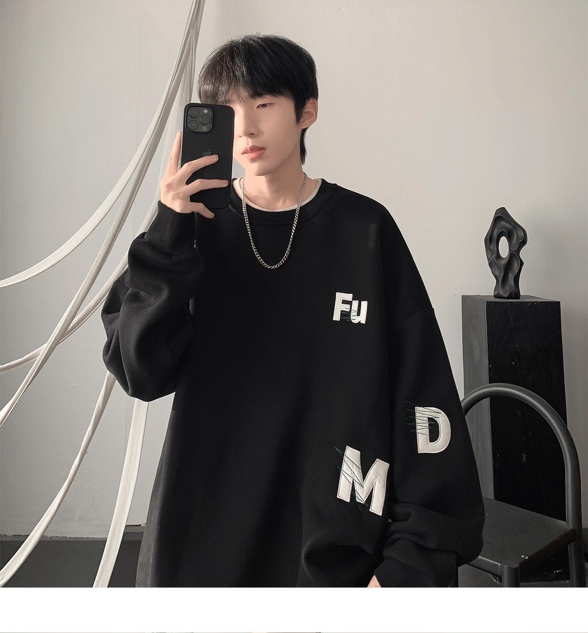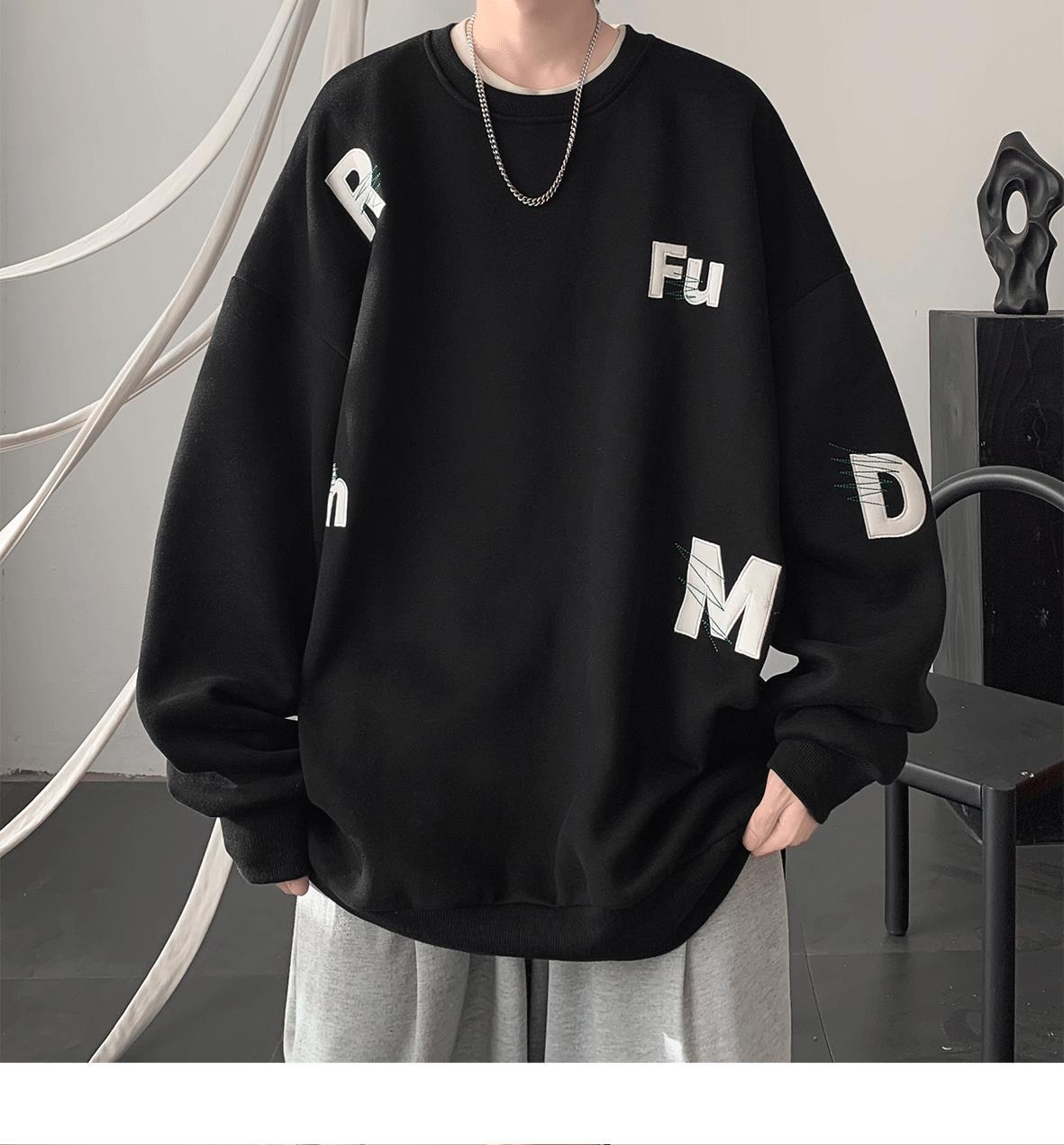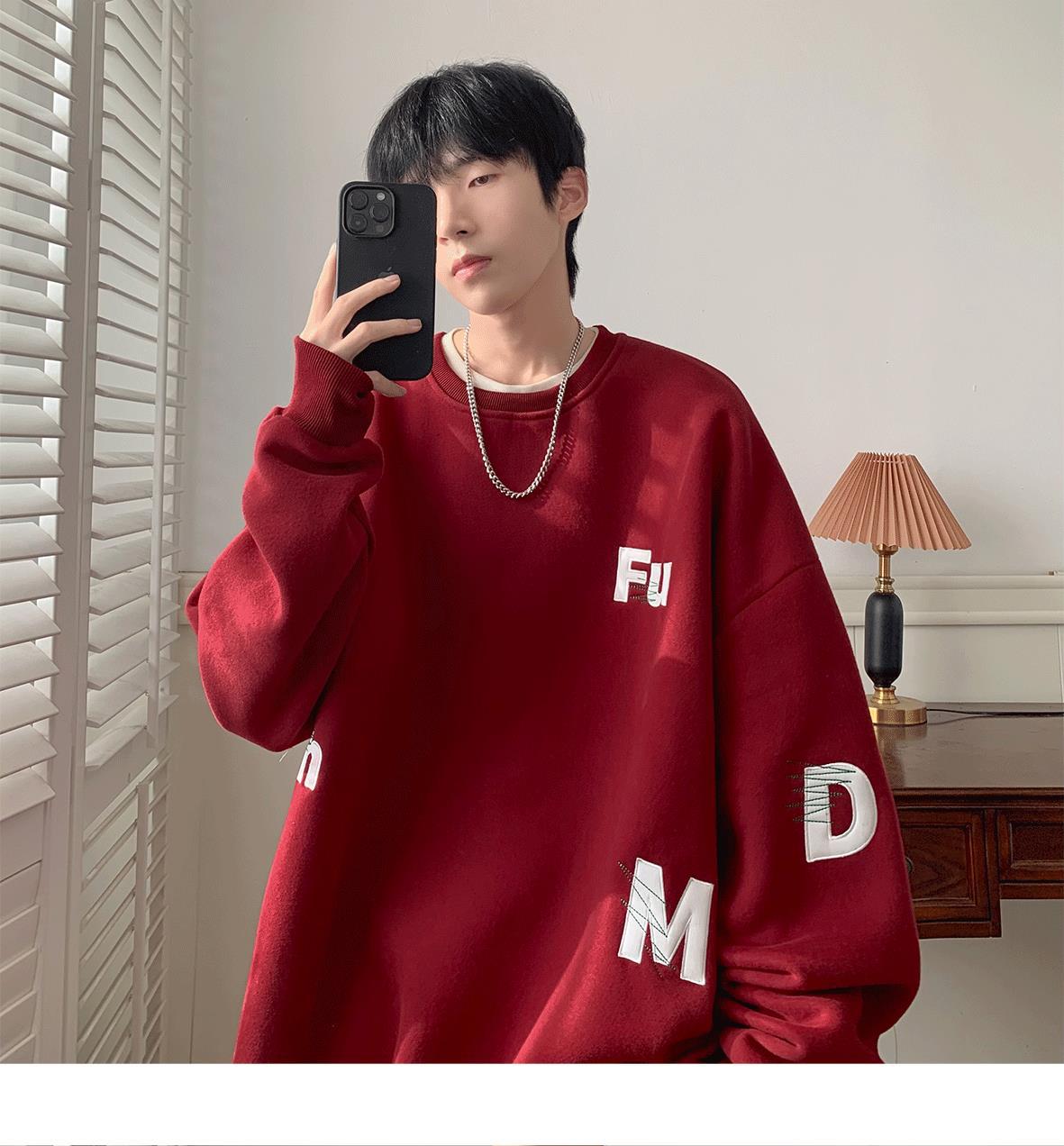 무거운 둥근 목 스웨터 남자 가을과 겨울 기모 두껍게 된 남자 가을 코트 2024 새로운 소년 깡패 코트