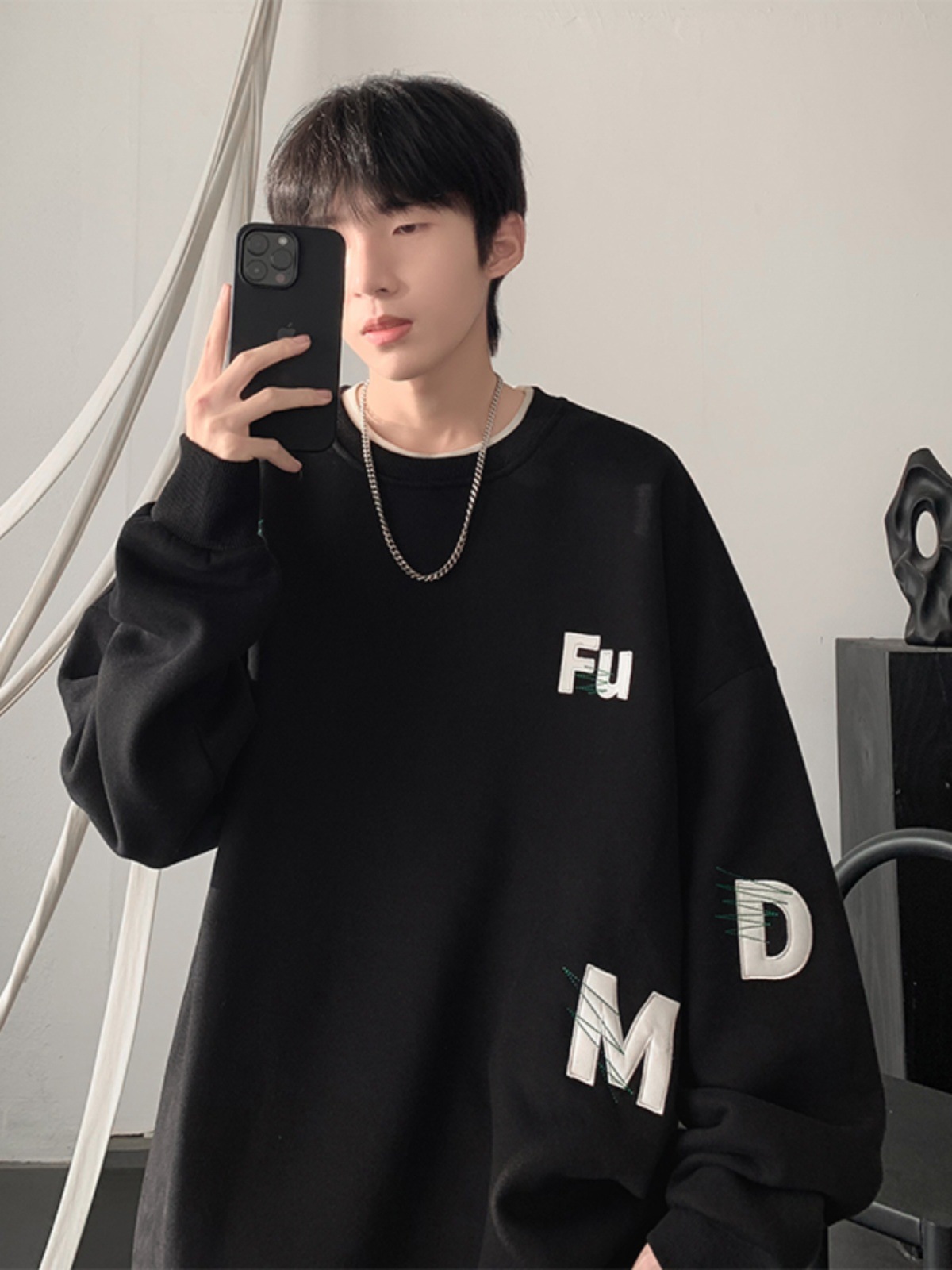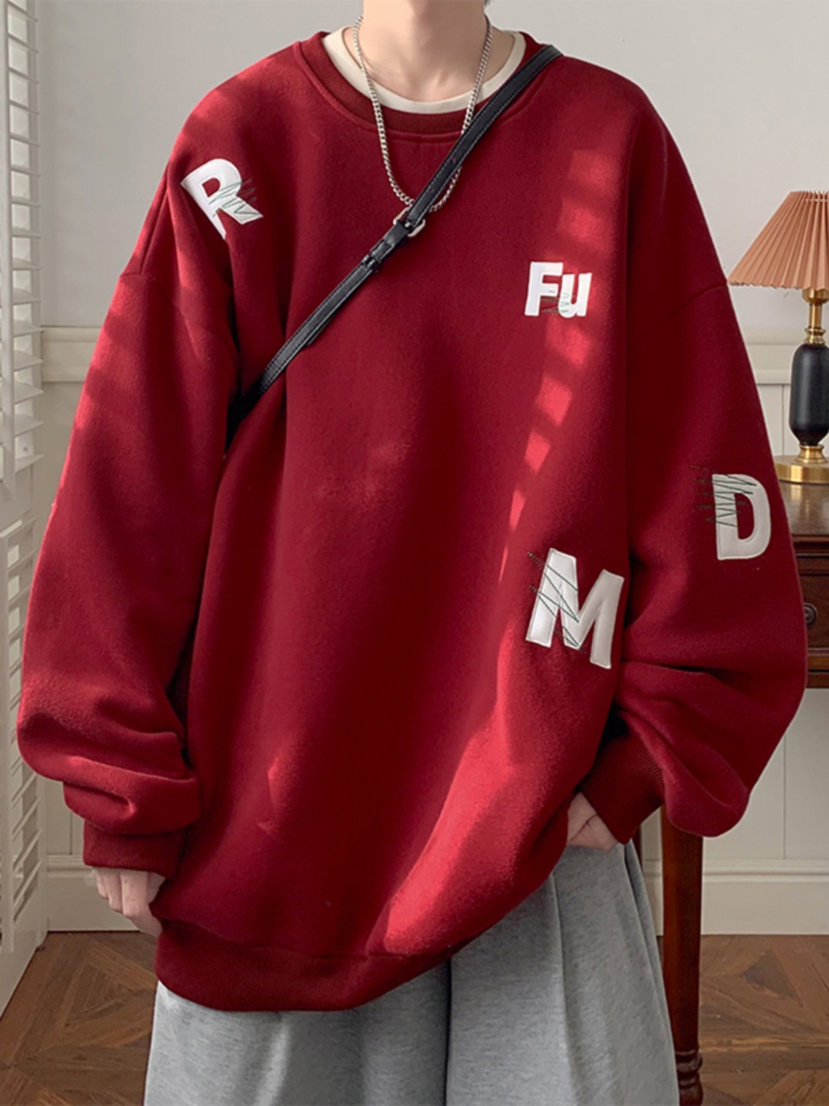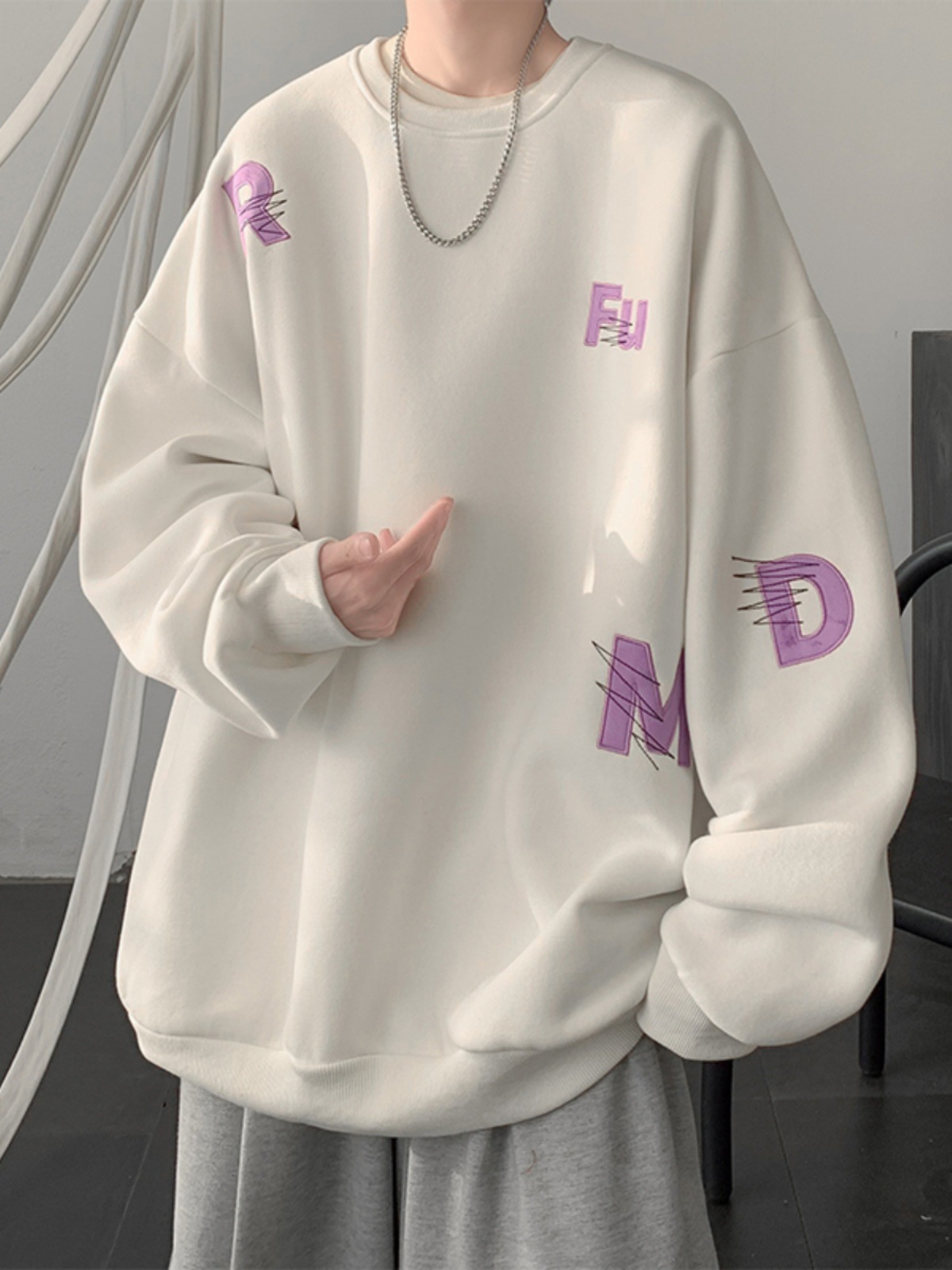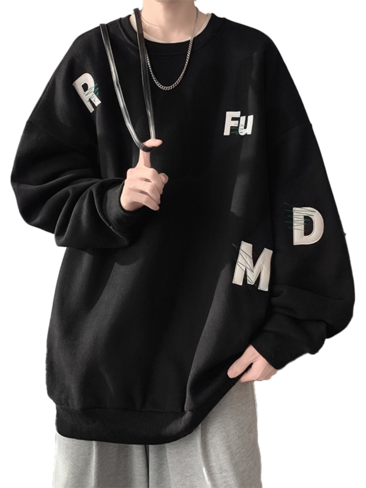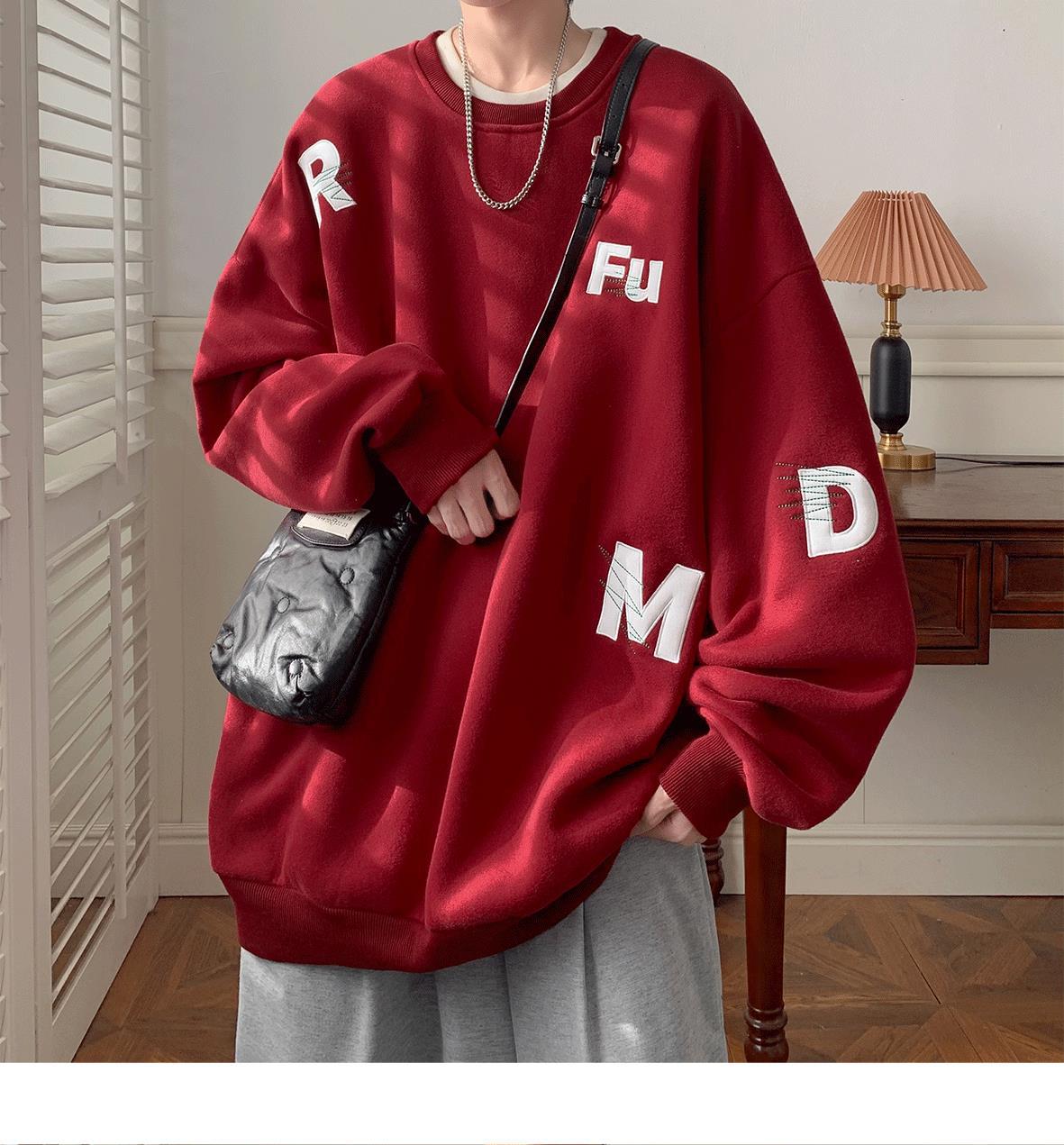 무거운 둥근 목 스웨터 남자 가을과 겨울 기모 두껍게 된 남자 가을 코트 2024 새로운 소년 깡패 코트