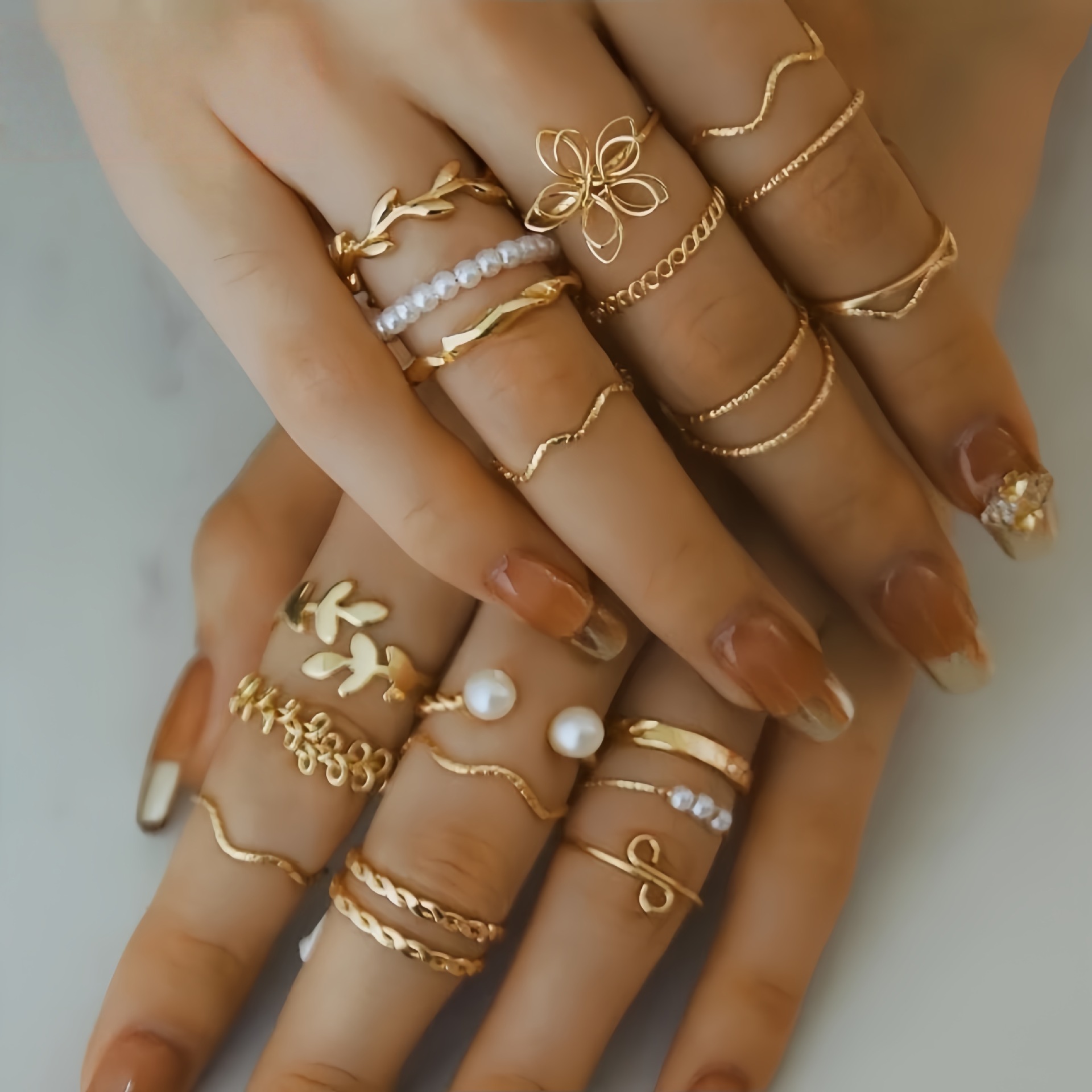 국경 새 오픈 멀티 조인트 링 세트 22 피스 러브 링 여성 디자인 센스 니쉬 나비 링