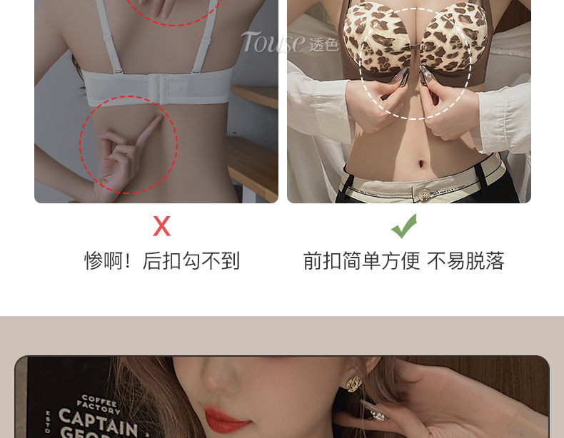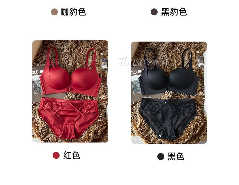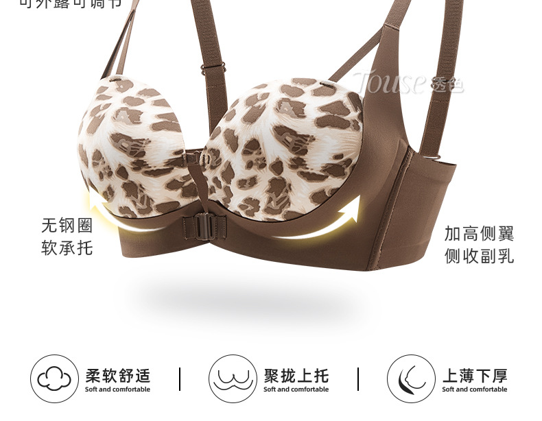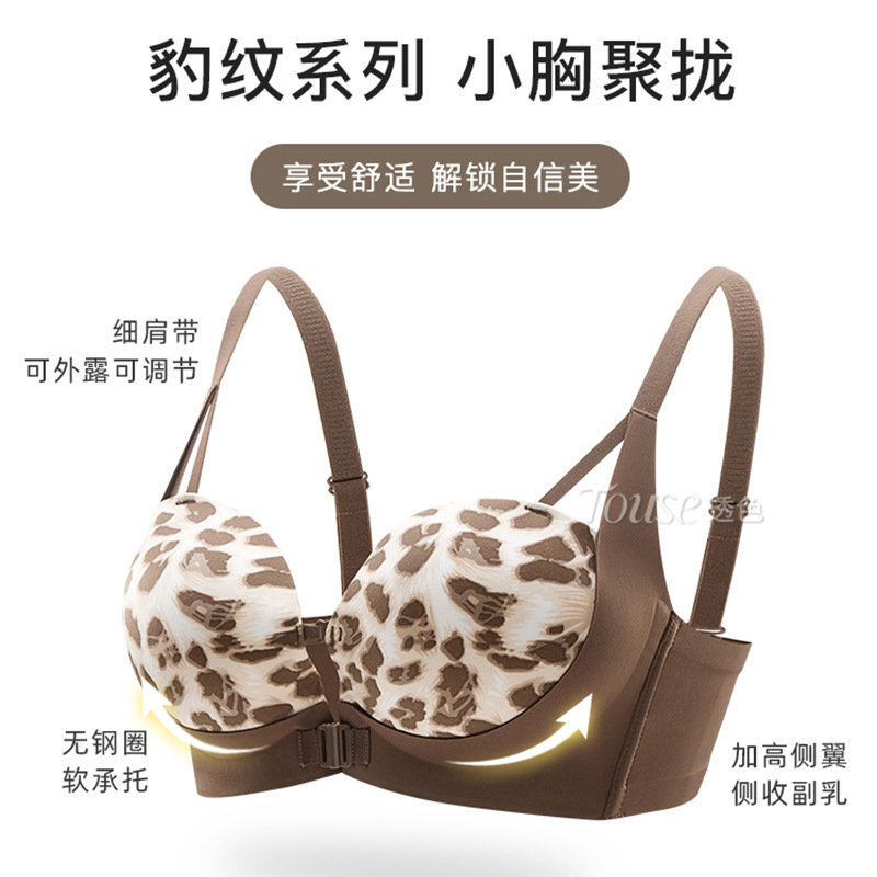 앞 버클 속옷 여성의 작은 가슴 푸시업 비 림 유방 처짐 방지 새 스타일 속옷 세트 섹시한 레오파드 무늬 브래지어