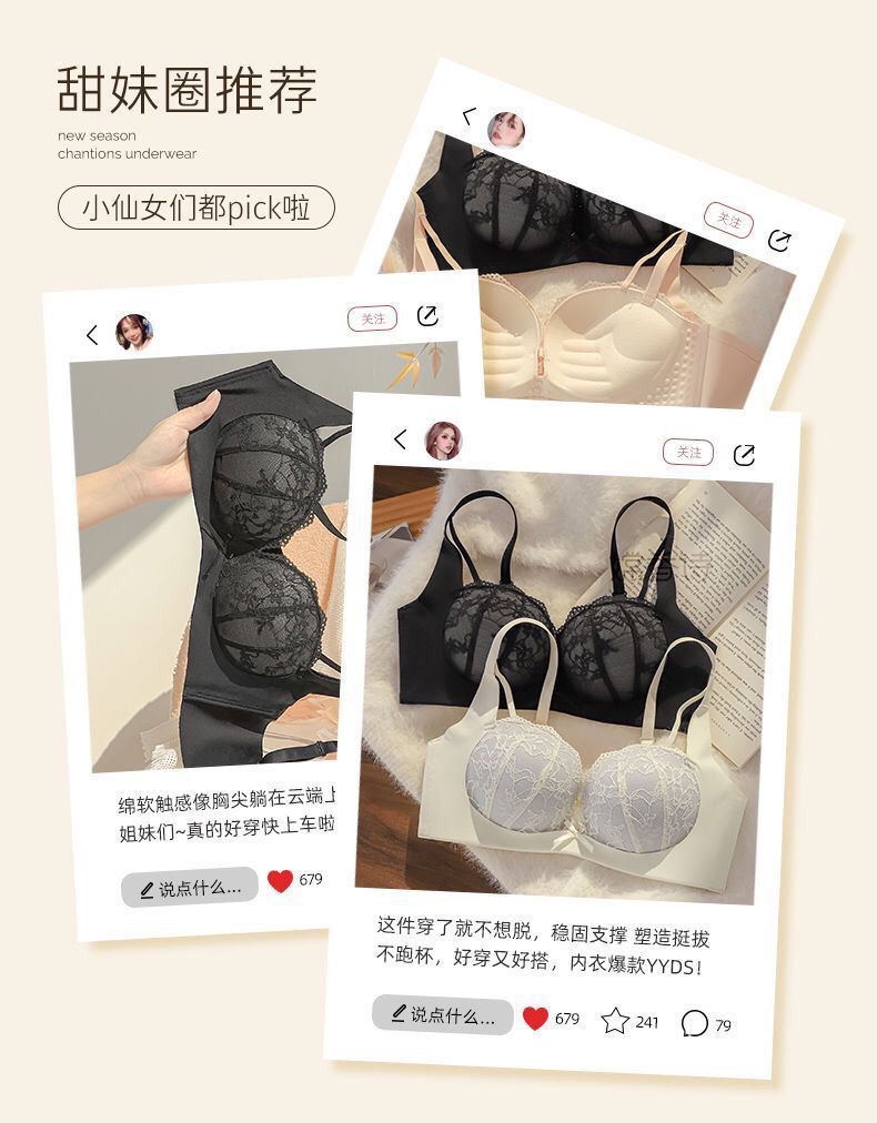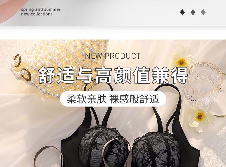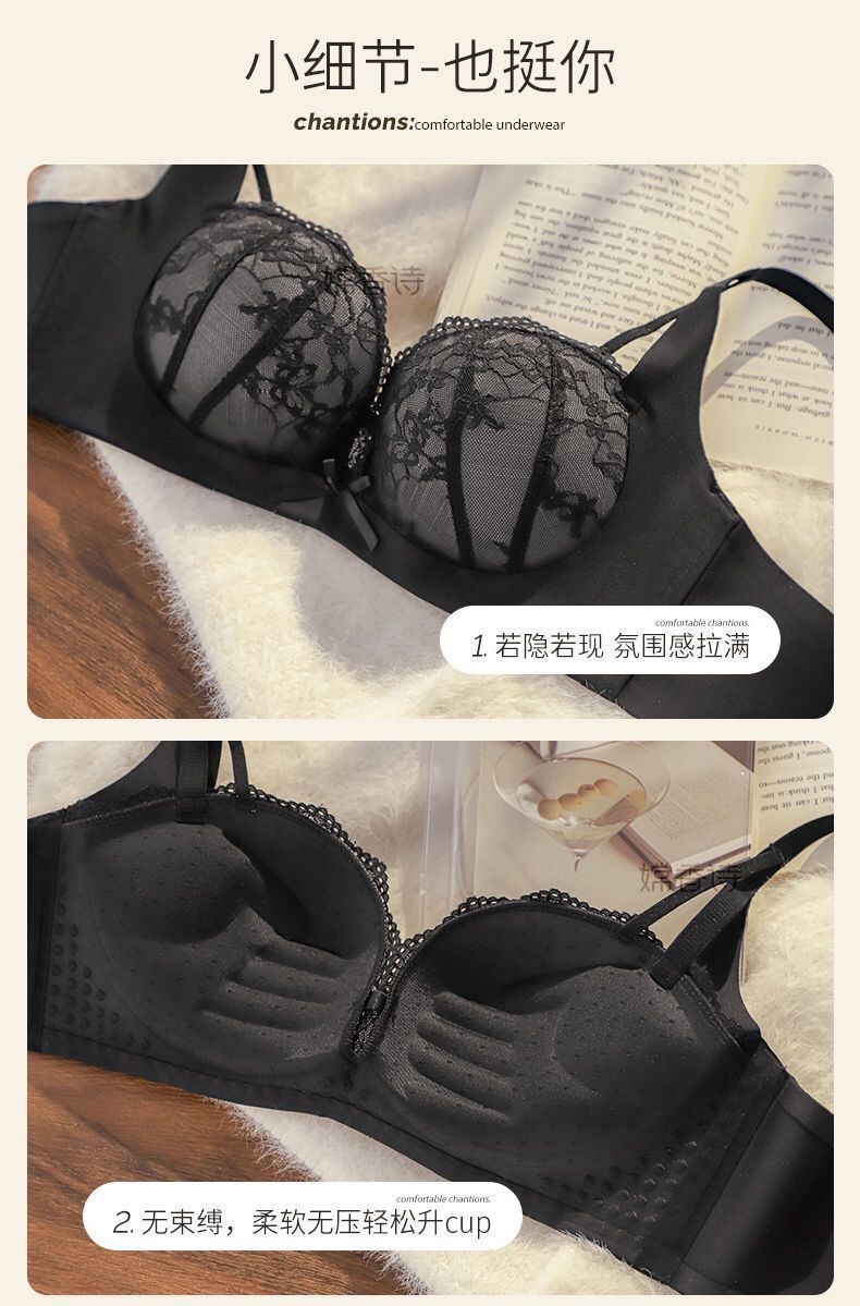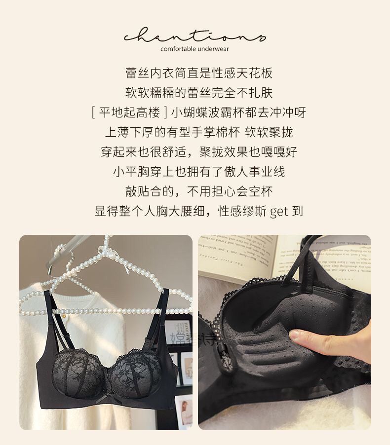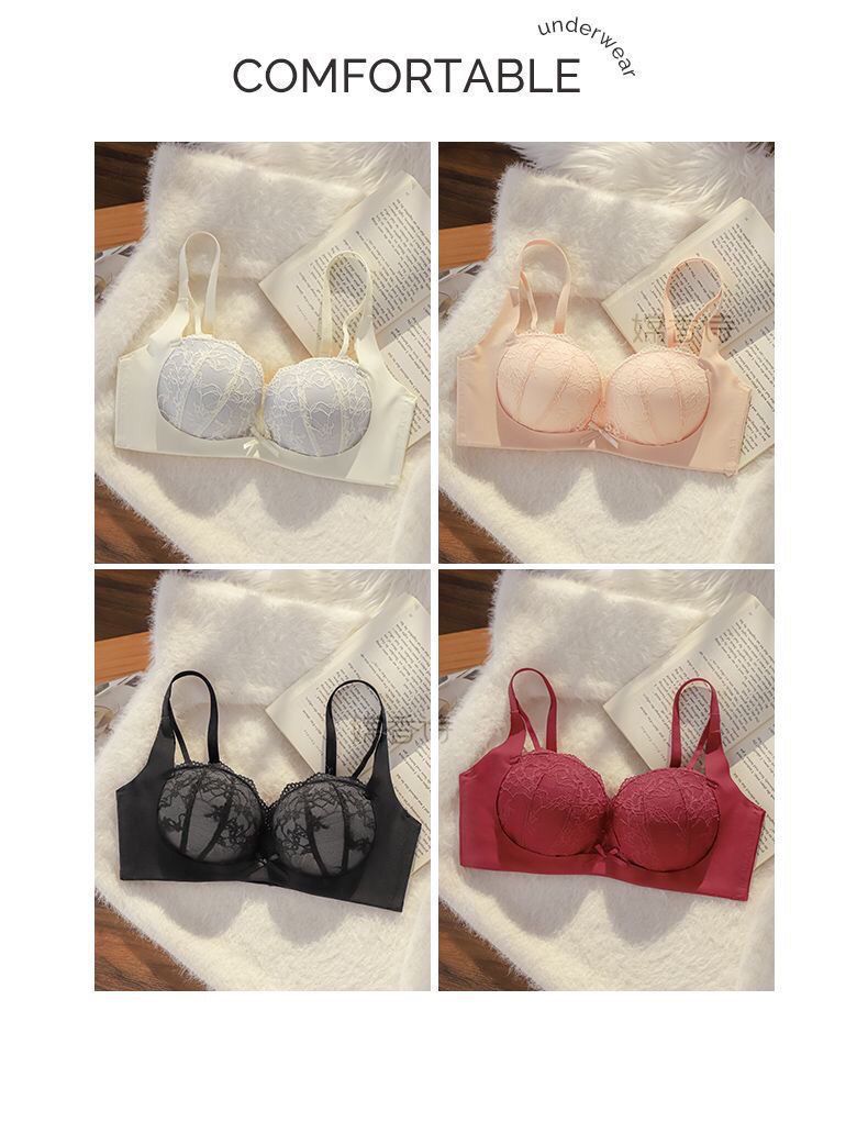 레이스 속옷 싱글피스 섹시 푸쉬업 작은 가슴 브라, 소녀들을 위한 노와이어 볼륨업 브라, 달콤한 레이스 디자인