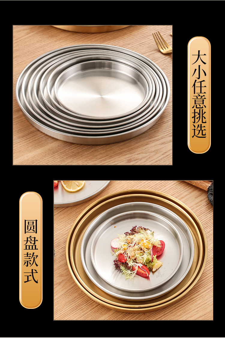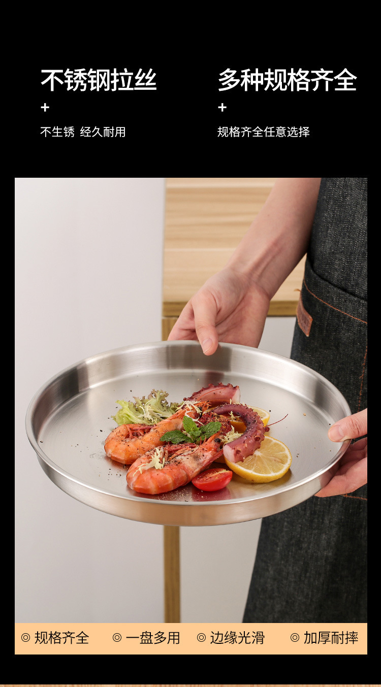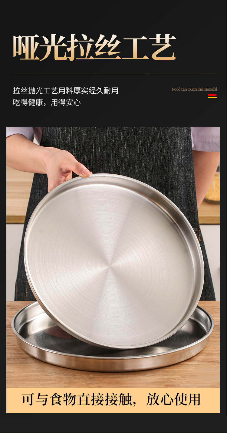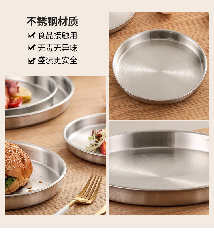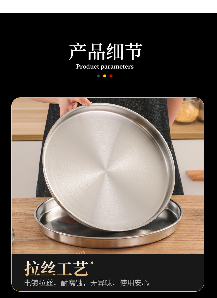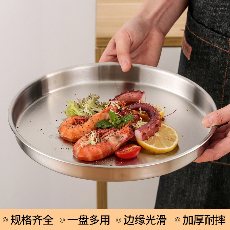 스테인레스 스틸 디스크 상업용 플랫 하단 얕은 플레이트 대형 트레이 라운드 바베큐 플레이트 쌀 그릇 플레이트 스팀 플레이트 디저트 과일 플레이트