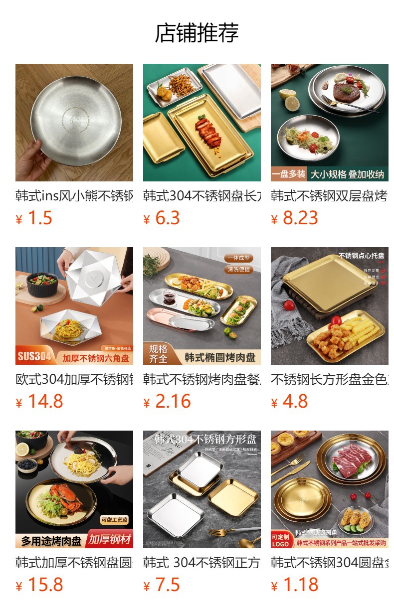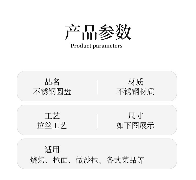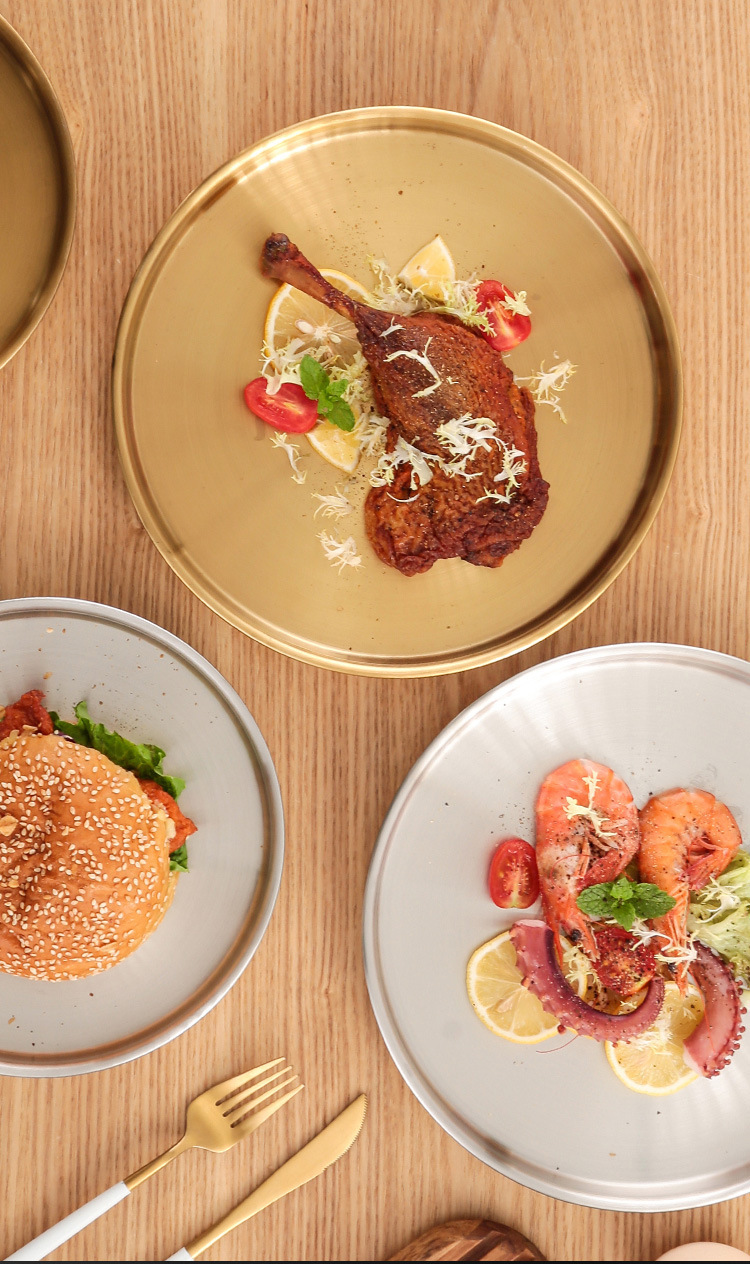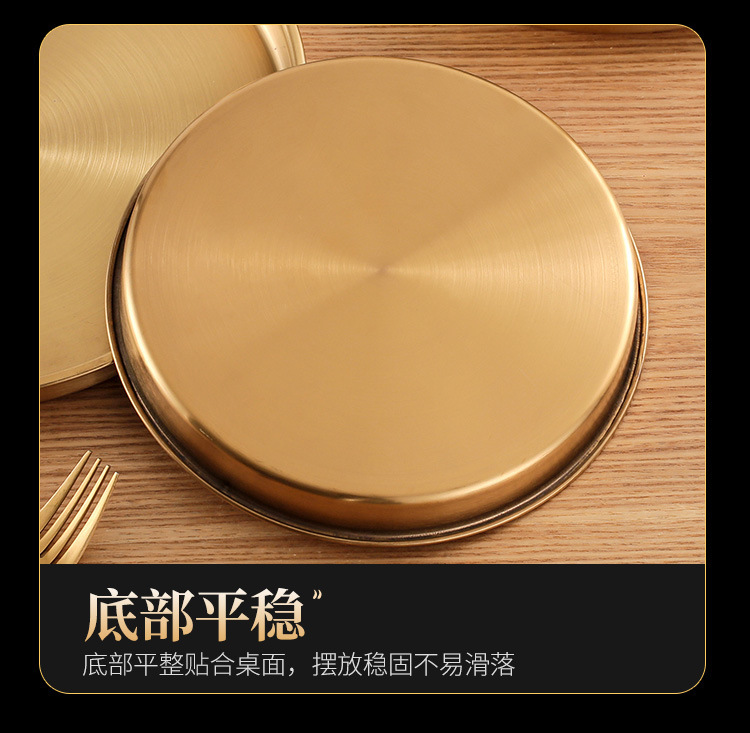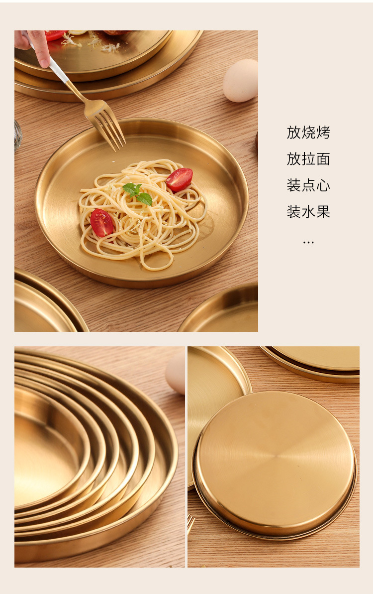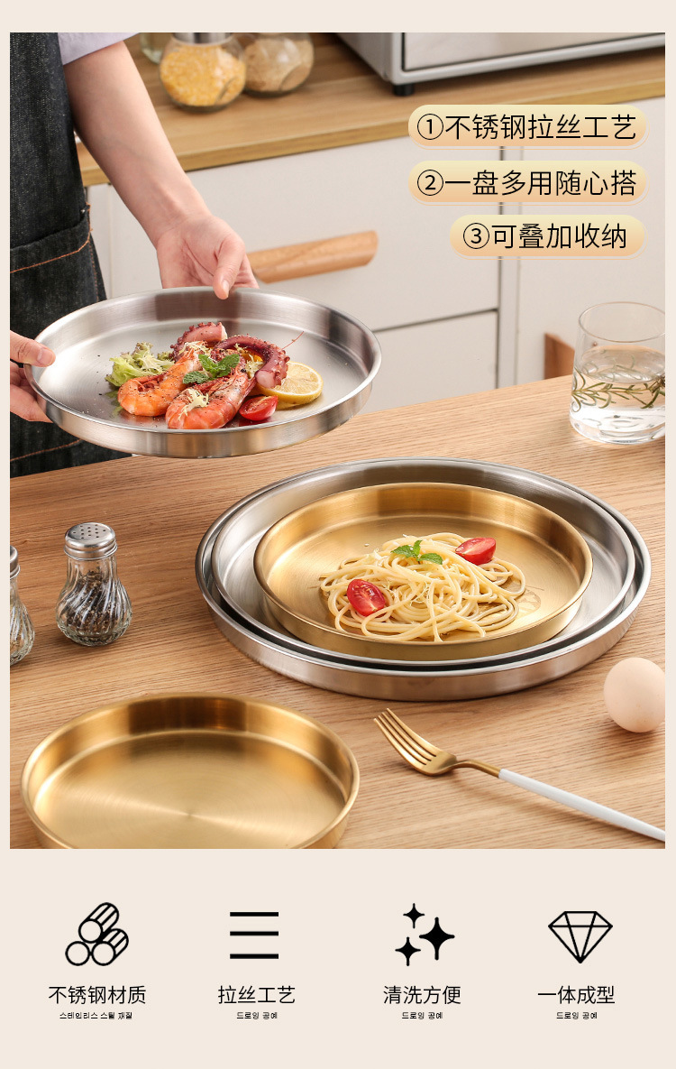 스테인레스 스틸 디스크 상업용 플랫 하단 얕은 플레이트 대형 트레이 라운드 바베큐 플레이트 쌀 그릇 플레이트 스팀 플레이트 디저트 과일 플레이트